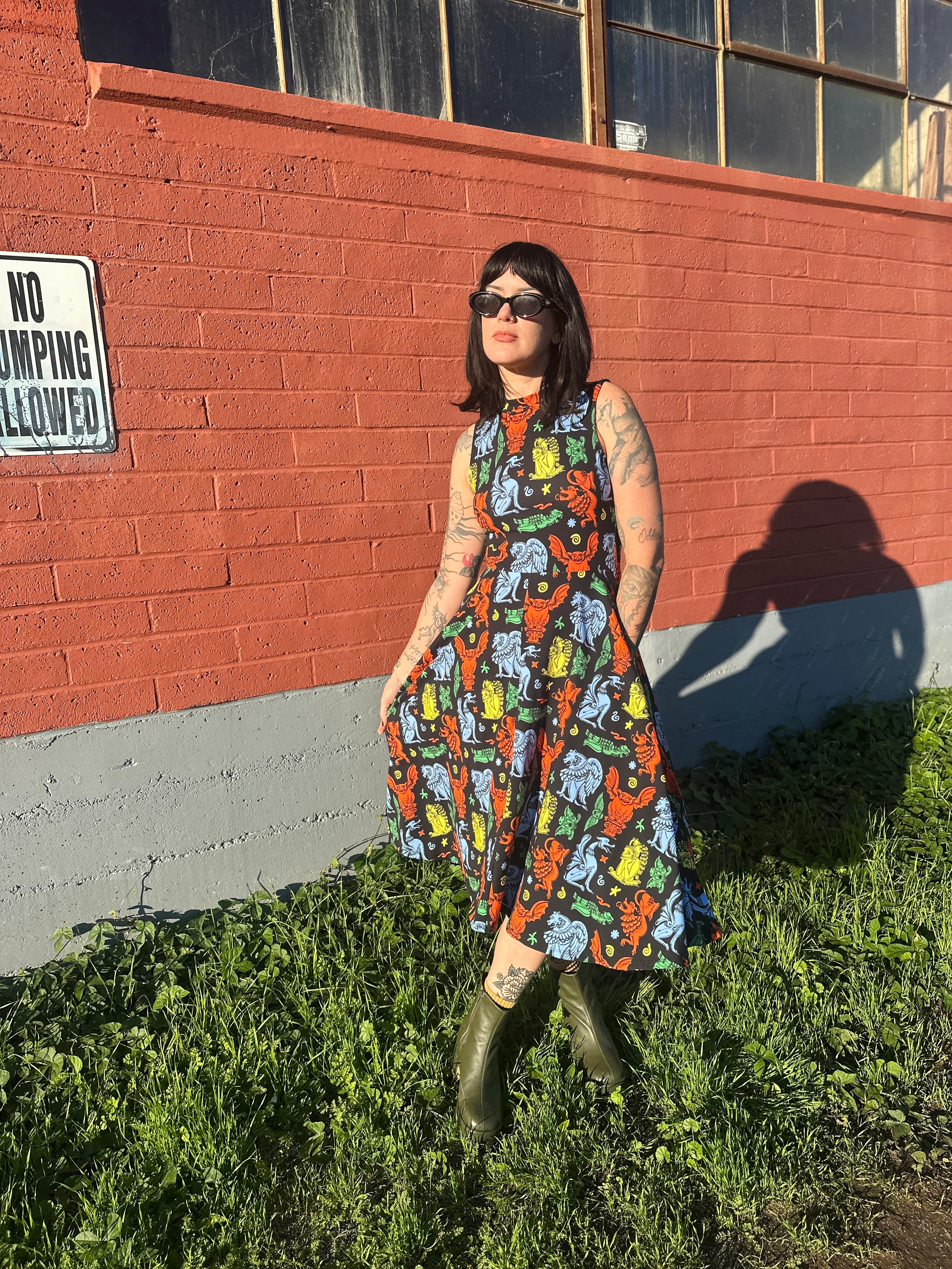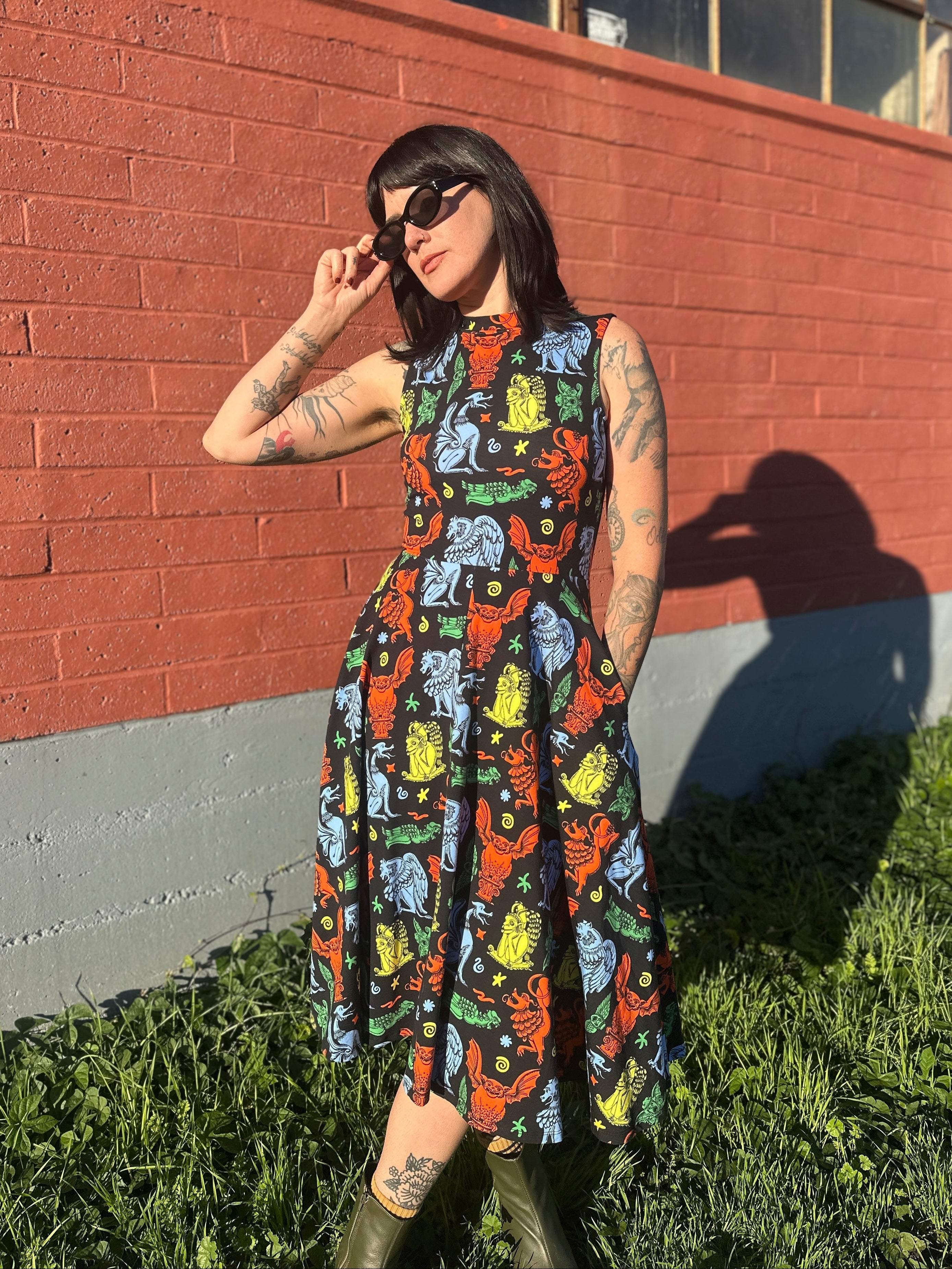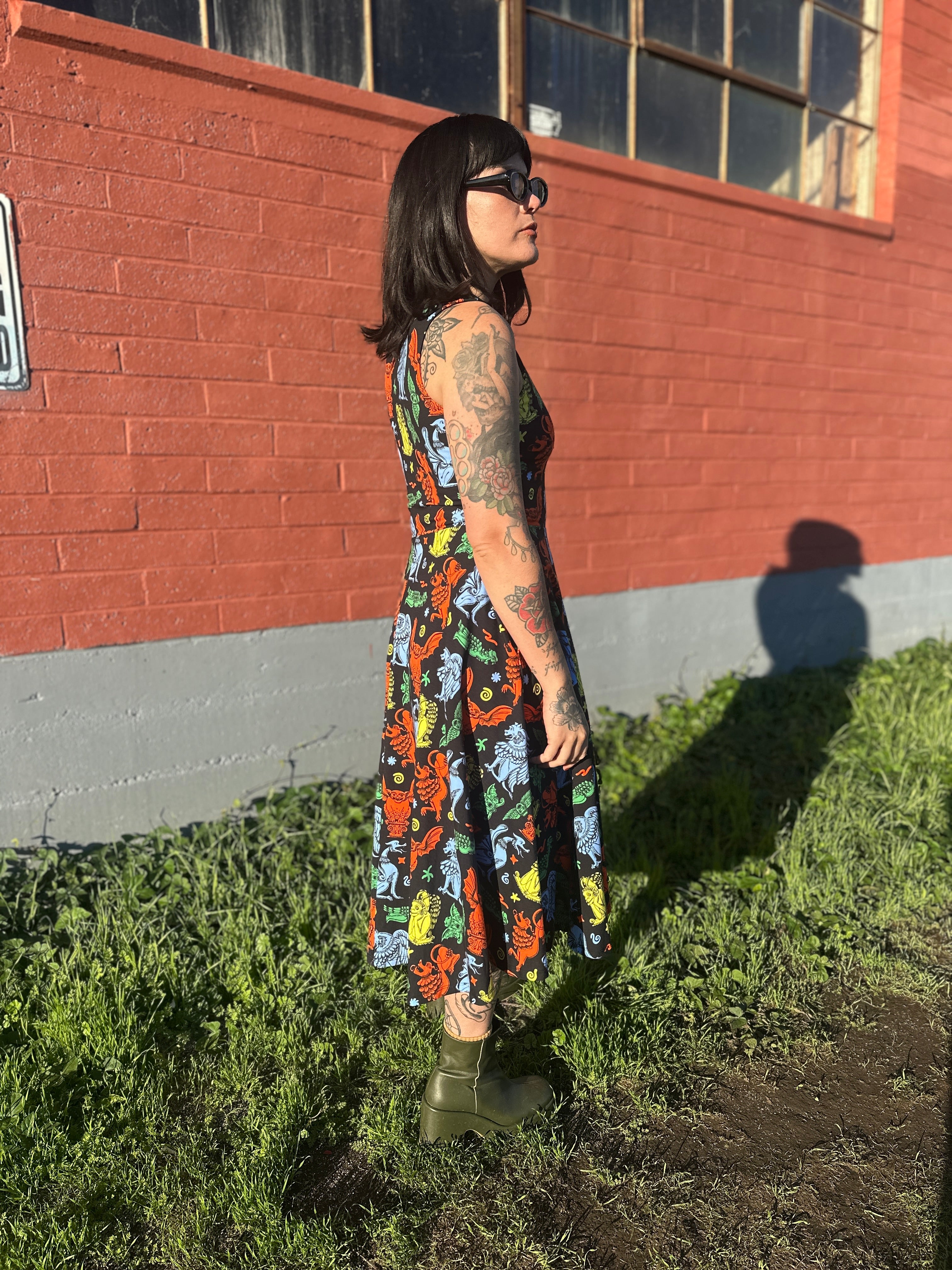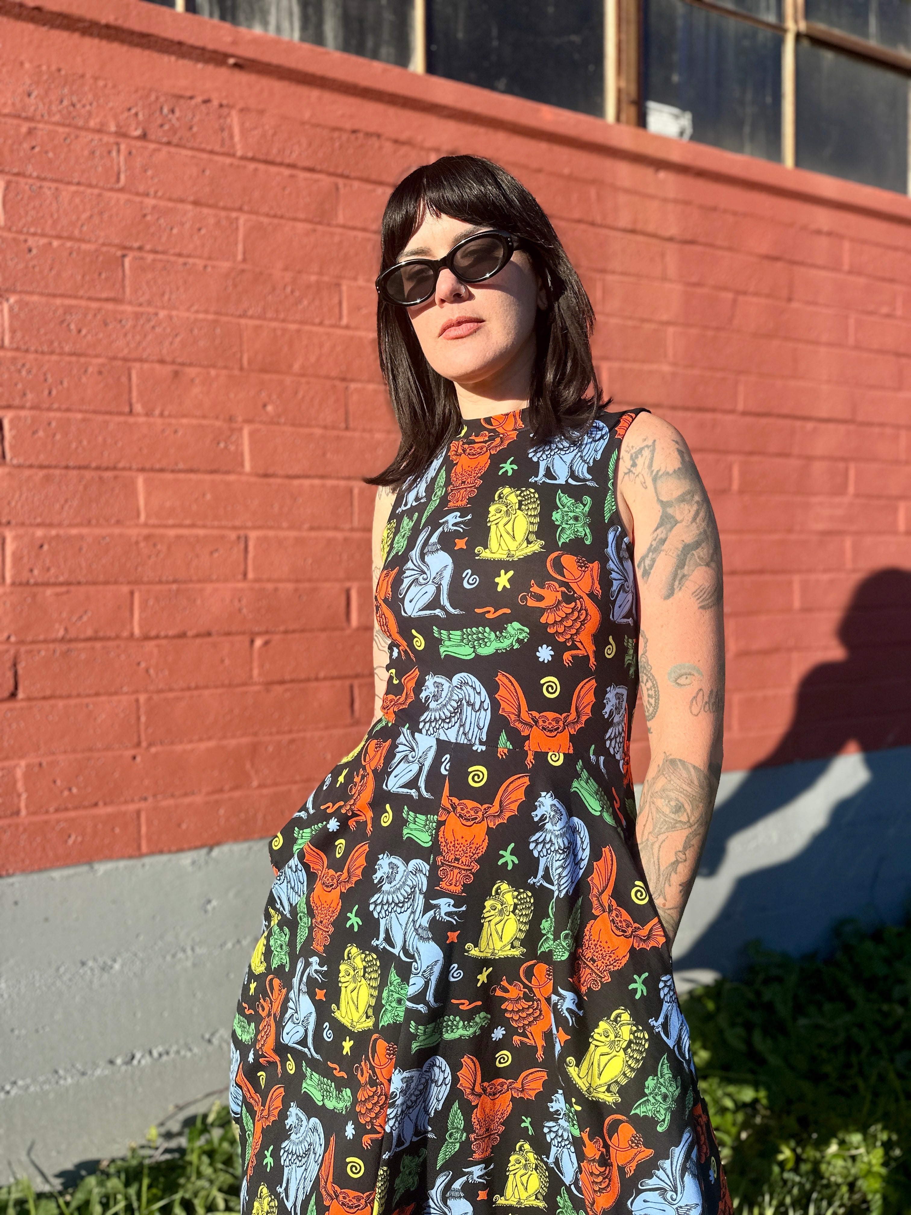We are a woman owned, women run business. We make limited edition textiles with artists we love in cuts to make you look and feel good. All our garments are produced in California. We try to source all our materials in the USA and work with incredibly nice people.