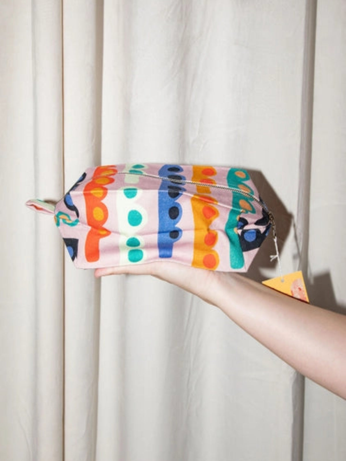 By PonnopozzMeasures 8"x4"x4"Made from 100% organic cotton duck fabric digitally printed and metal YKK zippersFully lined in dark green cotton, these bags are easily cleaned!