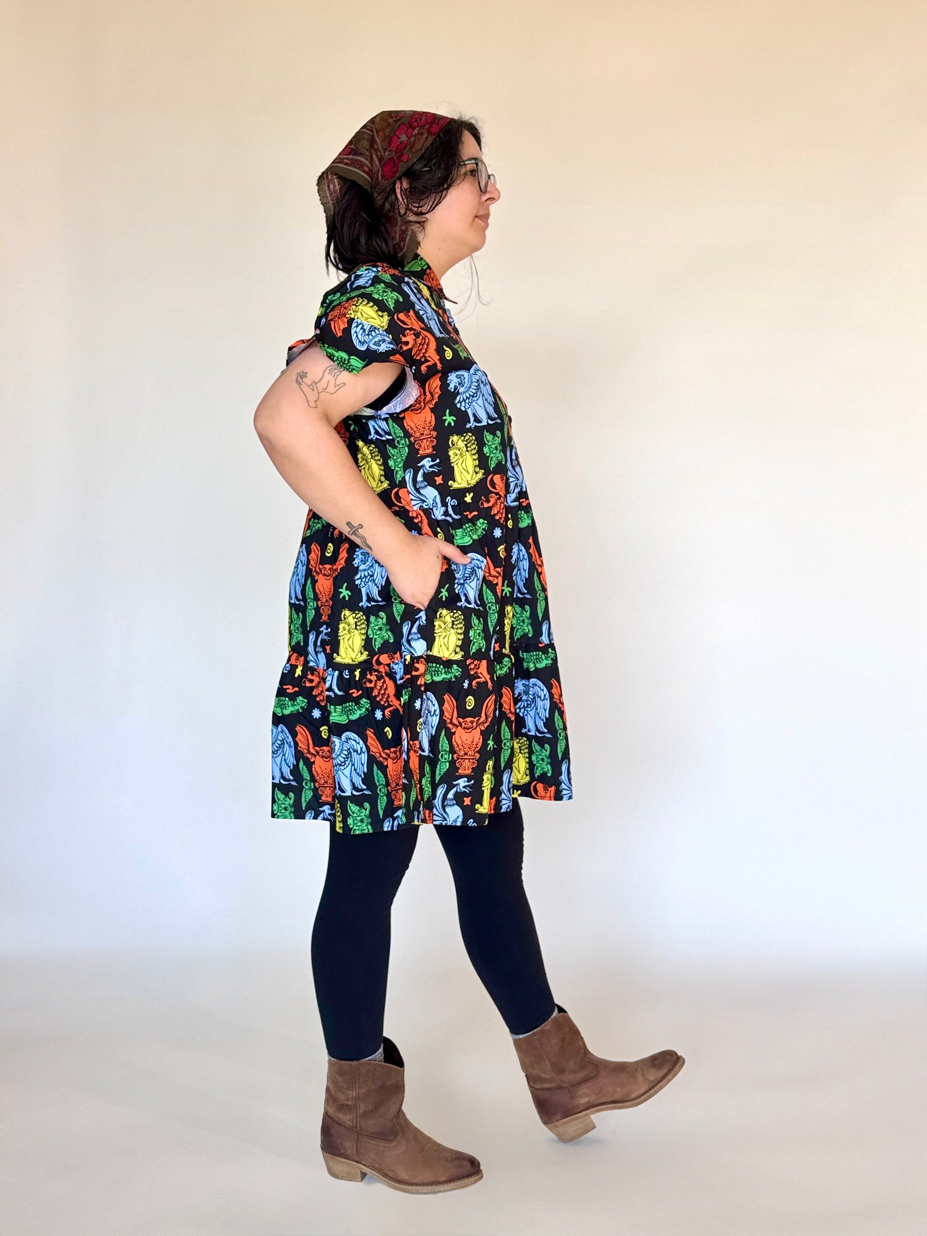 The Eloise is a sweet above-the-knee length dress. Made in our lightweight cotton poplin, this dress features a loose A-line silhouette with a collar, buttons...