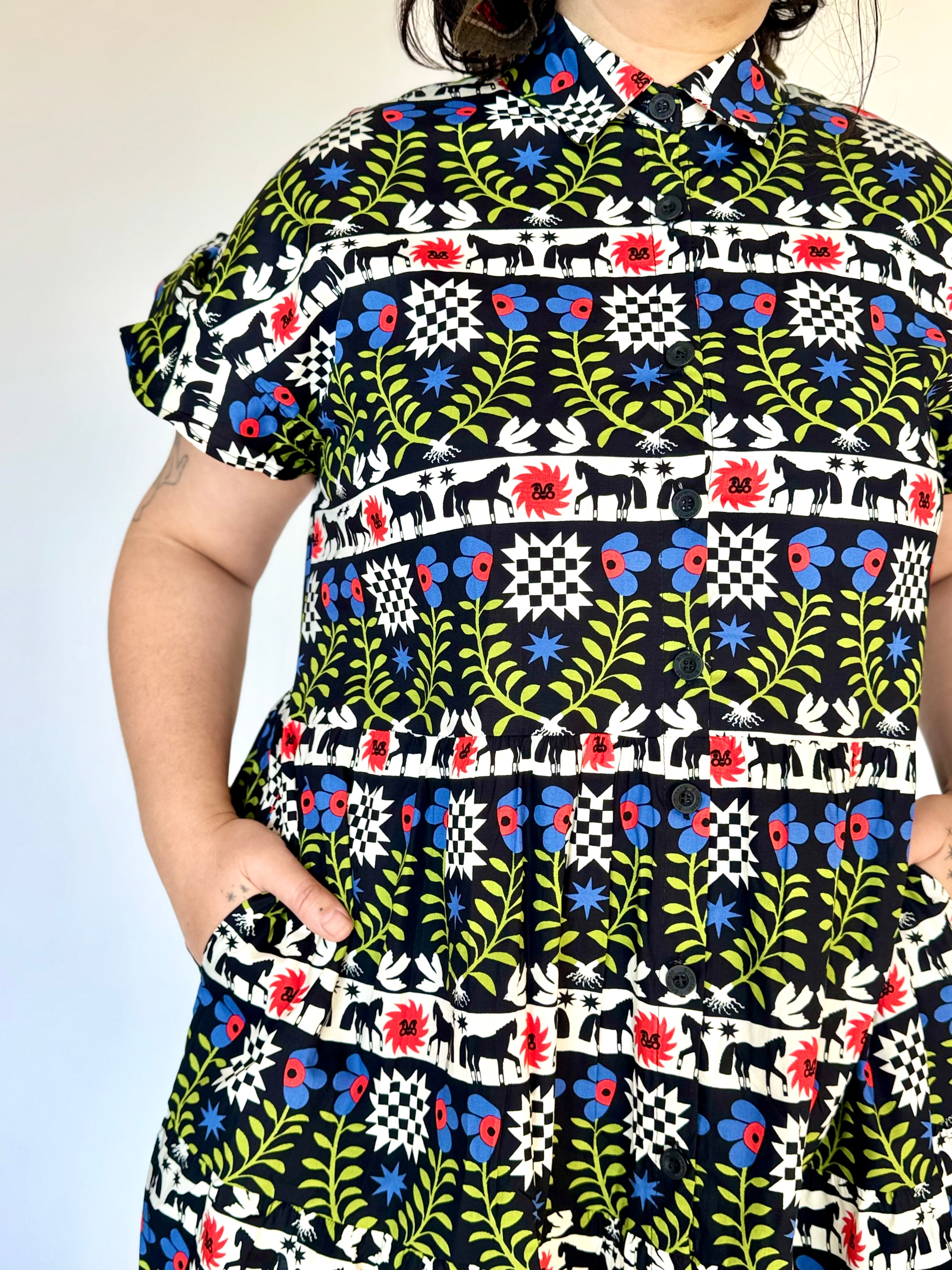 The Eloise is a sweet above-the-knee length dress. Made in our lightweight cotton poplin, this dress features a loose A-line silhouette with a collar, buttons...