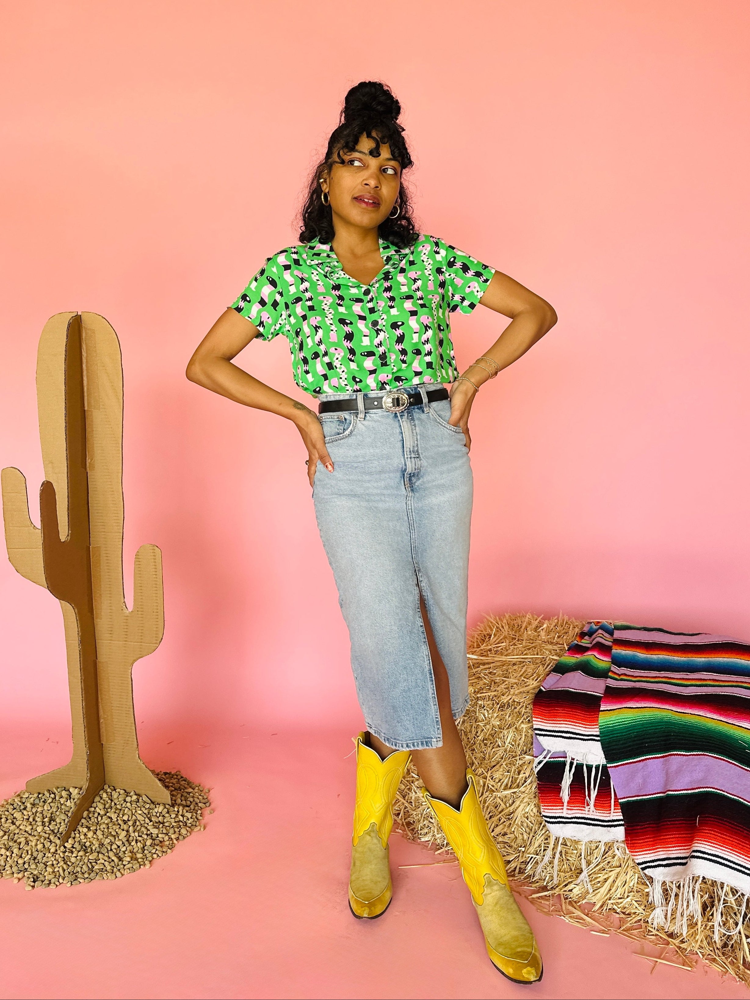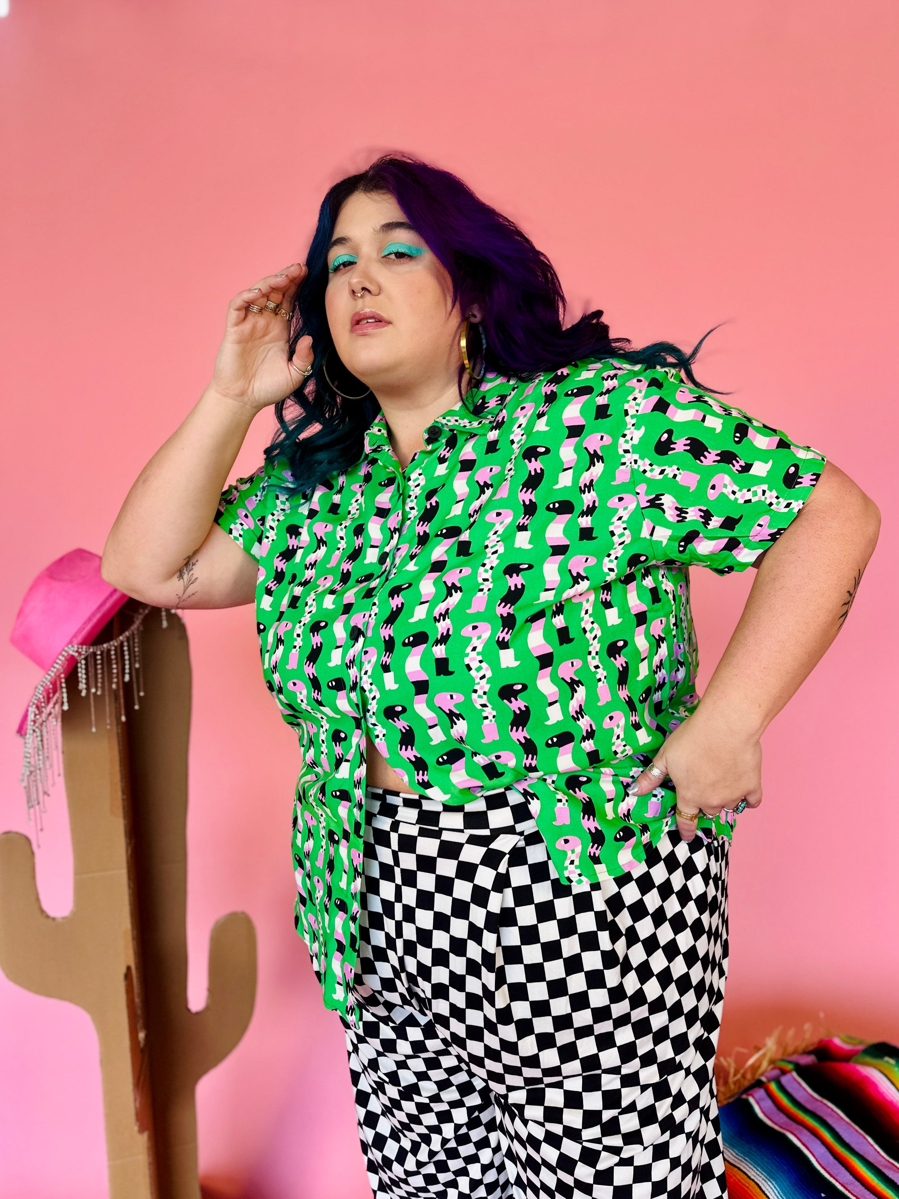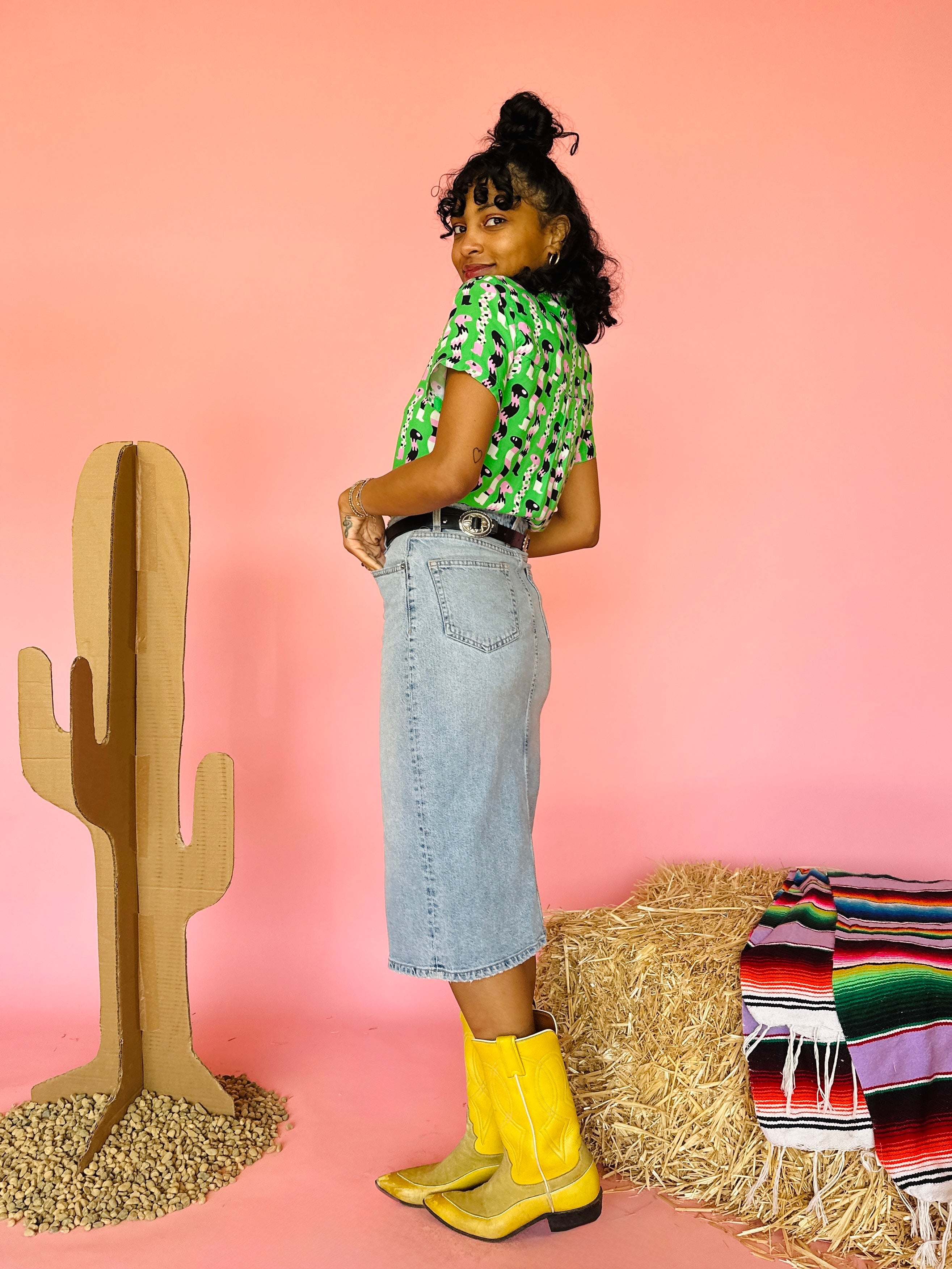 We are a woman owned, women run business. We make limited edition textiles with artists we love in cuts to make you look and feel good. All our garments are produced in California. We try to source all our materials in the USA and work with incredibly nice people.