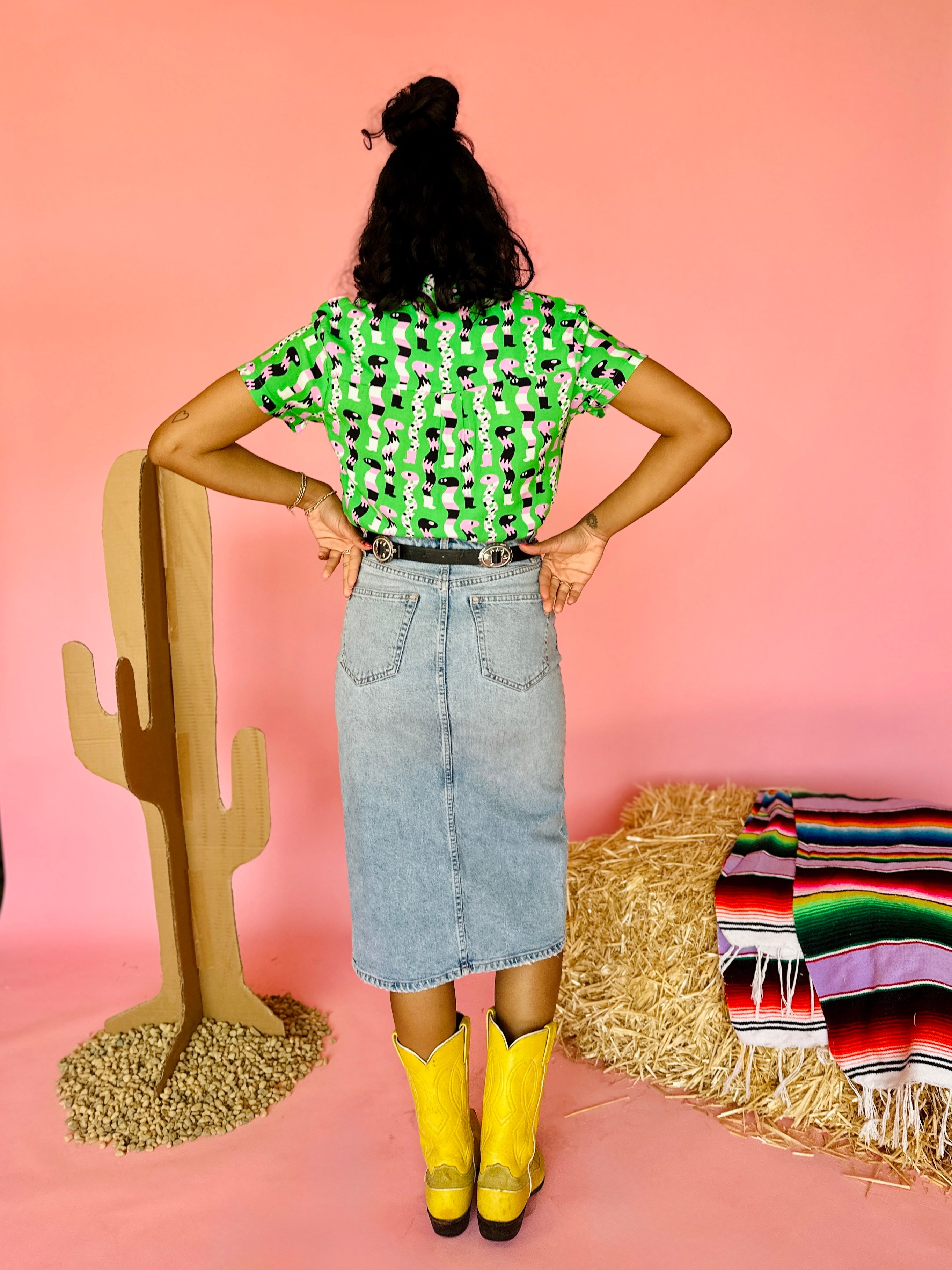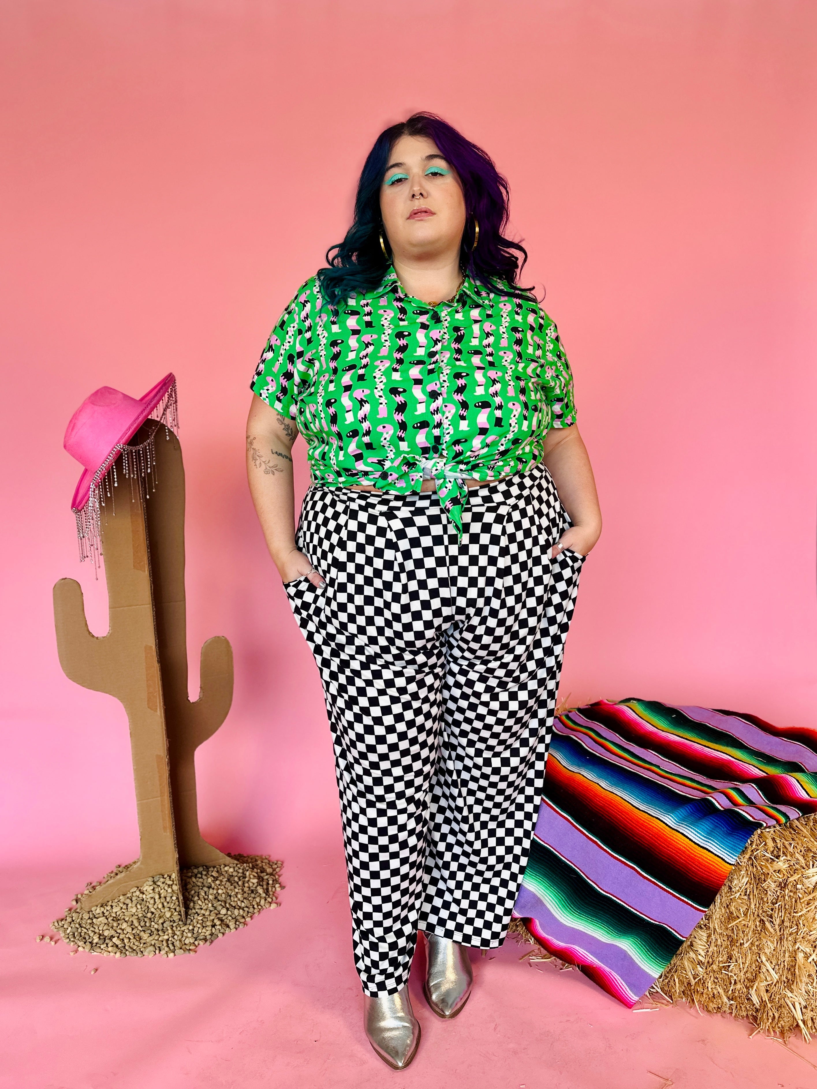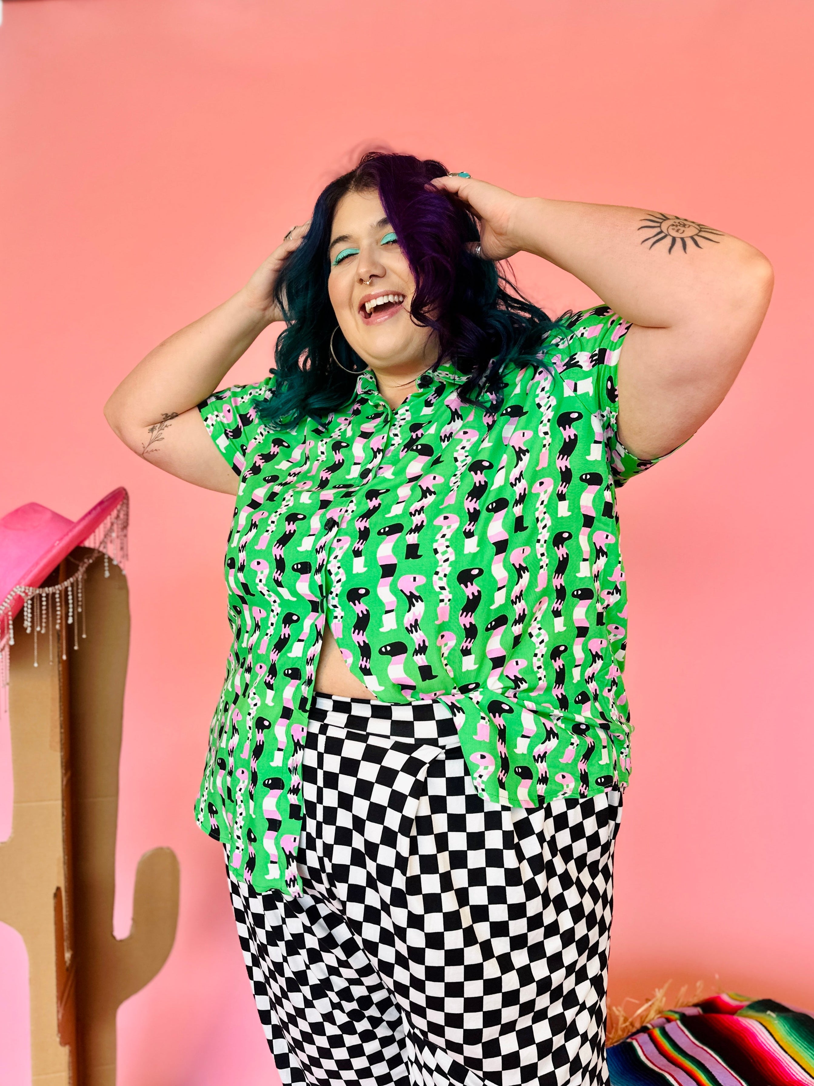 We are a woman owned, women run business. We make limited edition textiles with artists we love in cuts to make you look and feel good. All our garments are produced in California. We try to source all our materials in the USA and work with incredibly nice people.