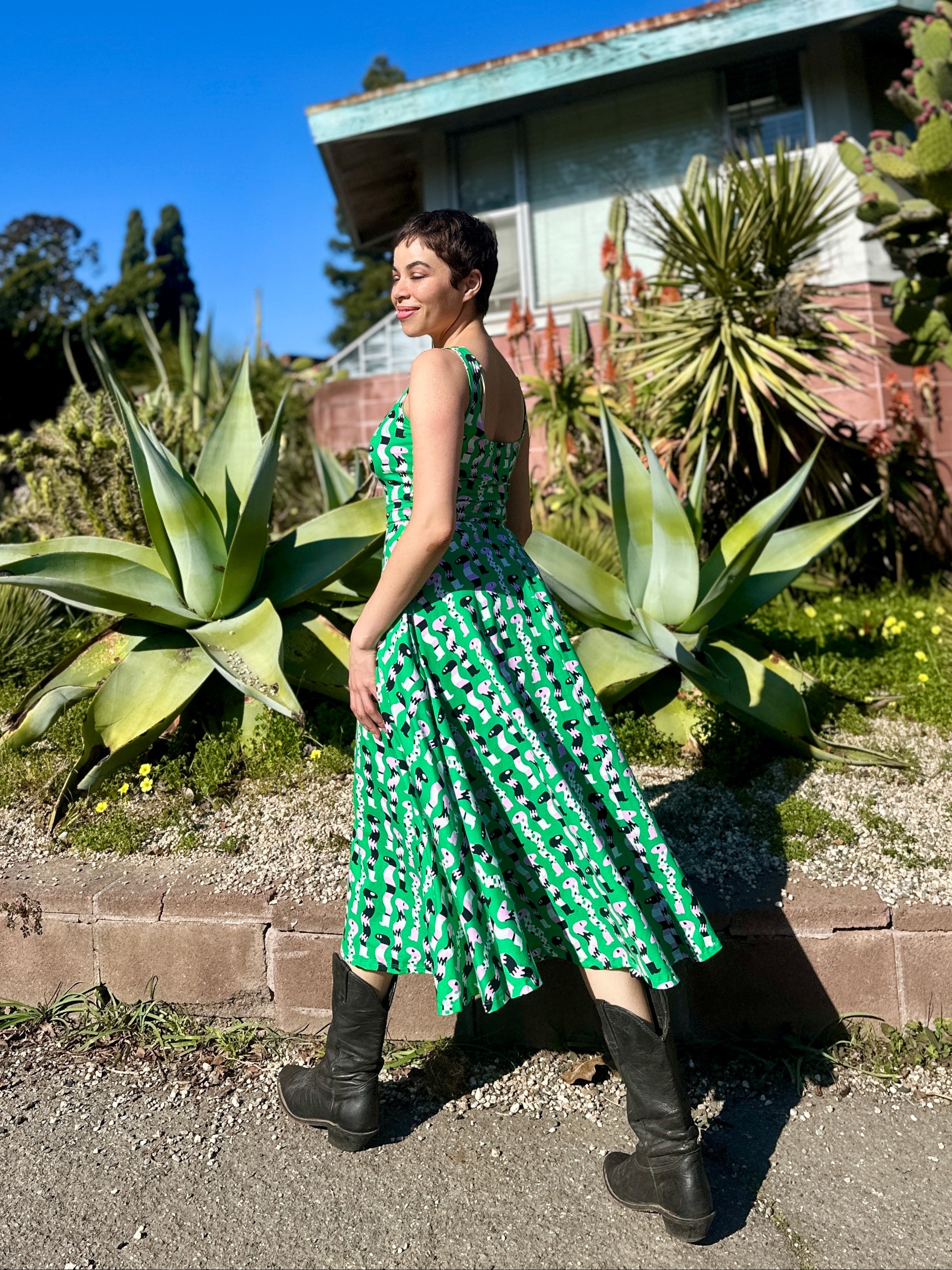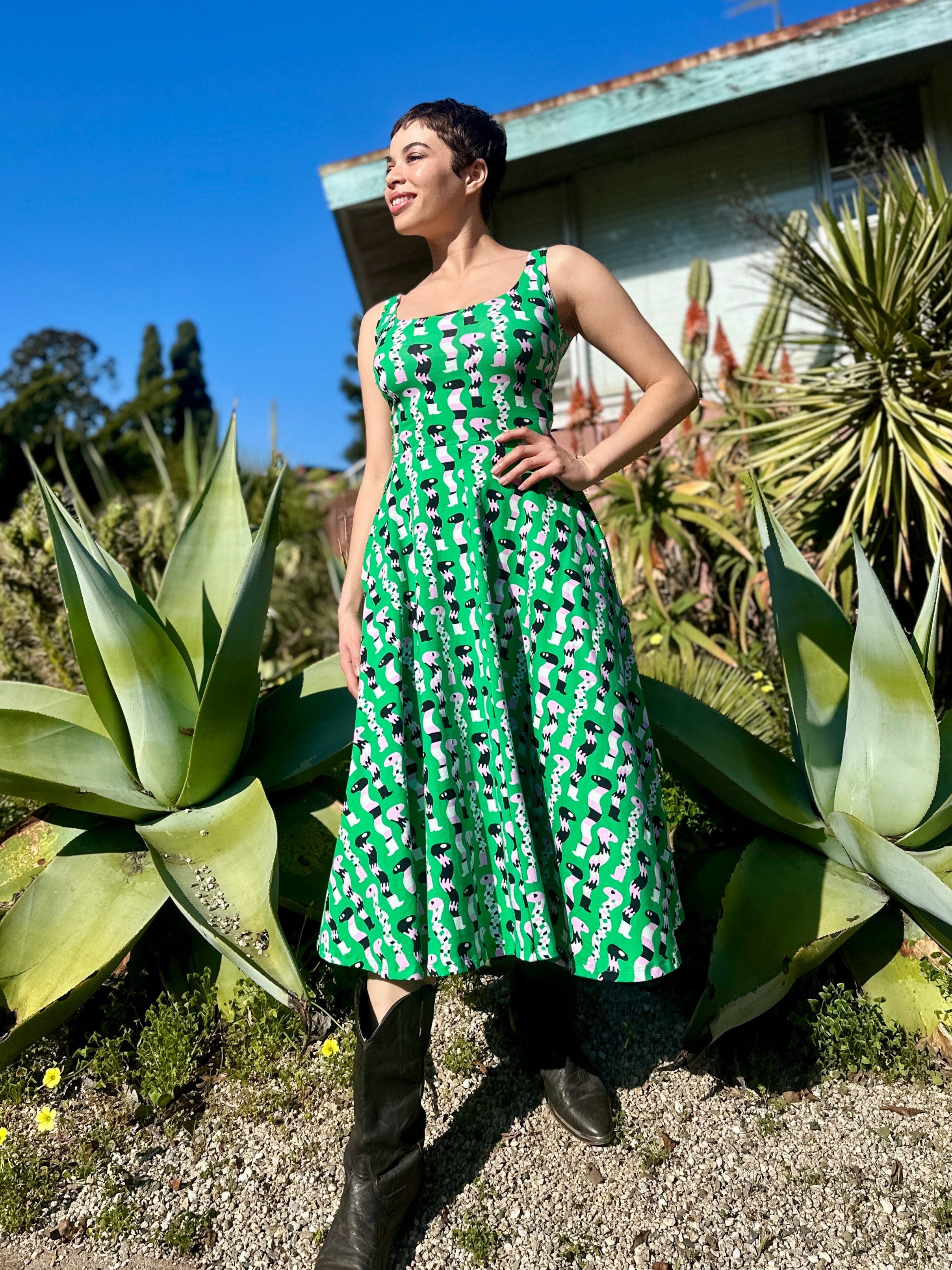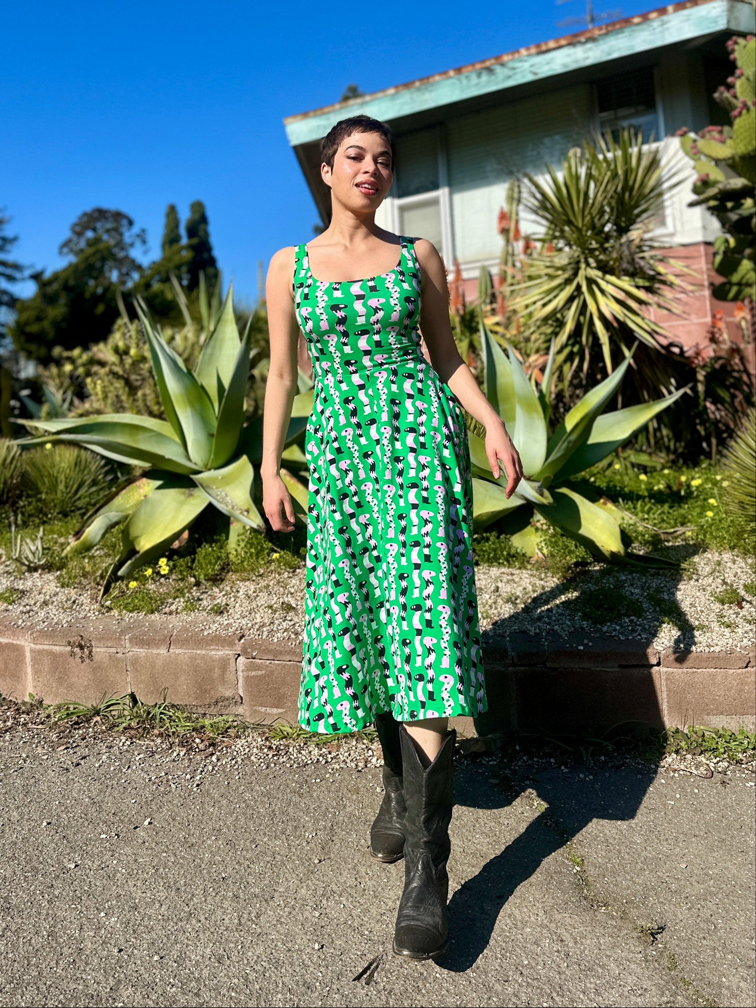 We are a woman owned, women run business. We make limited edition textiles with artists we love in cuts to make you look and feel good. All our garments are produced in California. We try to source all our materials in the USA and work with incredibly nice people.