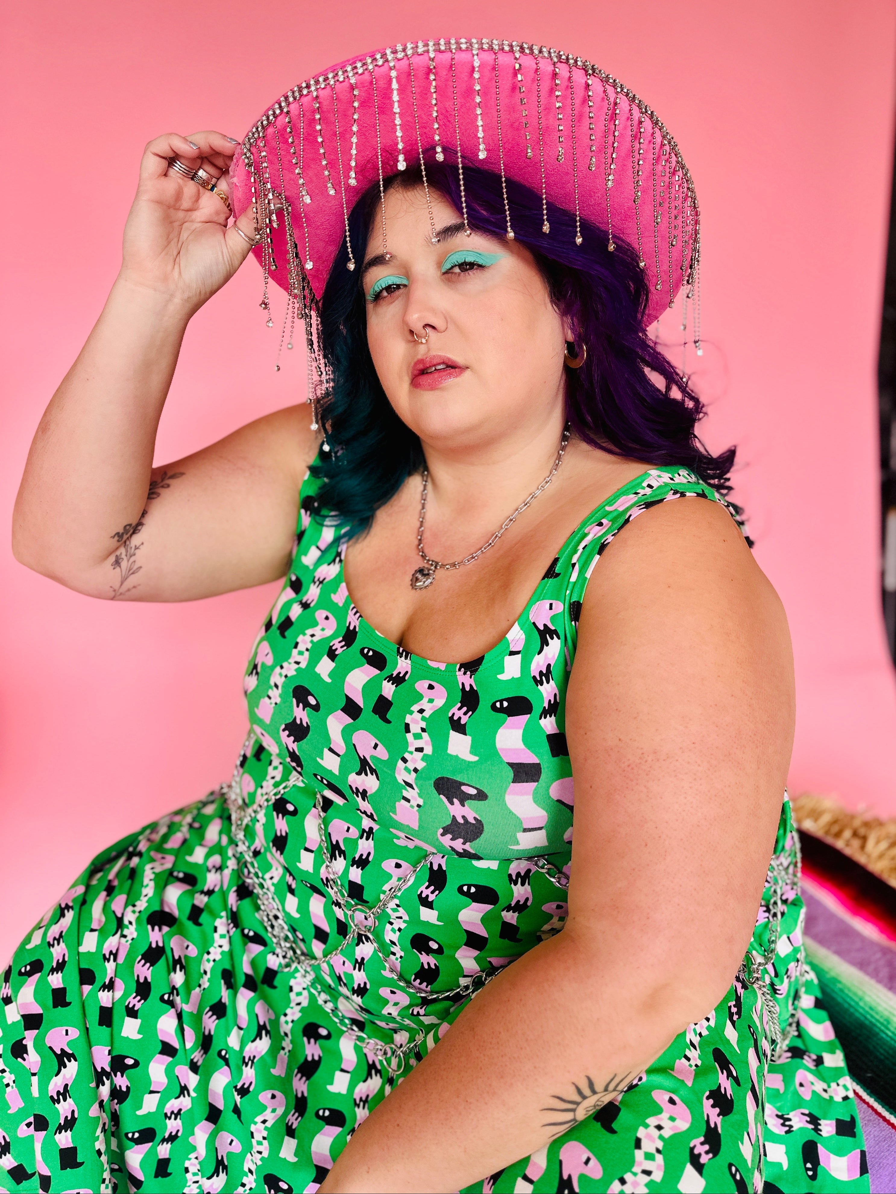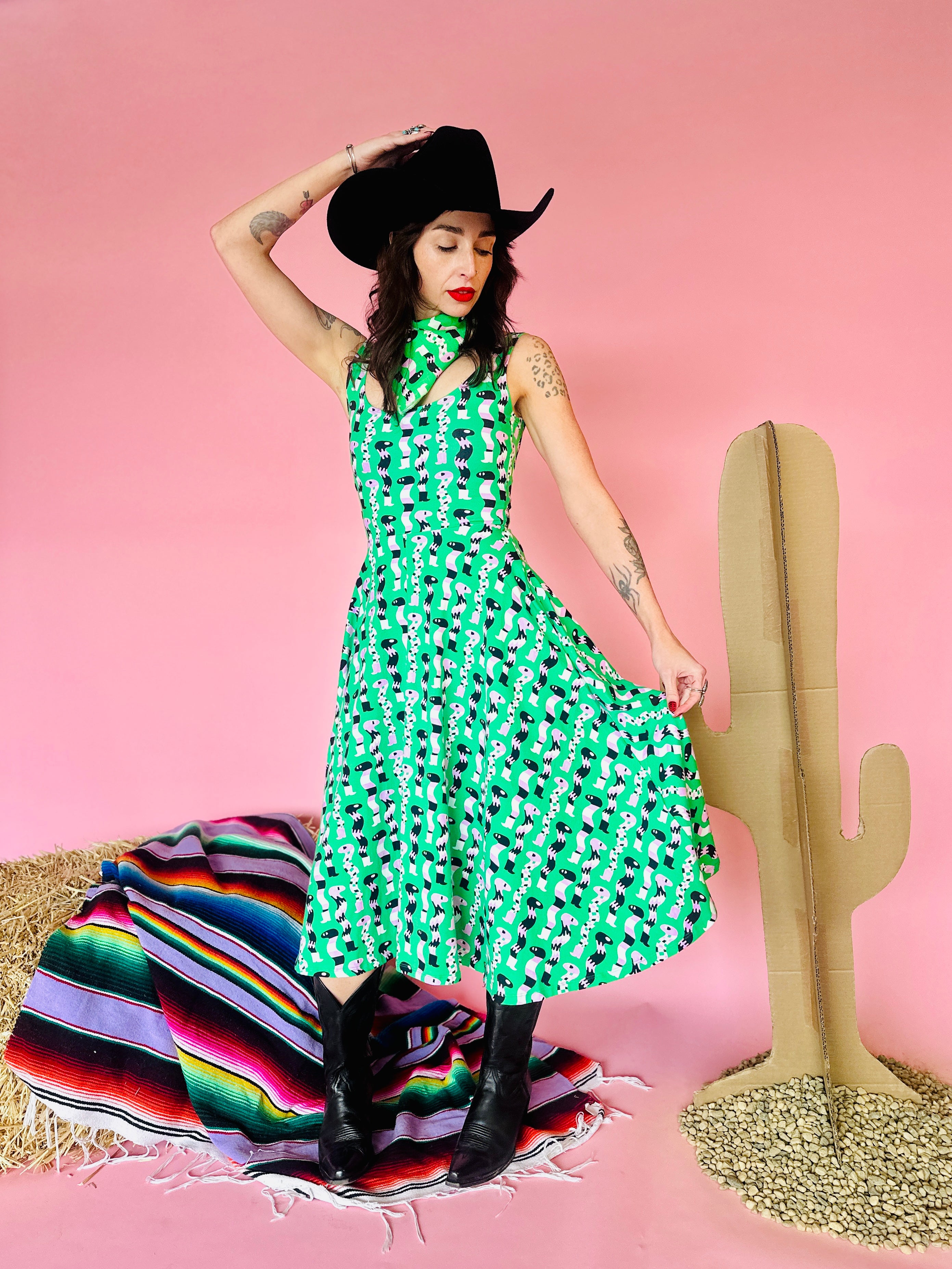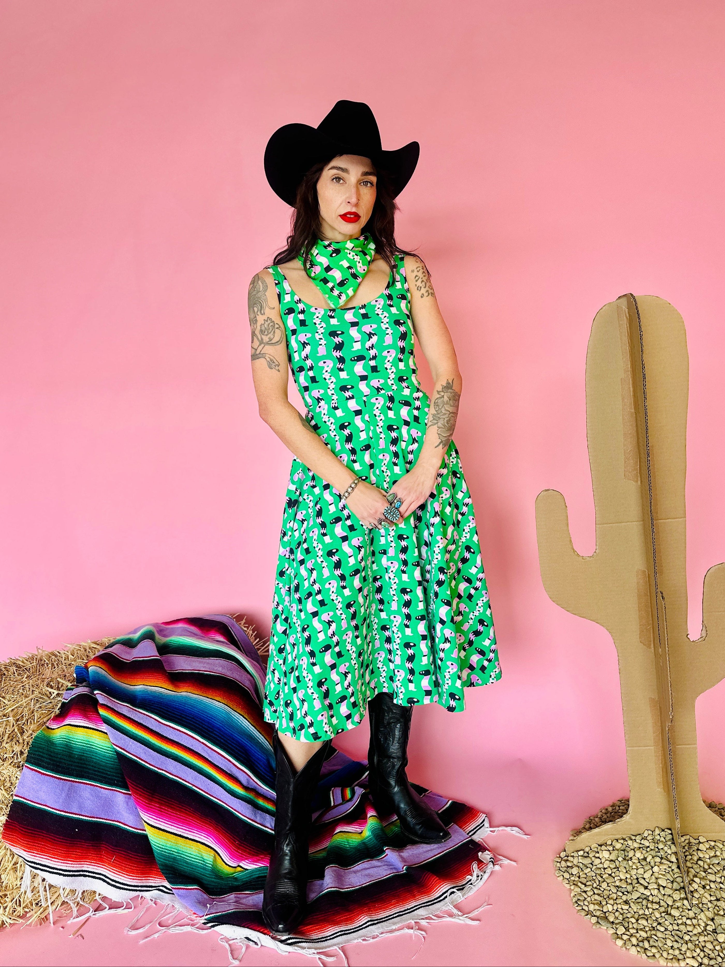 We are a woman owned, women run business. We make limited edition textiles with artists we love in cuts to make you look and feel good. All our garments are produced in California. We try to source all our materials in the USA and work with incredibly nice people.