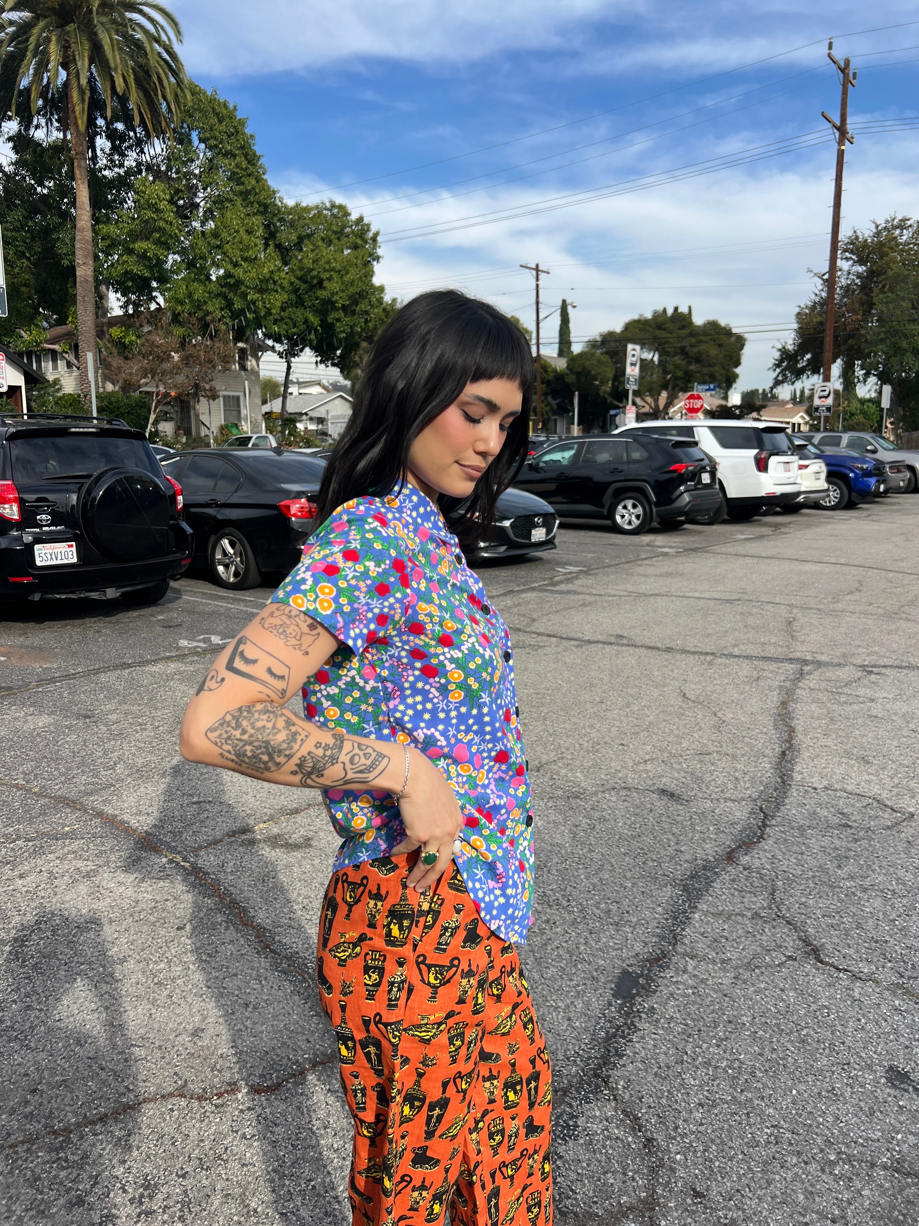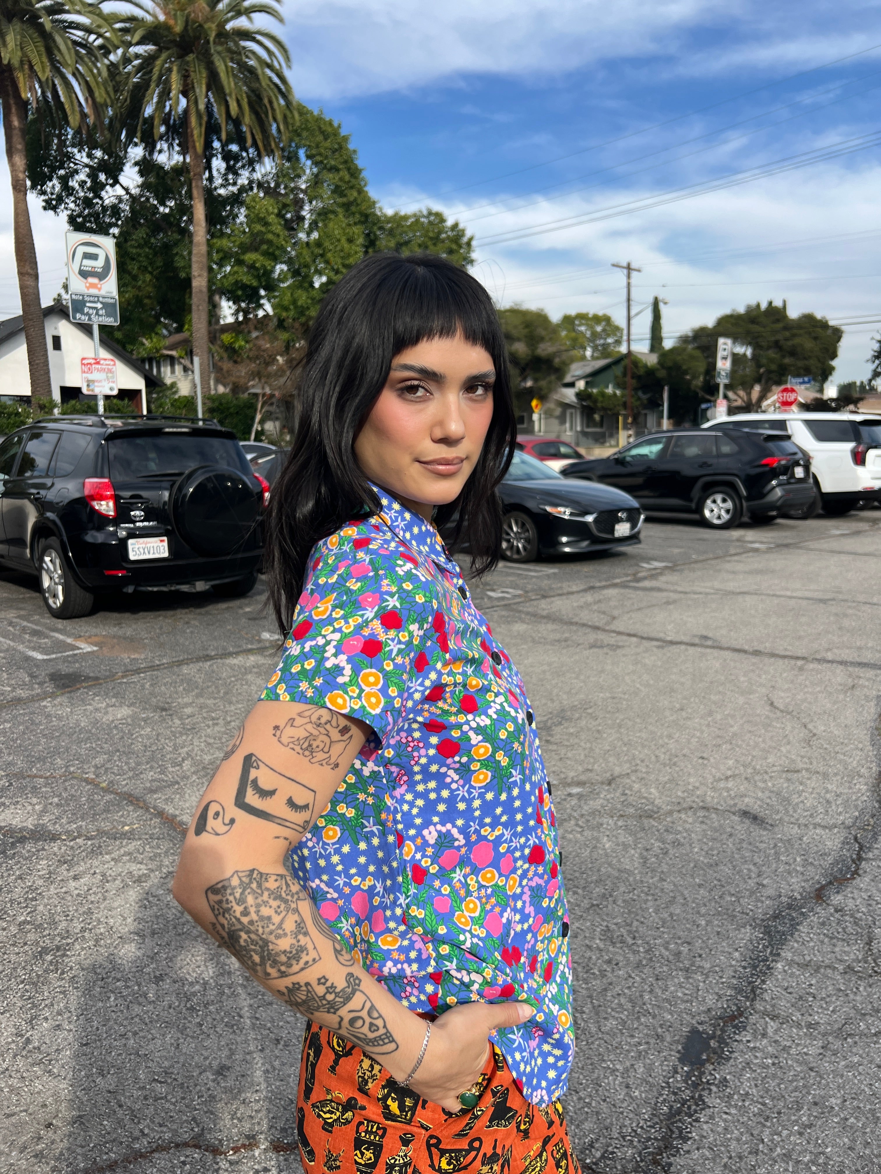 We are a woman owned, women run business. We make limited edition textiles with artists we love in cuts to make you look and feel good. All our garments are produced in California. We try to source all our materials in the USA and work with incredibly nice people.