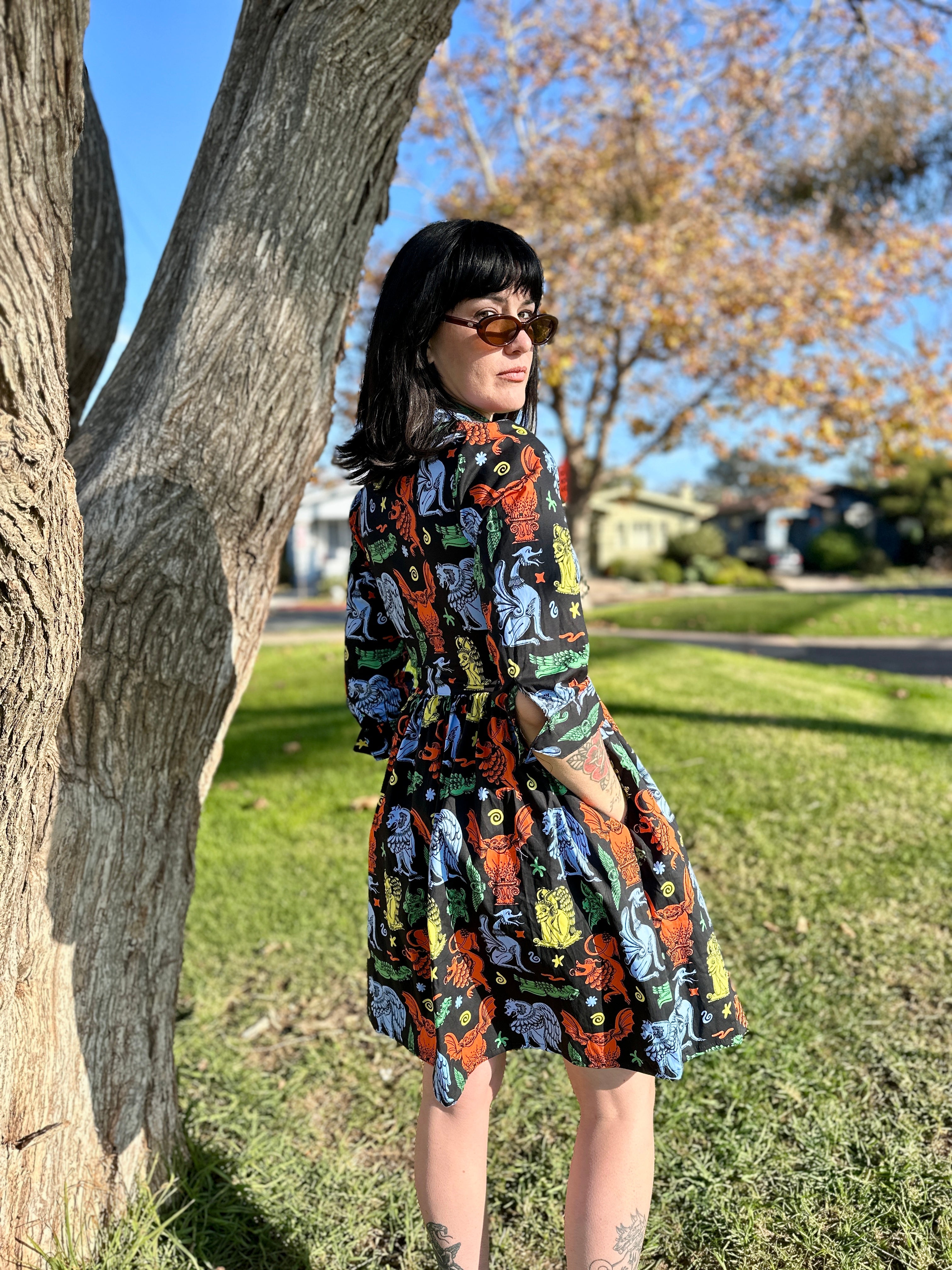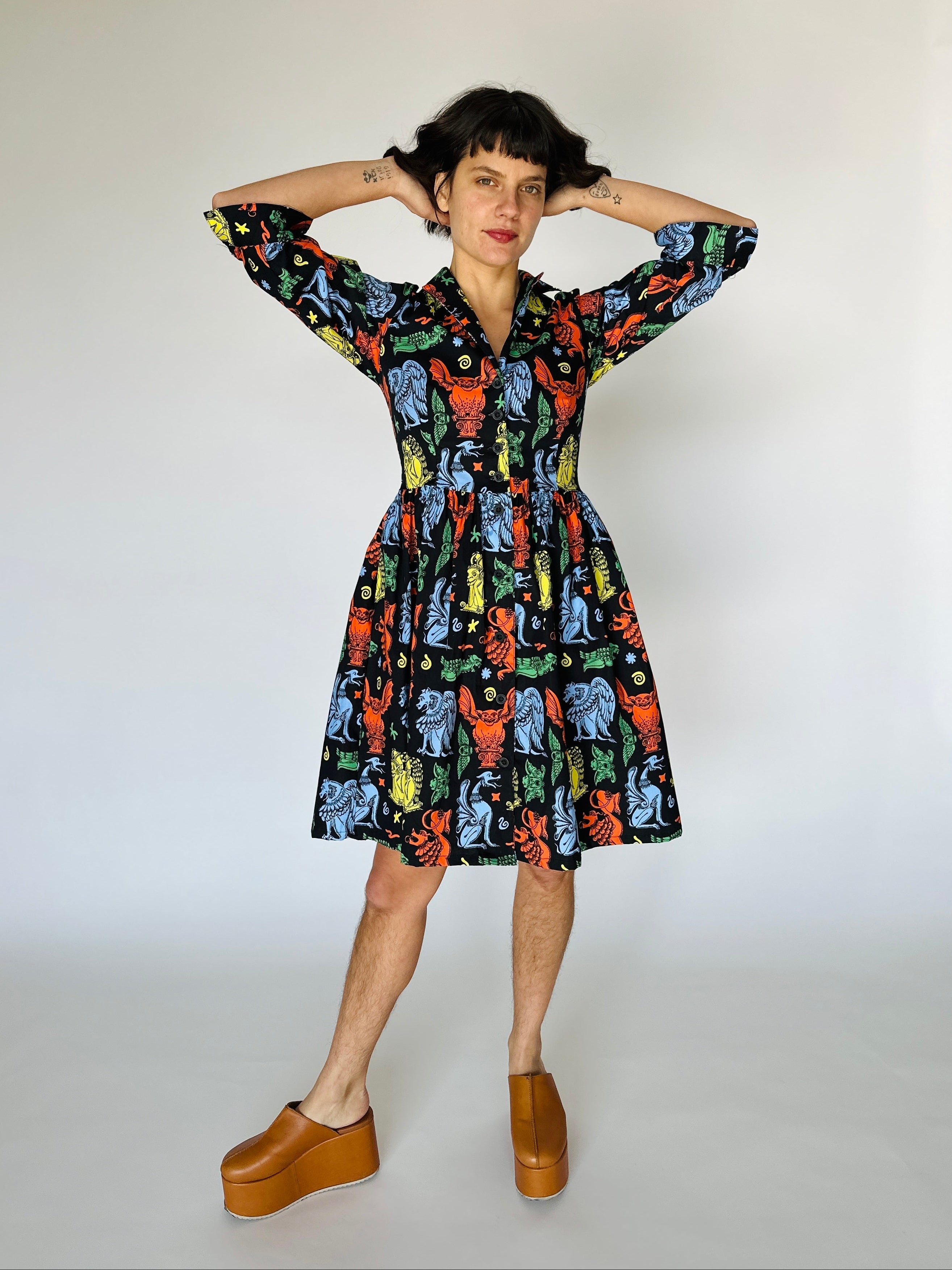 We are a woman owned, women run business. We make limited edition textiles with artists we love in cuts to make you look and feel good. All our garments are produced in California. We try to source all our materials in the USA and work with incredibly nice people.