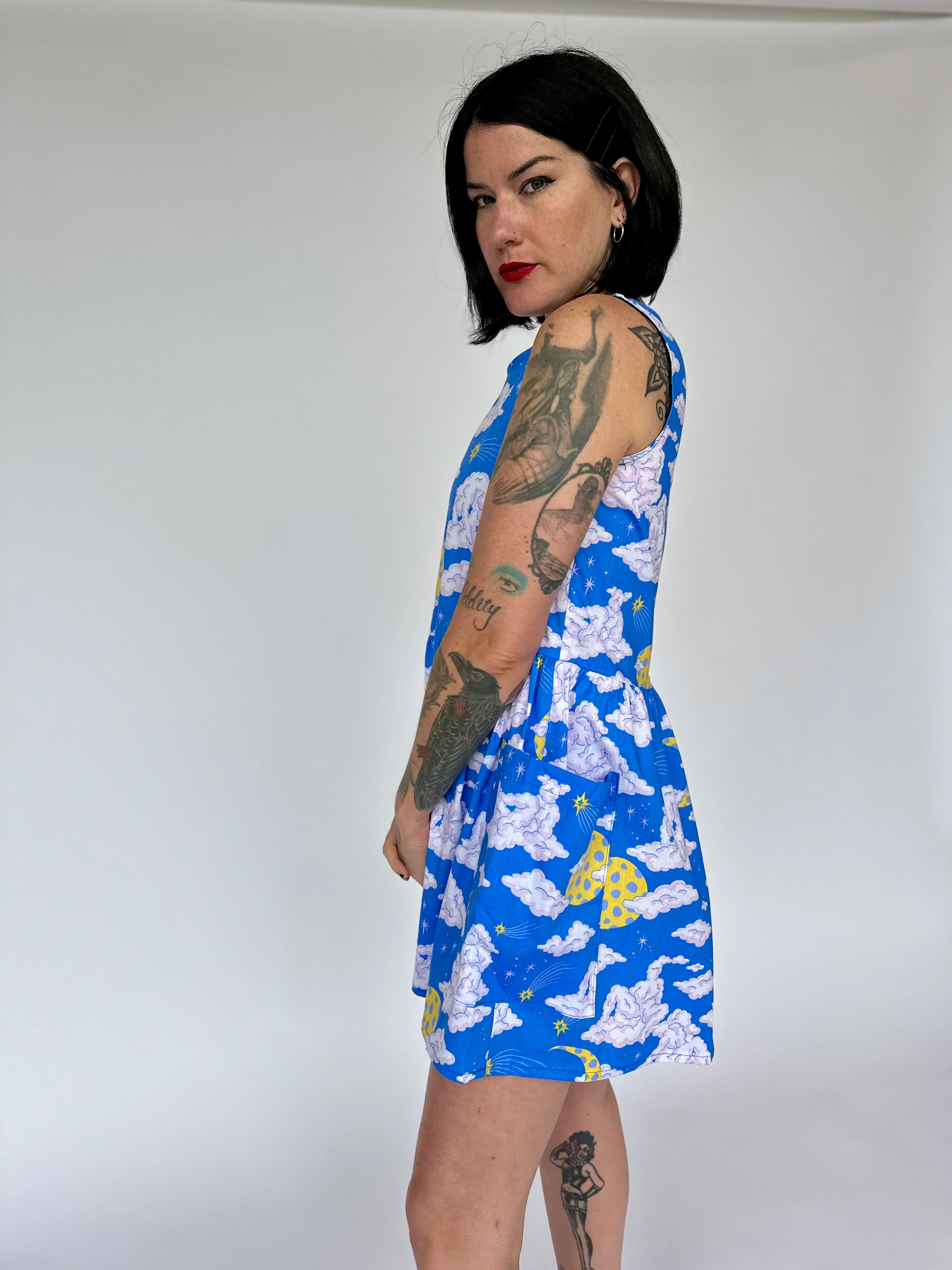 We are a woman owned, women run business. We make limited edition textiles with artists we love in cuts to make you look and feel good. All our garments are produced in California. We try to source all our materials in the USA and work with incredibly nice people.