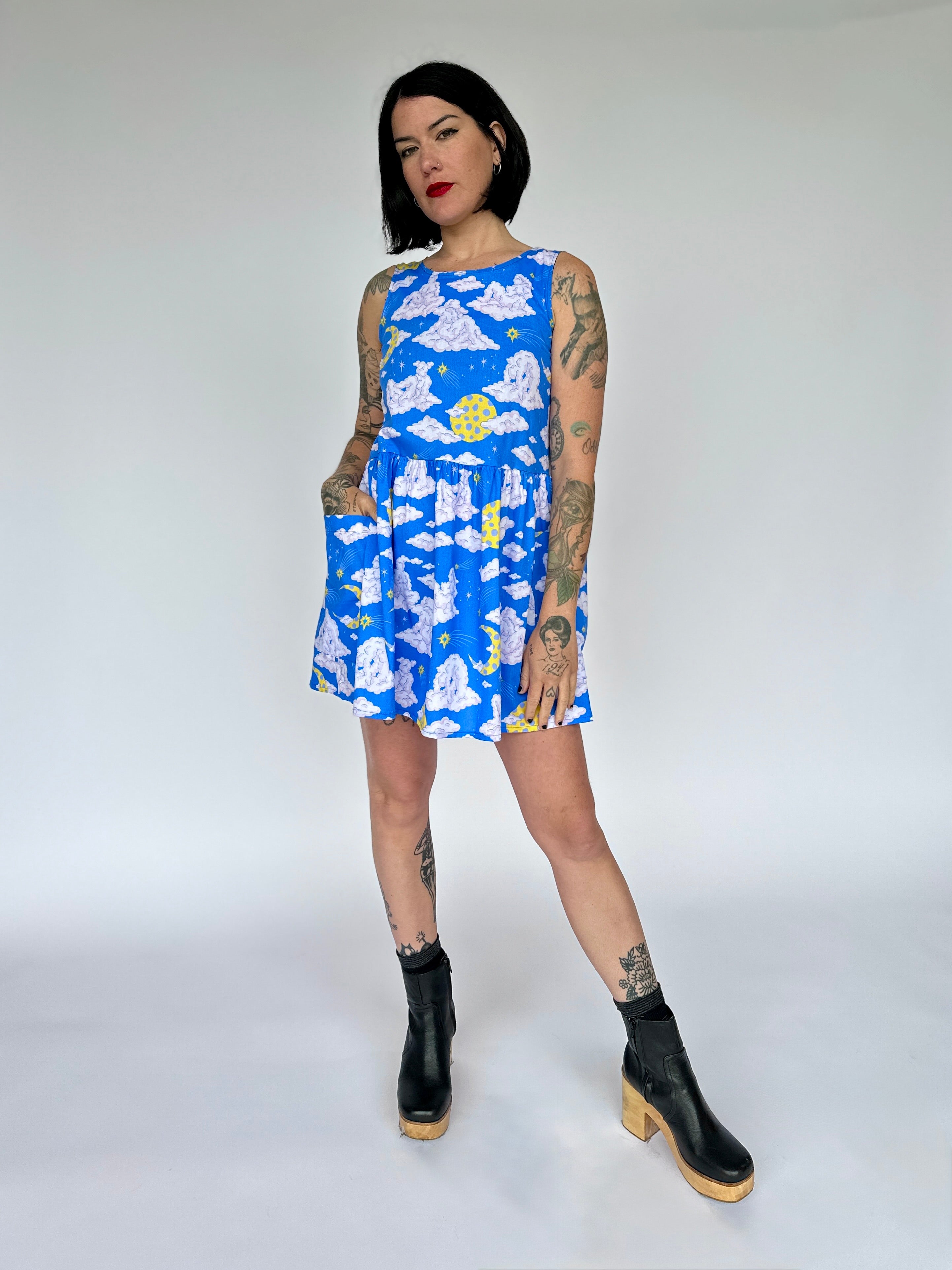 FINAL SALEThis one's for the mini dress lovers out there! 🫶 A sweet little sleeveless mini swing dress with great big front patch pockets for...