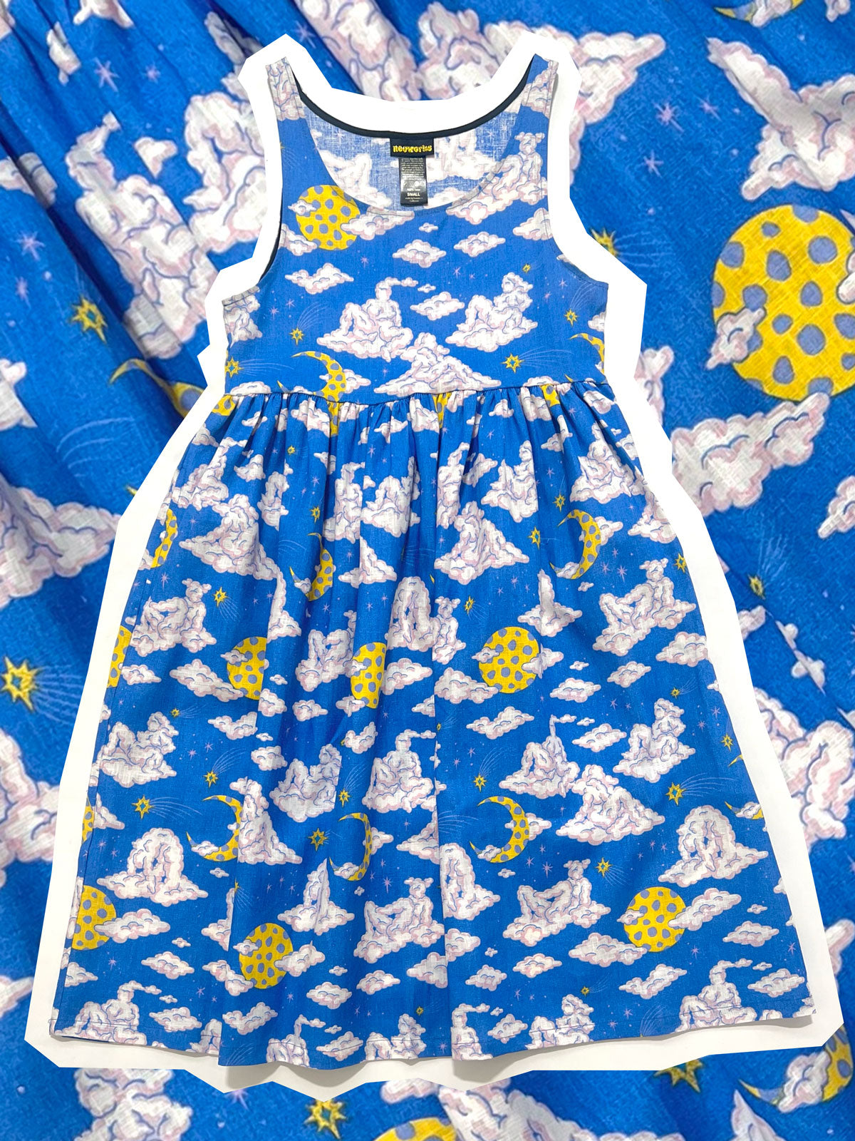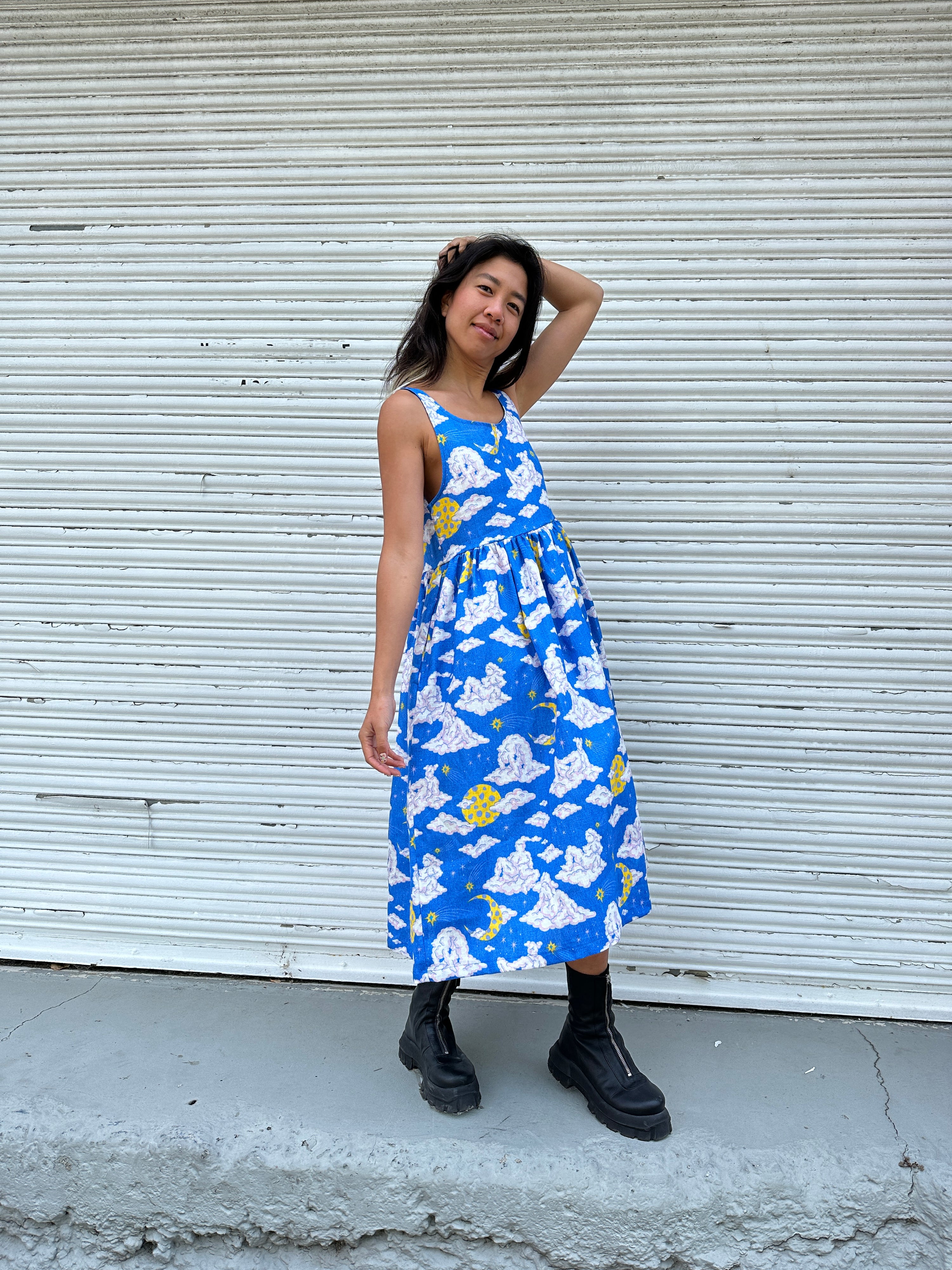 We are a woman owned, women run business. We make limited edition textiles with artists we love in cuts to make you look and feel good. All our garments are produced in California. We try to source all our materials in the USA and work with incredibly nice people.