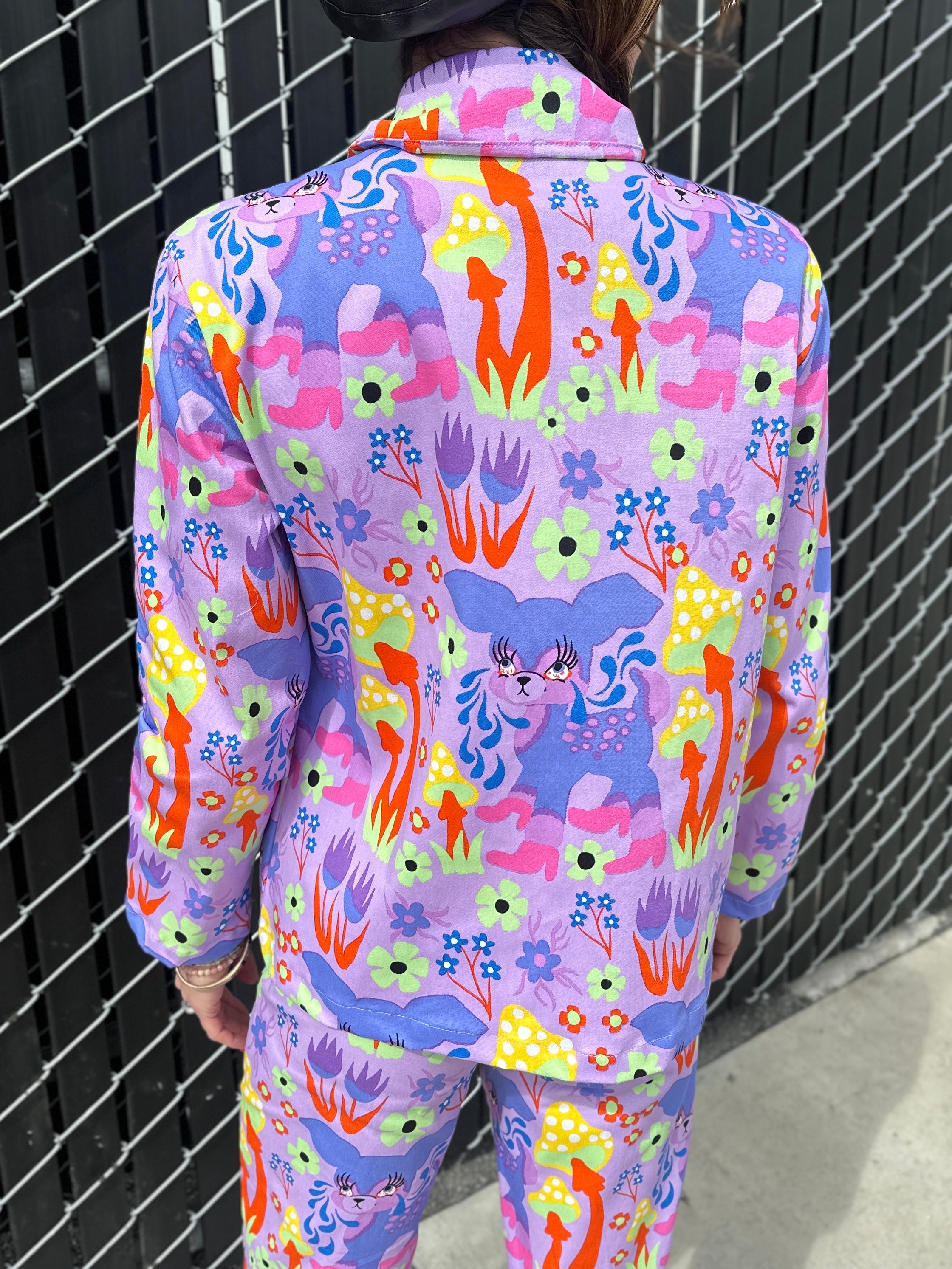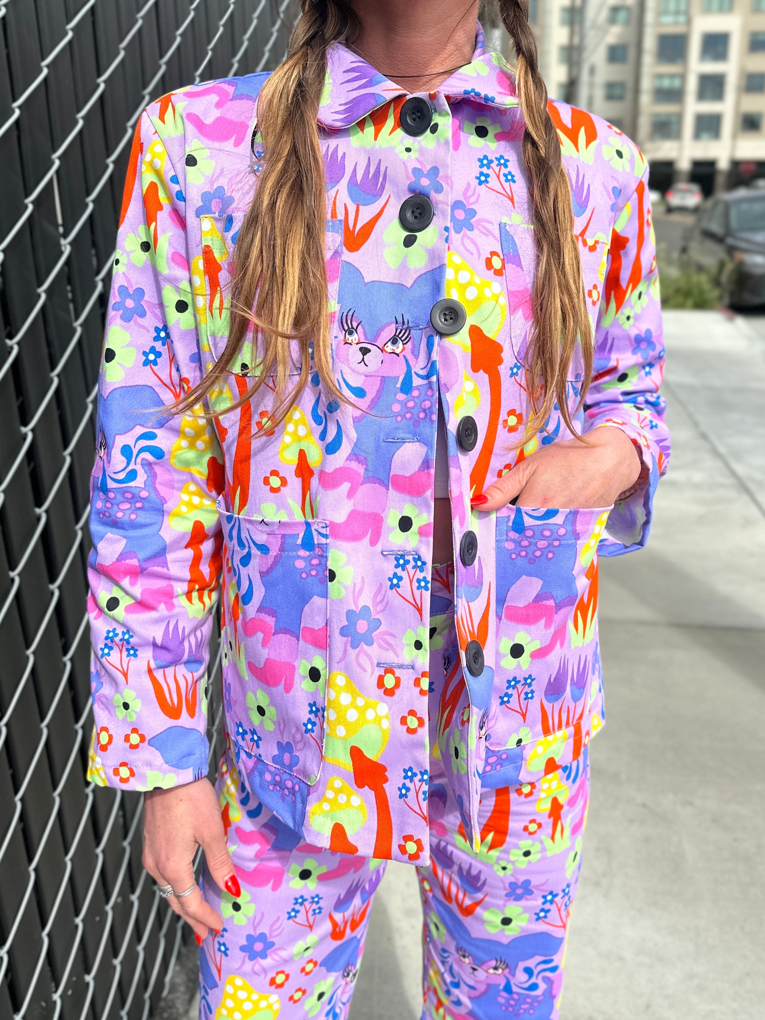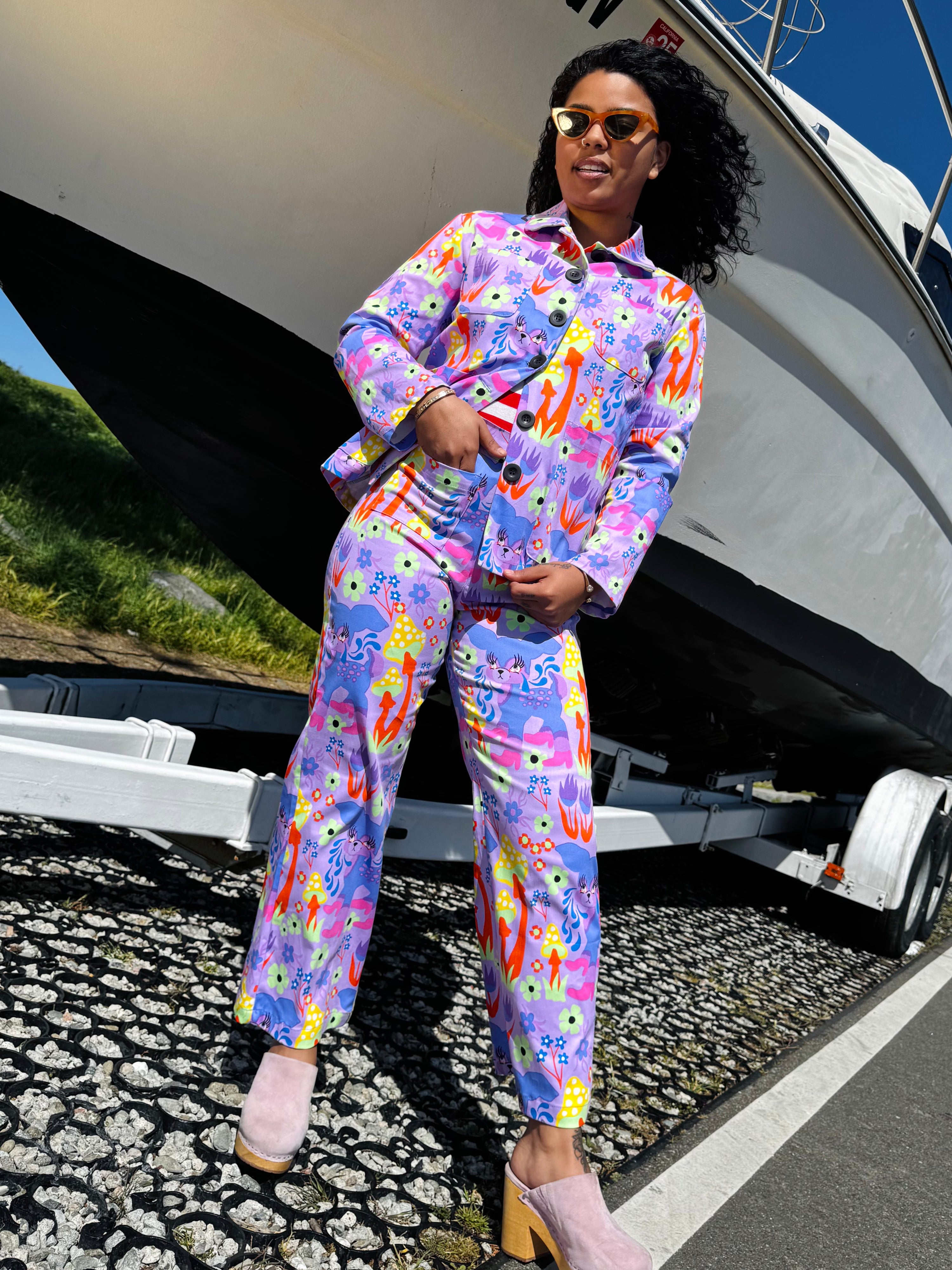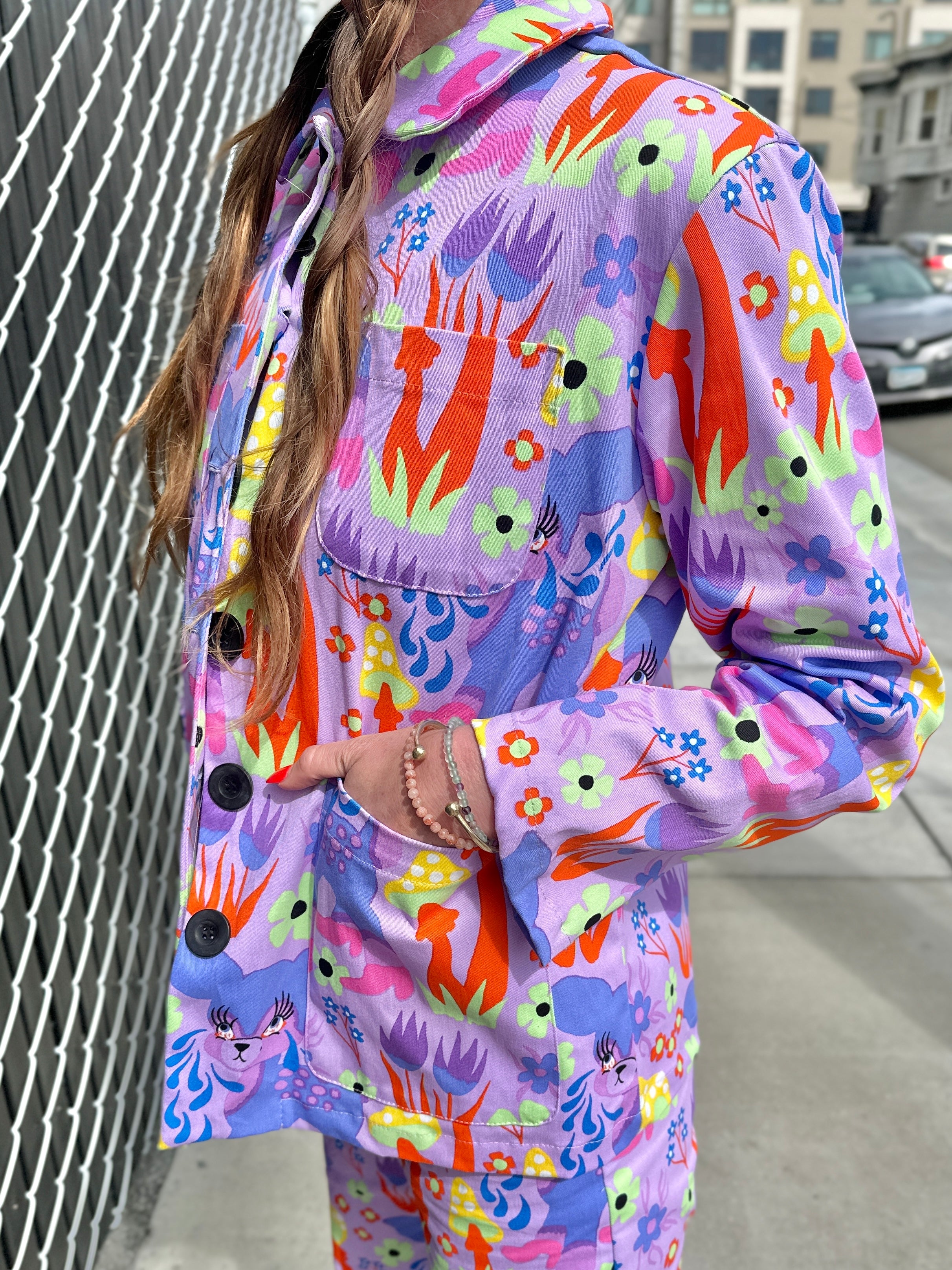 We are a woman owned, women run business. We make limited edition textiles with artists we love in cuts to make you look and feel good. All our garments are produced in California. We try to source all our materials in the USA and work with incredibly nice people.