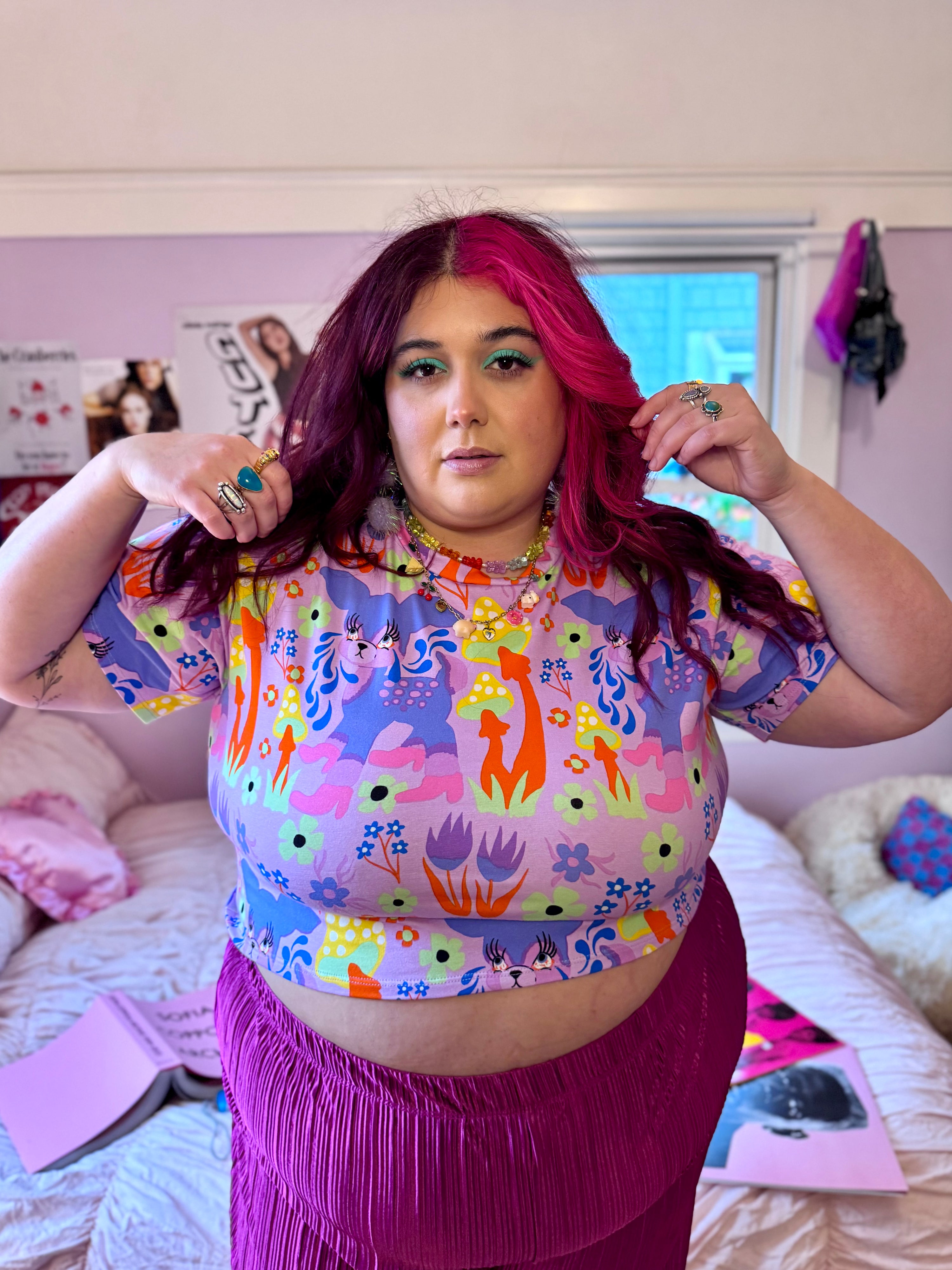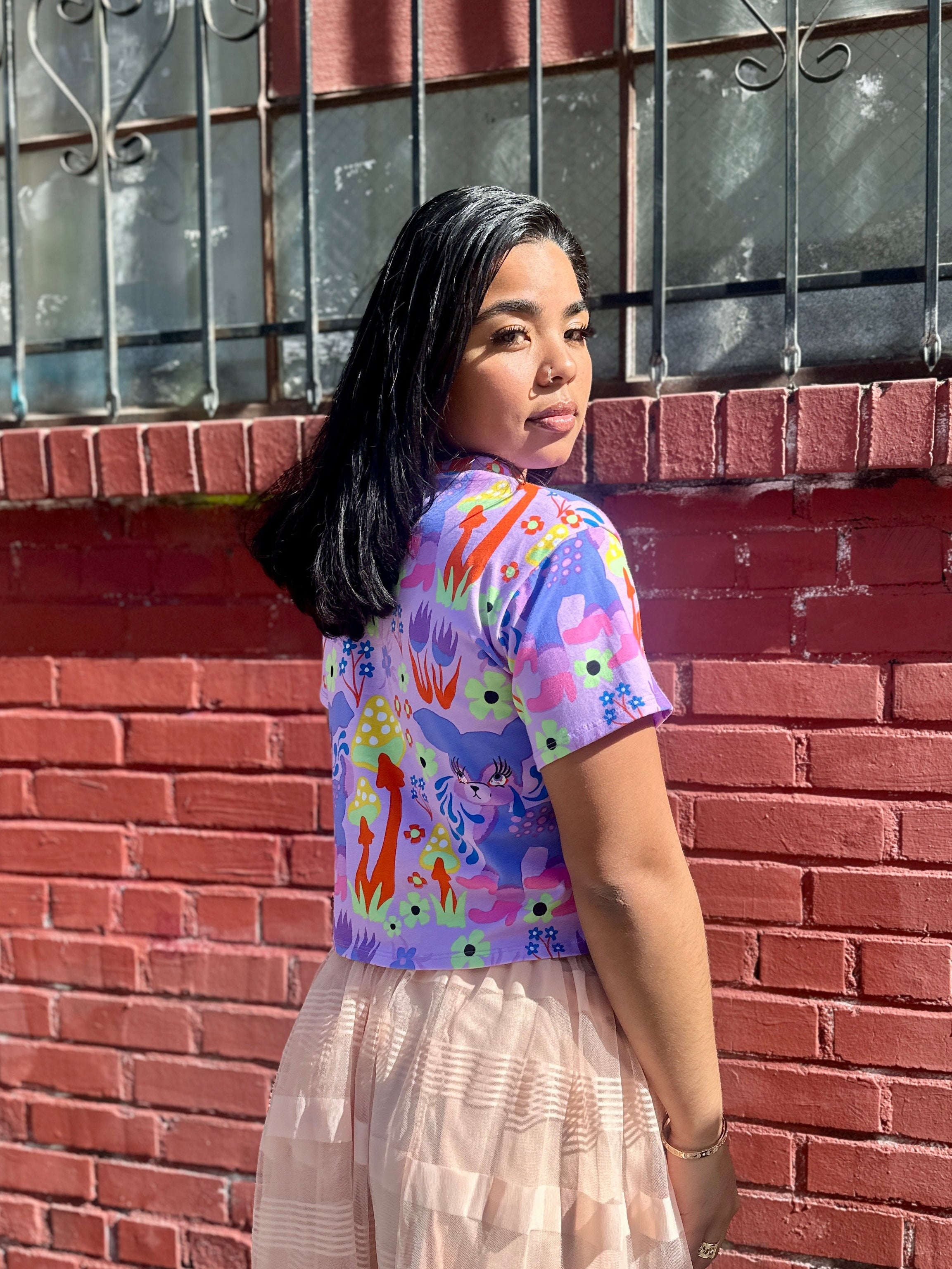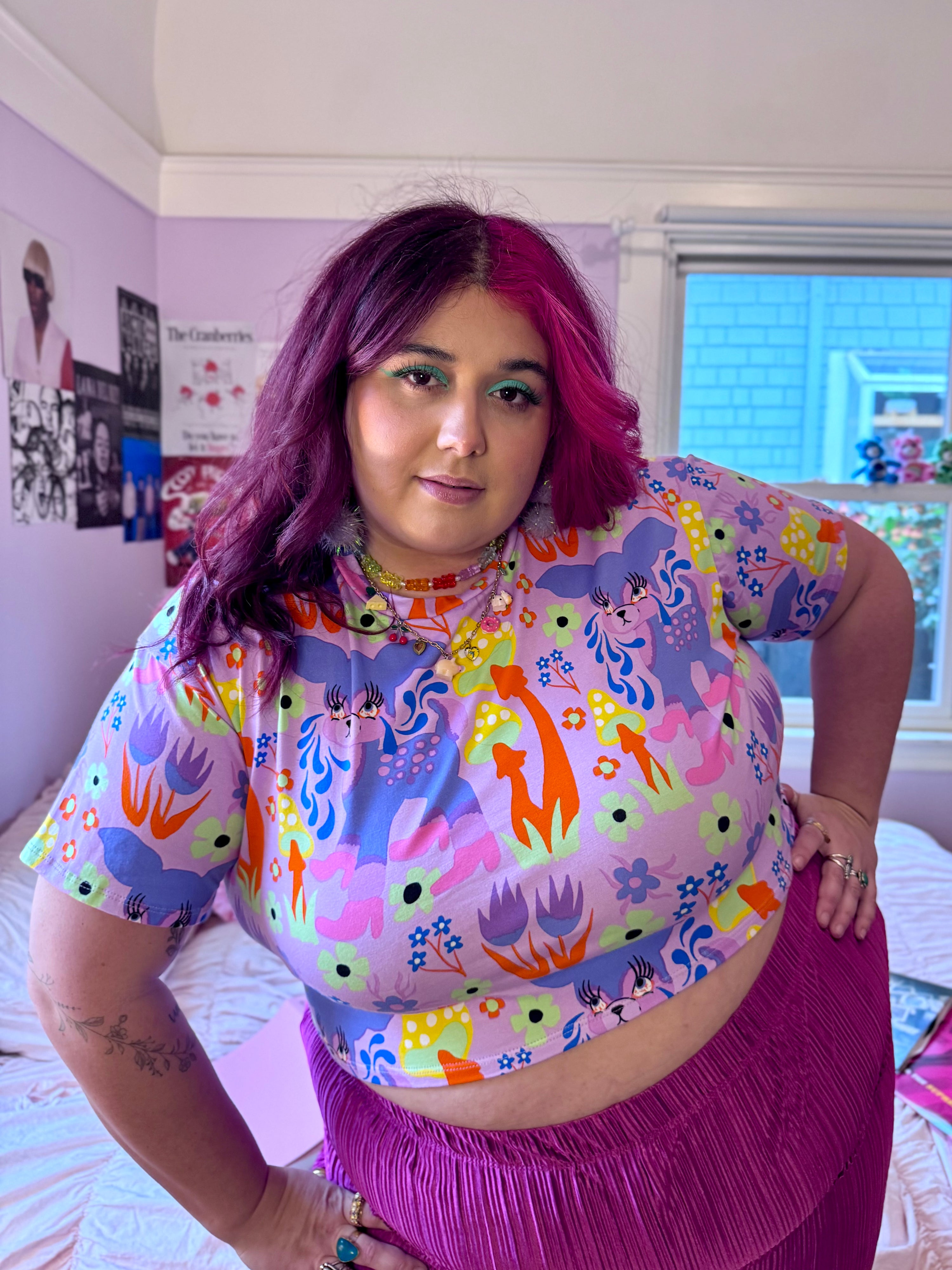 We measure each of our garments by hand, unstretched and laying flat. The crop top fits true to size. Additionally, our cotton jersey has a lot of give so each size can stretch up to eight additional inches on the body. Please consult the size guide below to find the best fit for you!