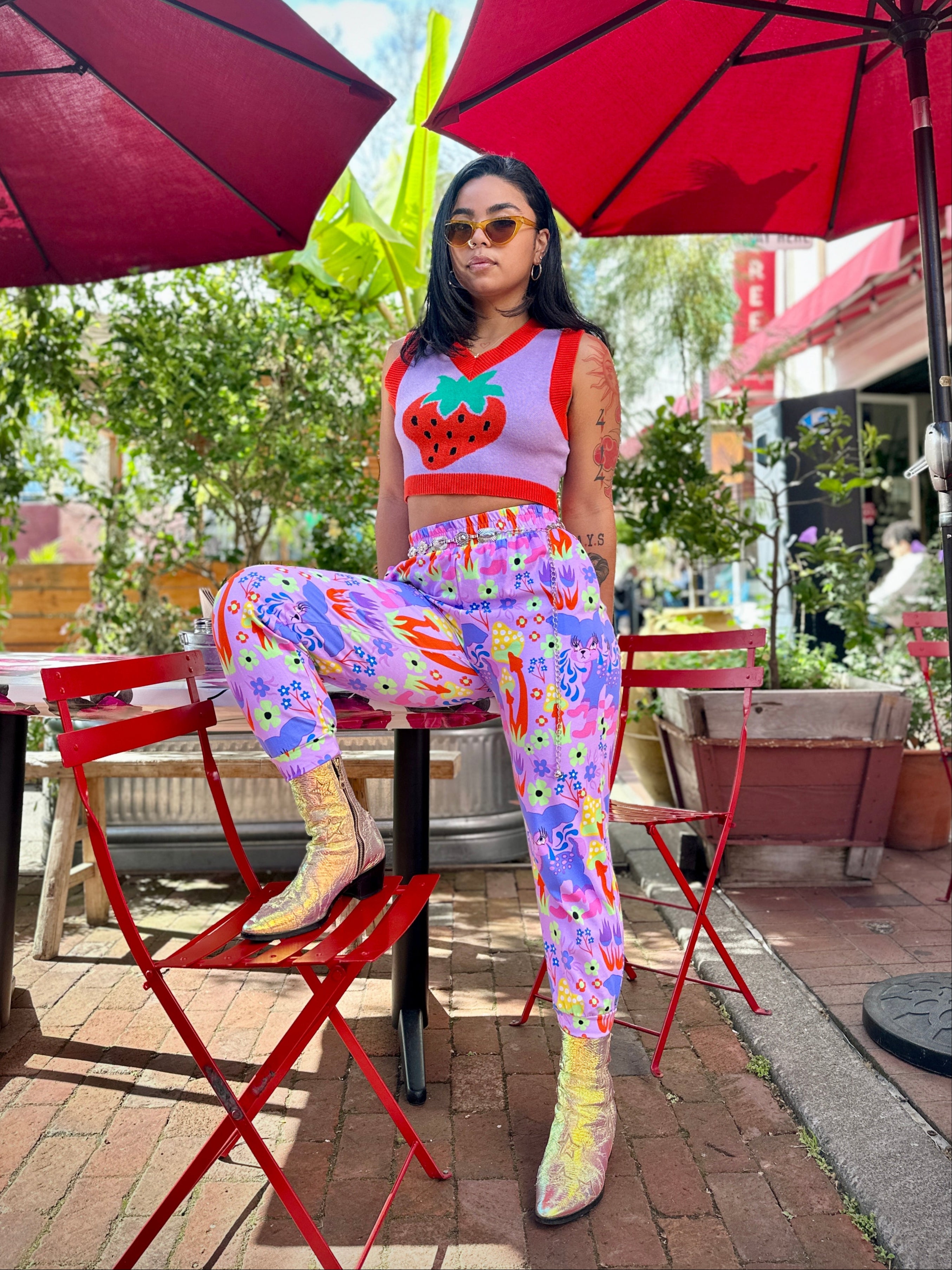 We are a woman owned, women run business. We make limited edition textiles with artists we love in cuts to make you look and feel good. All our garments are produced in California. We try to source all our materials in the USA and work with incredibly nice people.