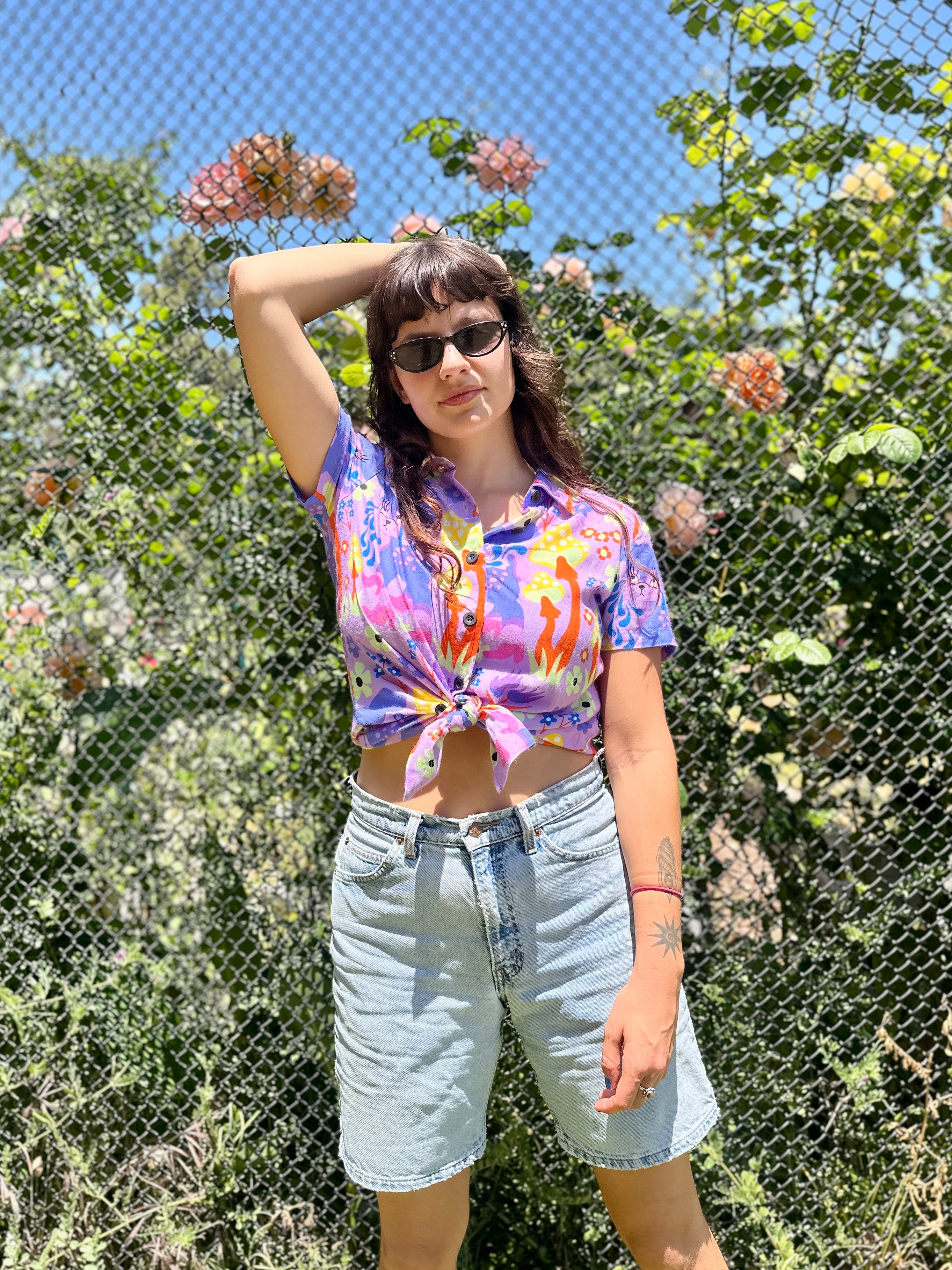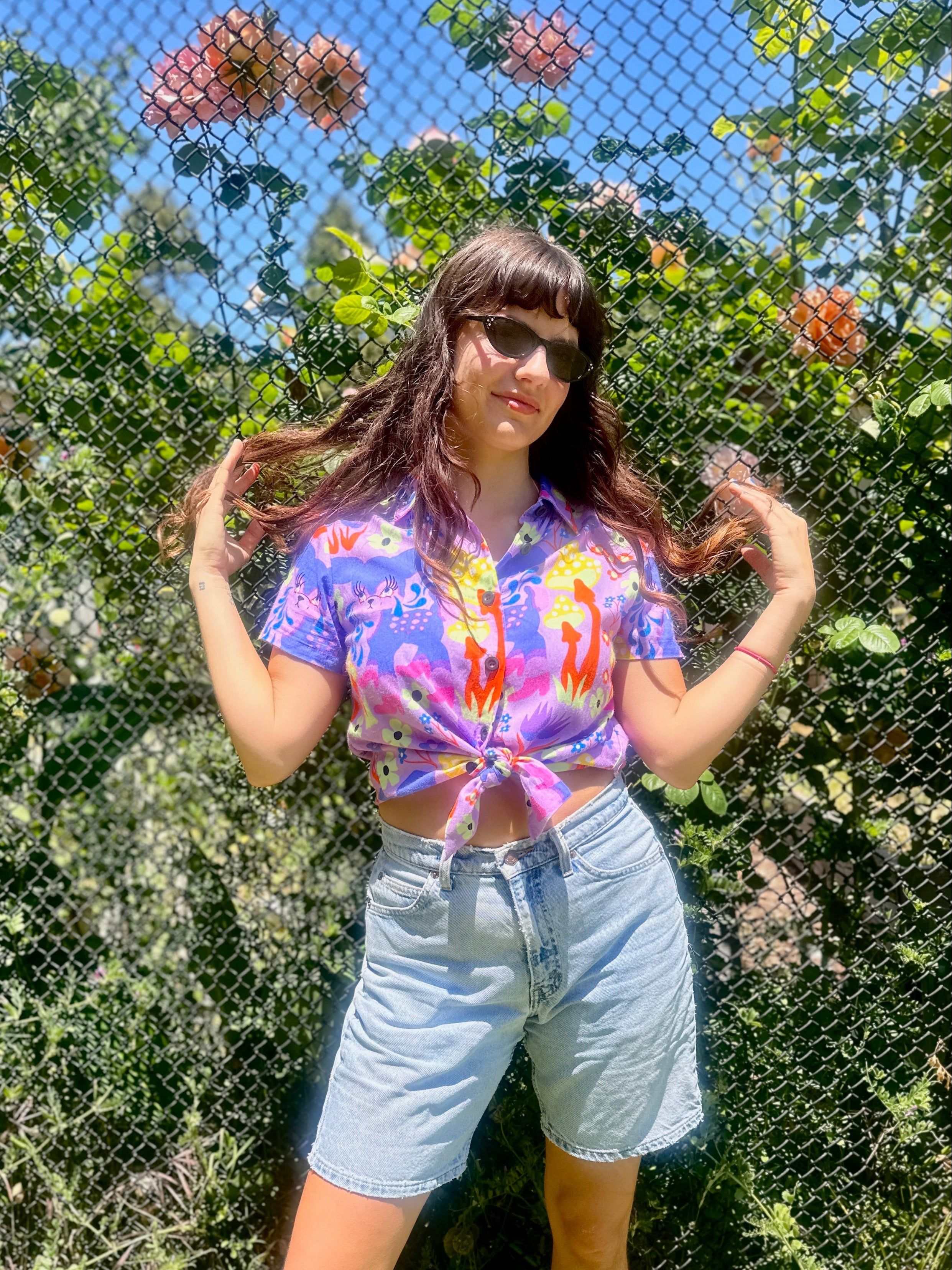 We are a woman owned, women run business. We make limited edition textiles with artists we love in cuts to make you look and feel good. All our garments are produced in California. We try to source all our materials in the USA and work with incredibly nice people.