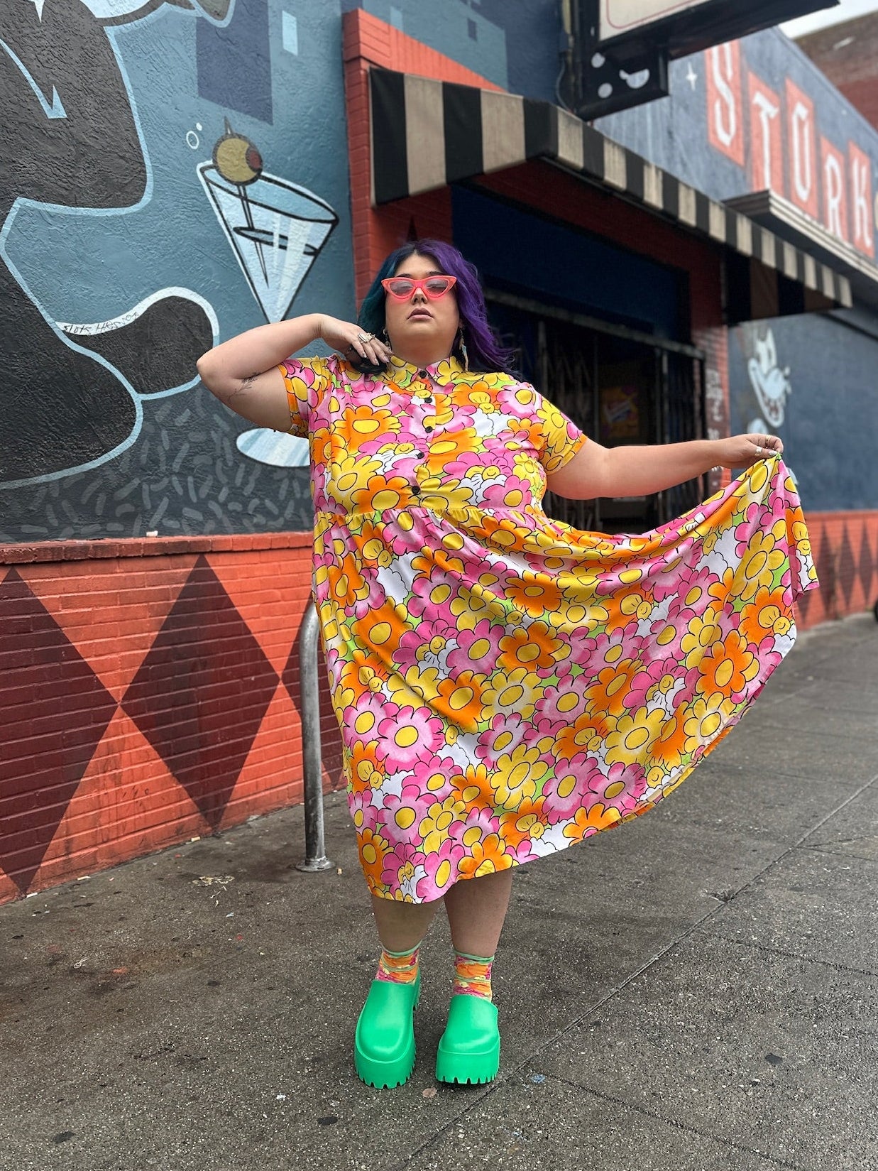 We are a woman owned, women run business. We make limited edition textiles with artists we love in cuts to make you look and feel good. All our garments are produced in California. We try to source all our materials in the USA and work with incredibly nice people.
