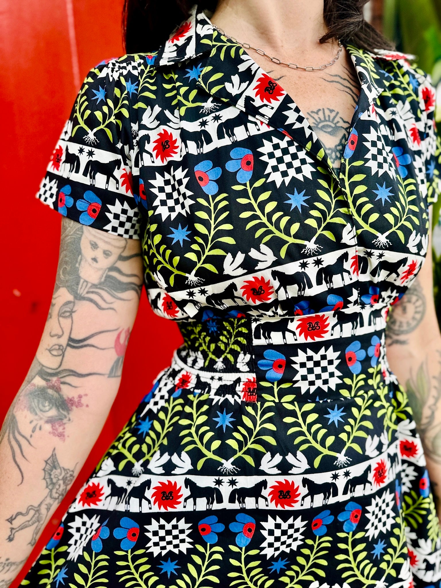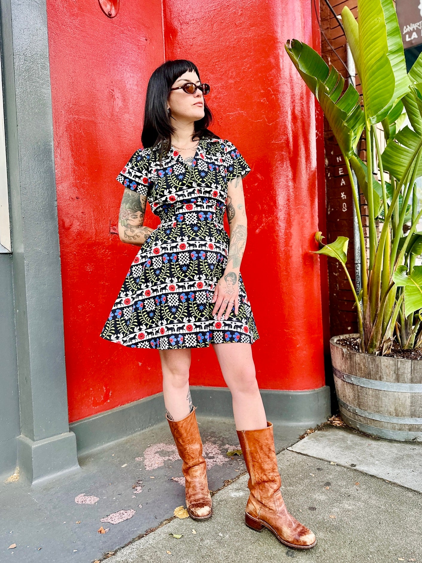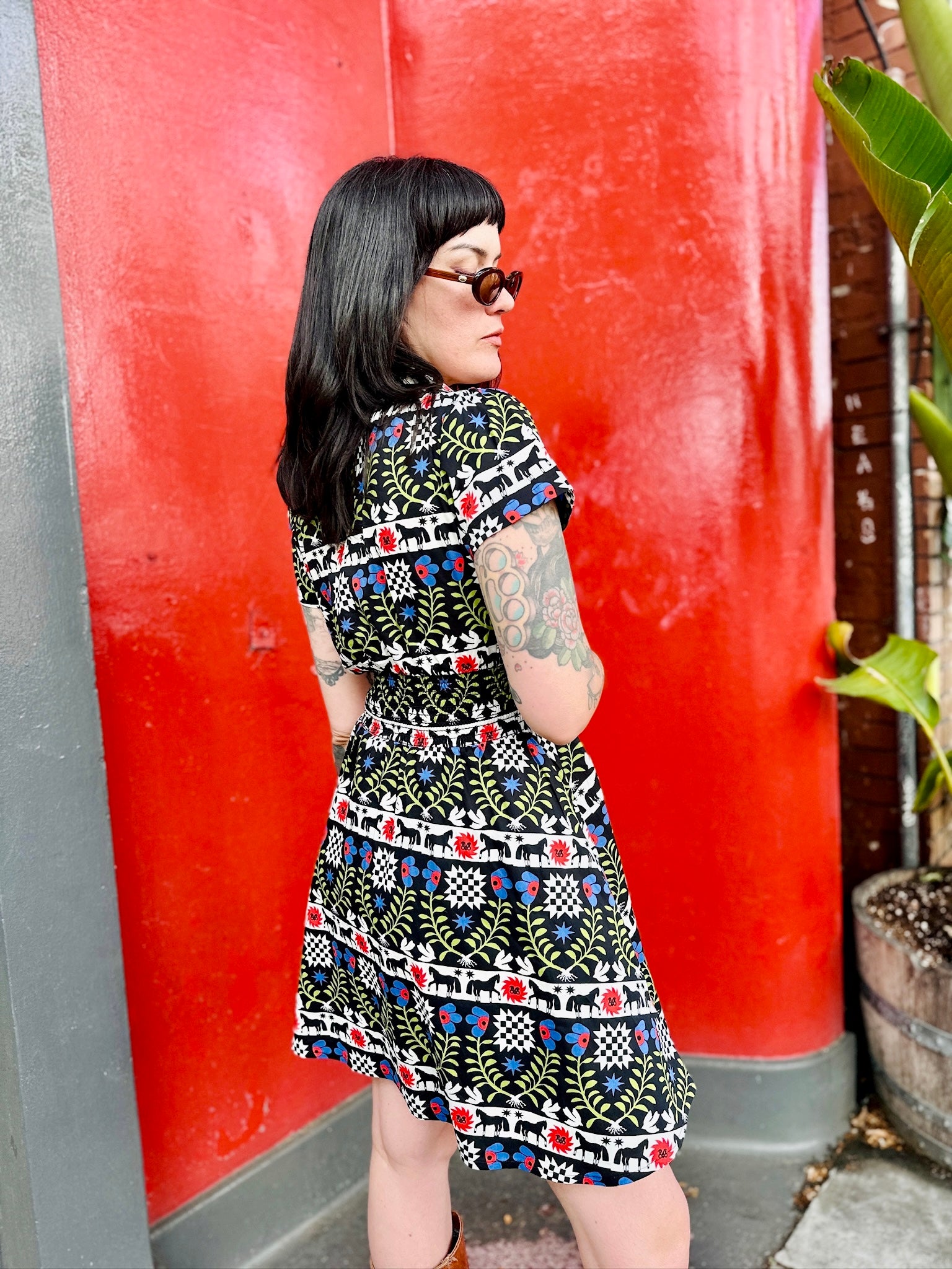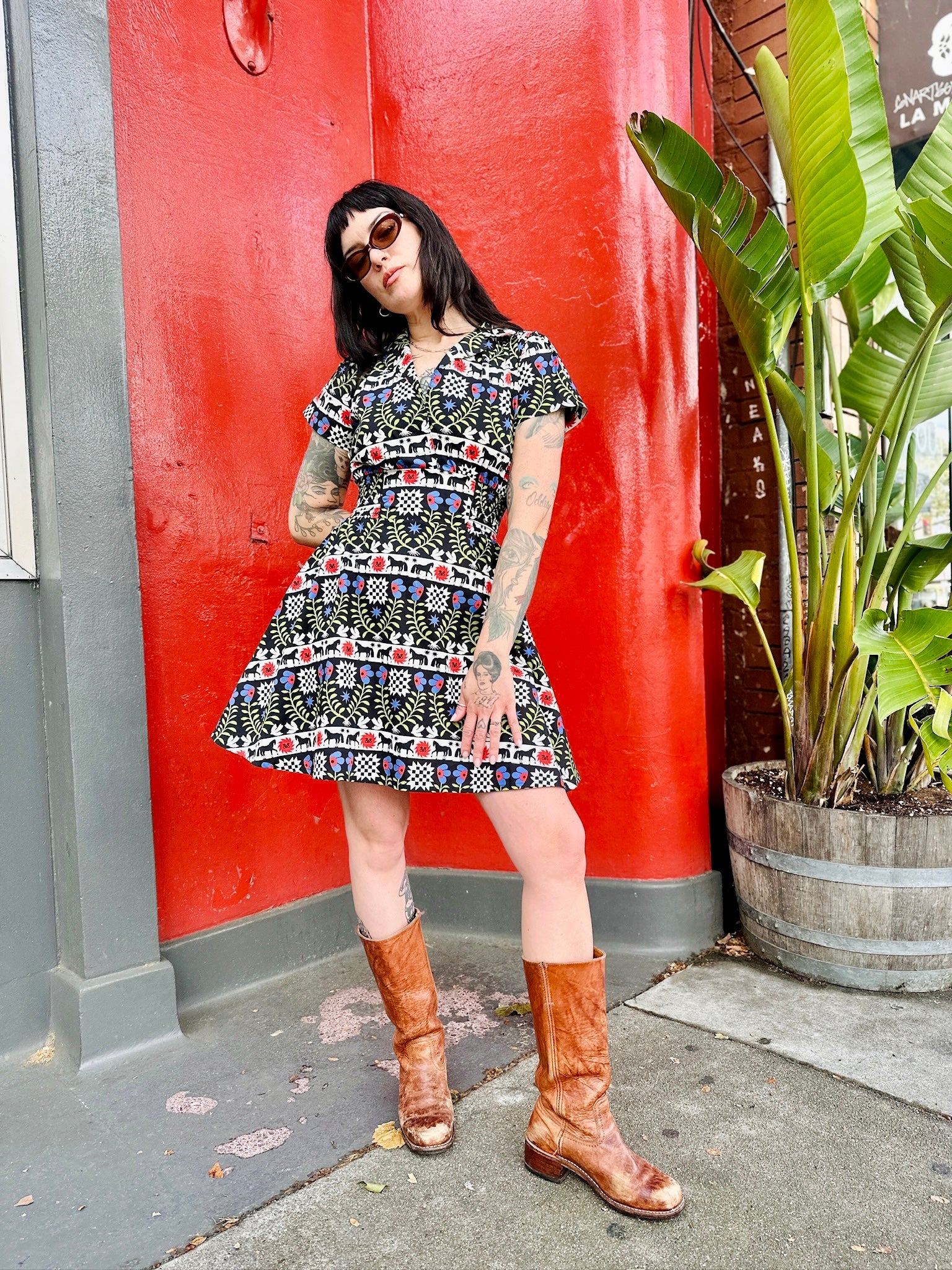 We are a woman owned, women run business. We make limited edition textiles with artists we love in cuts to make you look and feel good. All our garments are produced in California. We try to source all our materials in the USA and work with incredibly nice people.