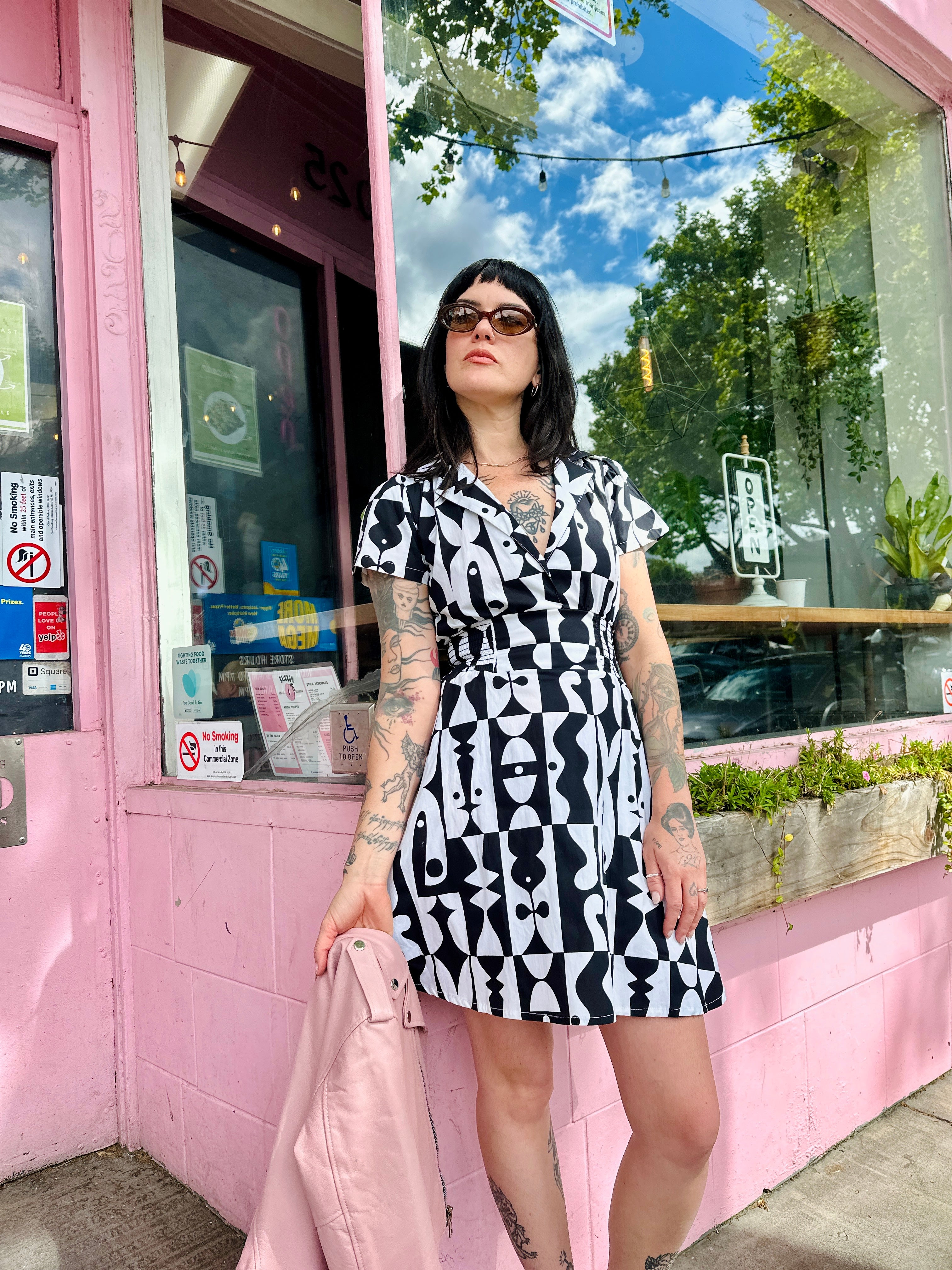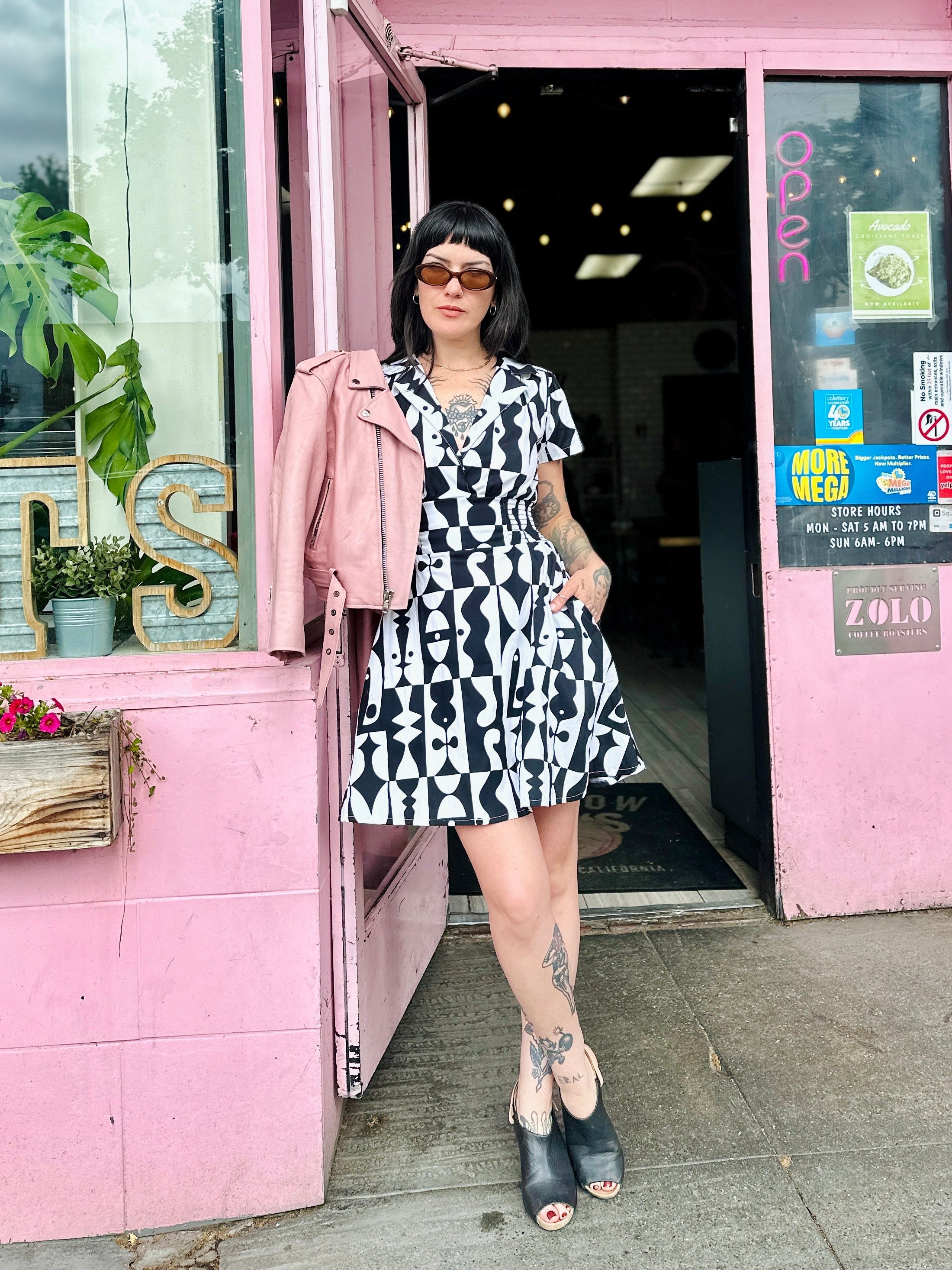 We are a woman owned, women run business. We make limited edition textiles with artists we love in cuts to make you look and feel good. All our garments are produced in California. We try to source all our materials in the USA and work with incredibly nice people.