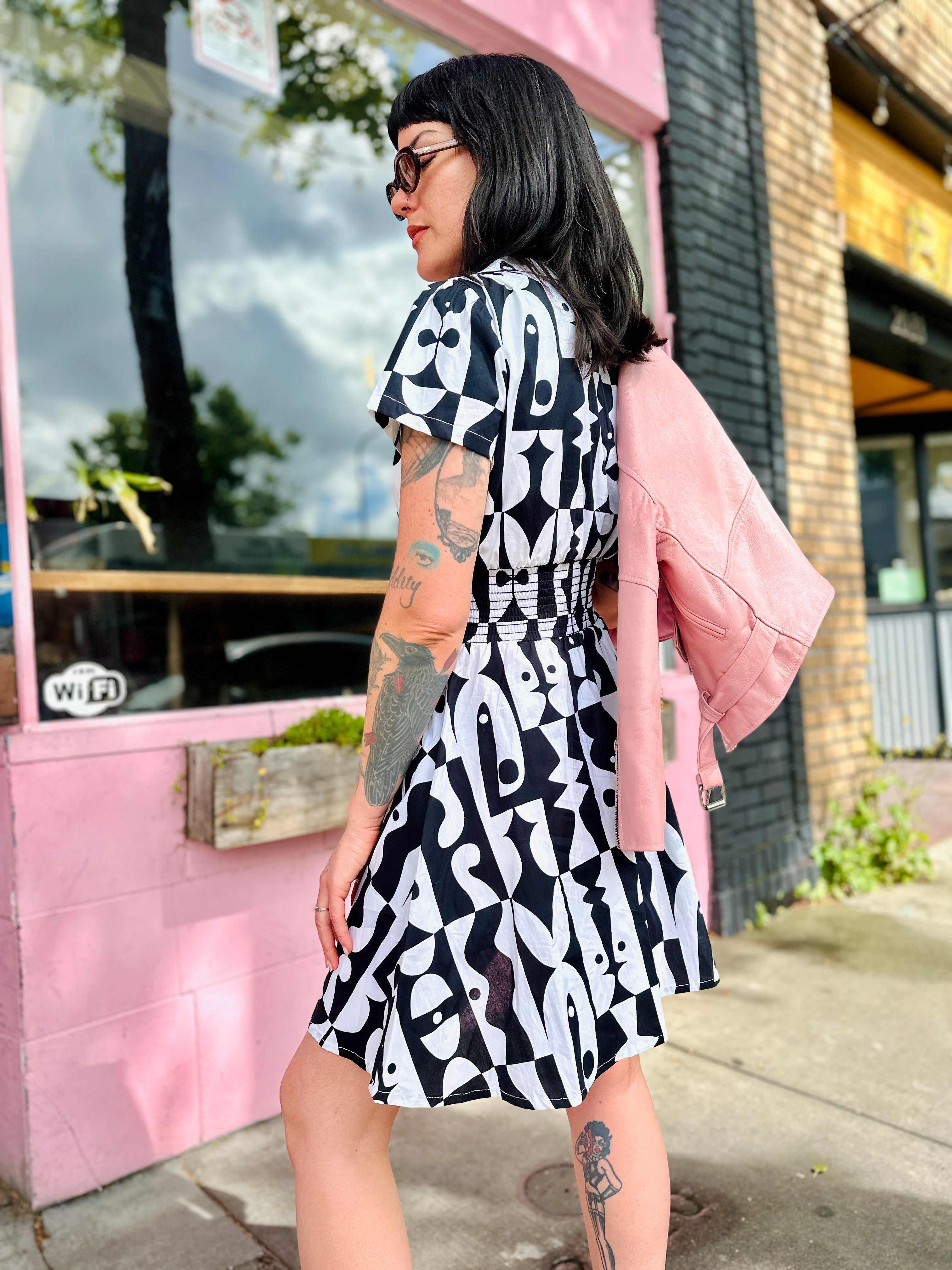 + Care instructions: To help preserve the print and fit of your garment, only wash when it truly needs it. Then, turn it inside out and hand wash with cold water and a gentle detergent. Line dry.