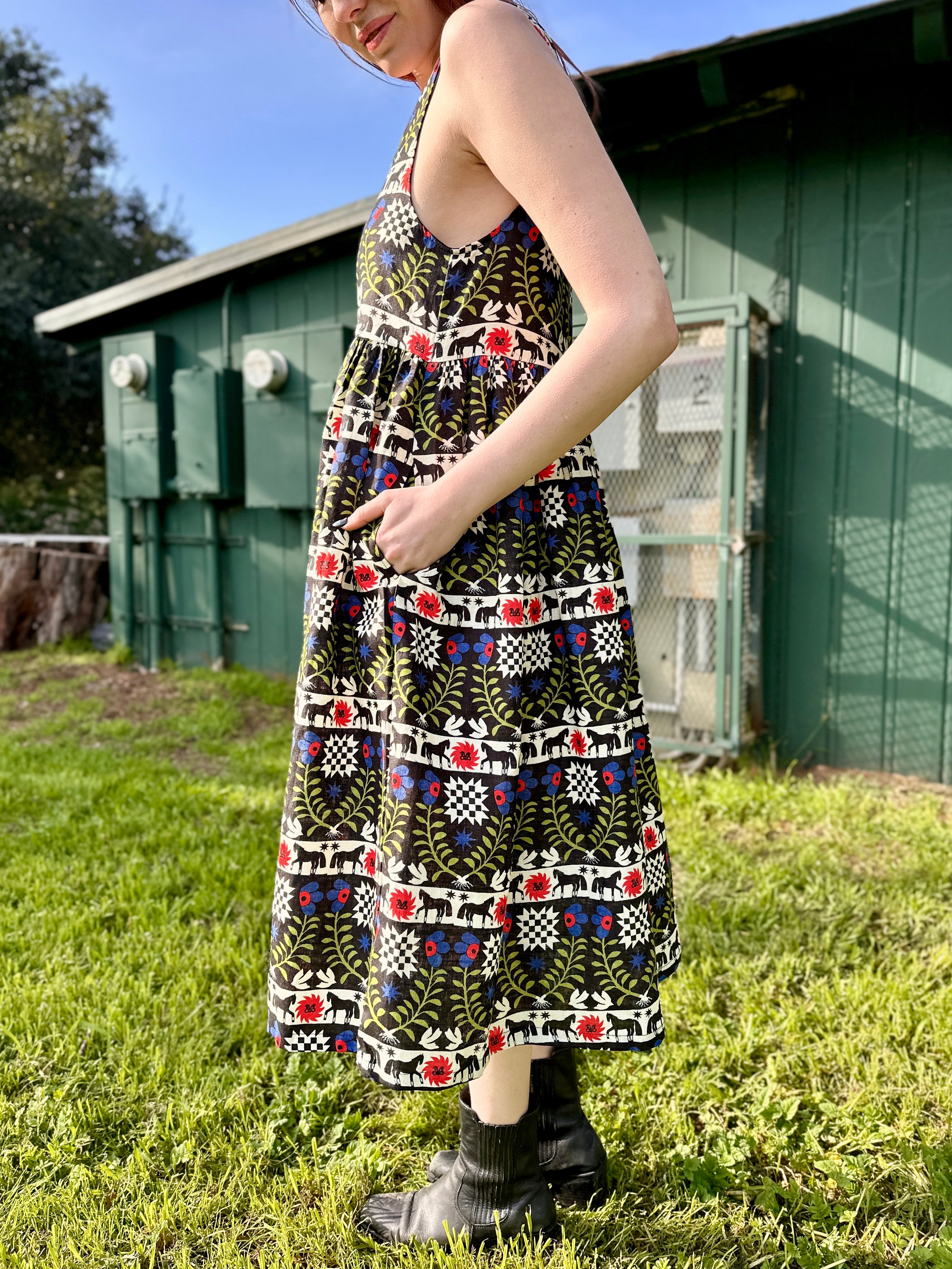 + Care Instructions: To help preserve the print and fit of your linen garment, only wash when it truly needs it. Then, turn it inside out and hand wash with cold water and a gentle detergent. Line dry (think of how chic your linen pieces will look hang drying in the sun!)