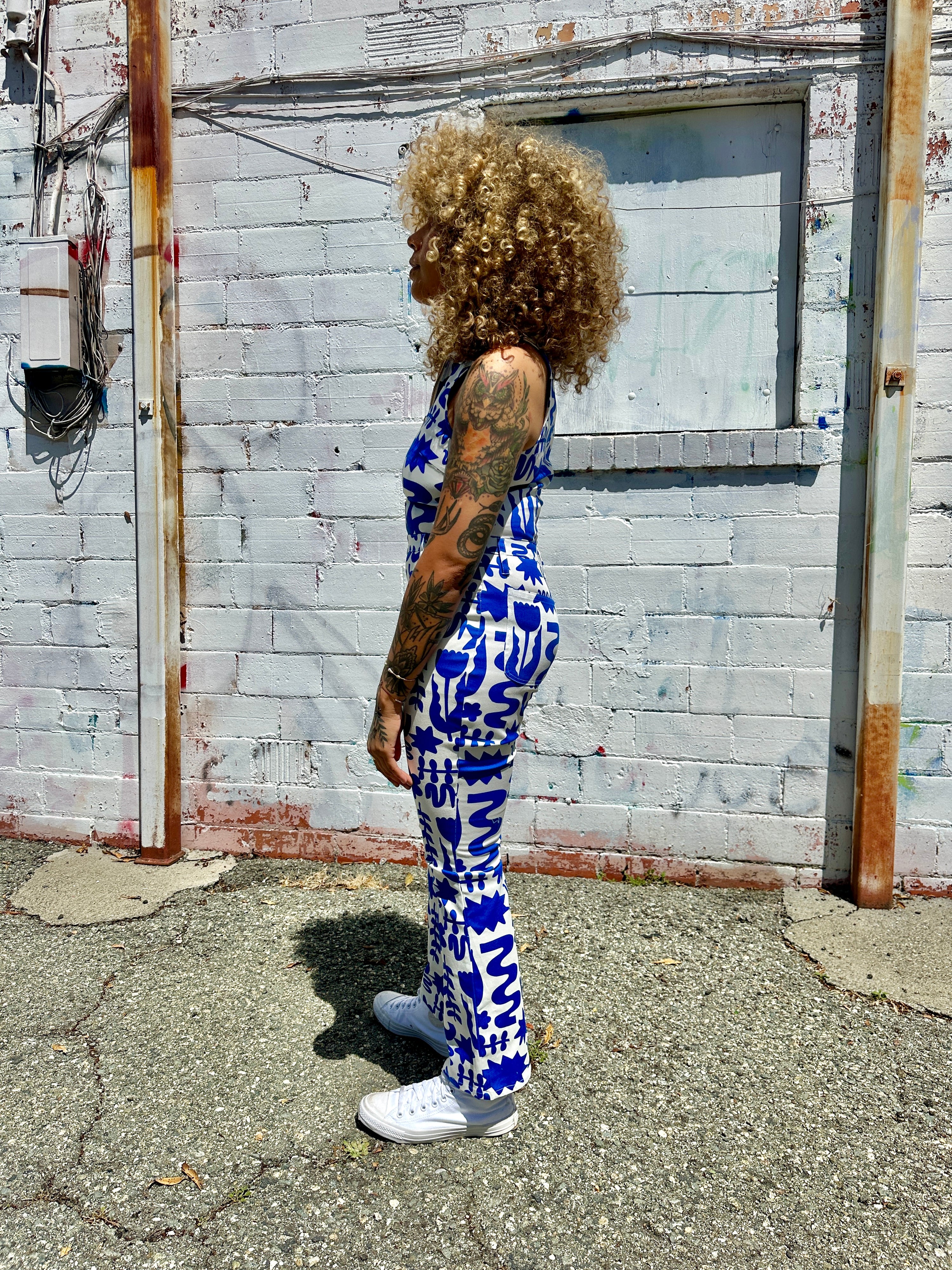 We are a woman owned, women run business. We make limited edition textiles with artists we love in cuts to make you look and feel good. All our garments are produced in California. We try to source all our materials in the USA and work with incredibly nice people.