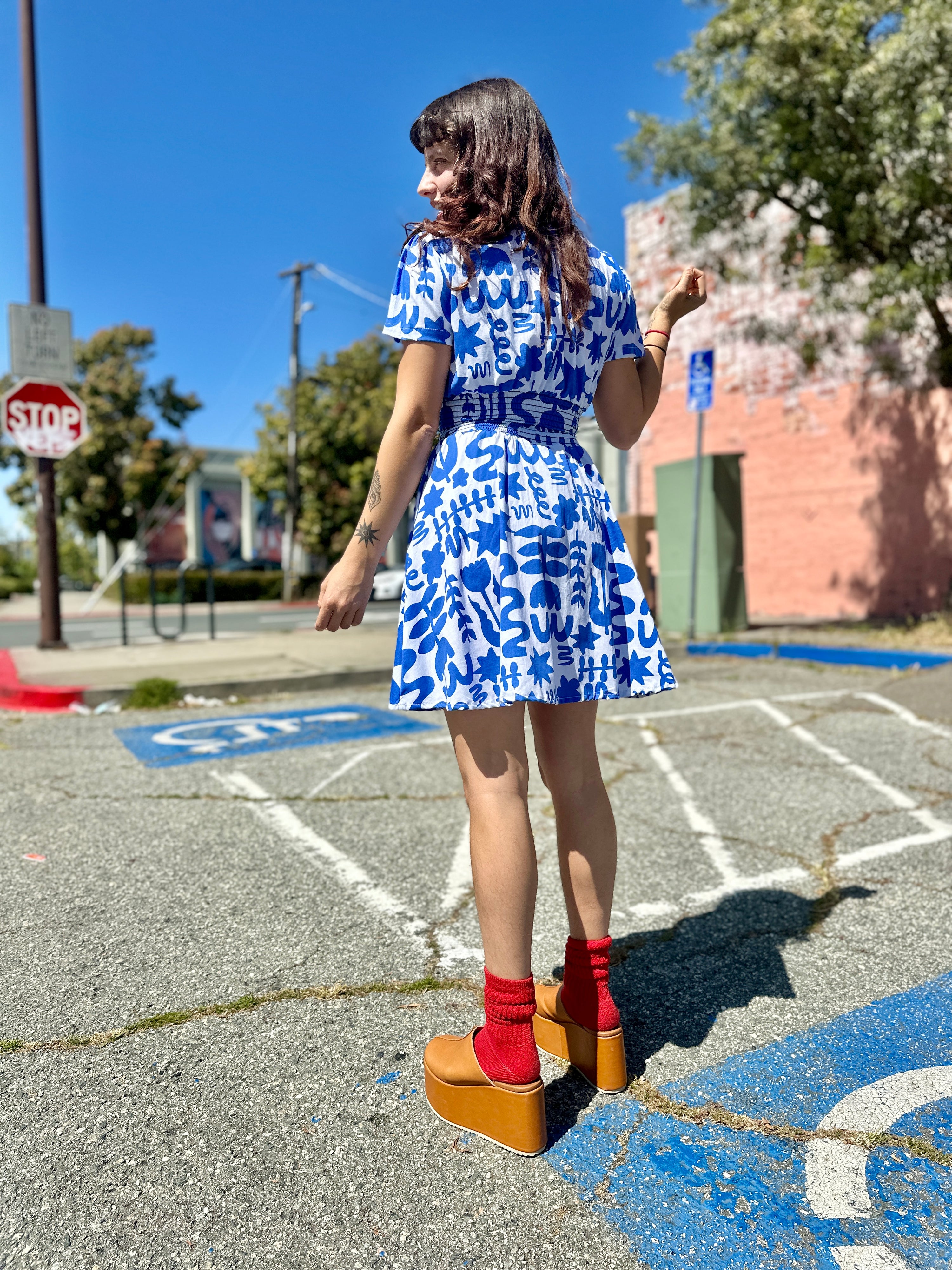We are a woman owned, women run business. We make limited edition textiles with artists we love in cuts to make you look and feel good. All our garments are produced in California. We try to source all our materials in the USA and work with incredibly nice people.