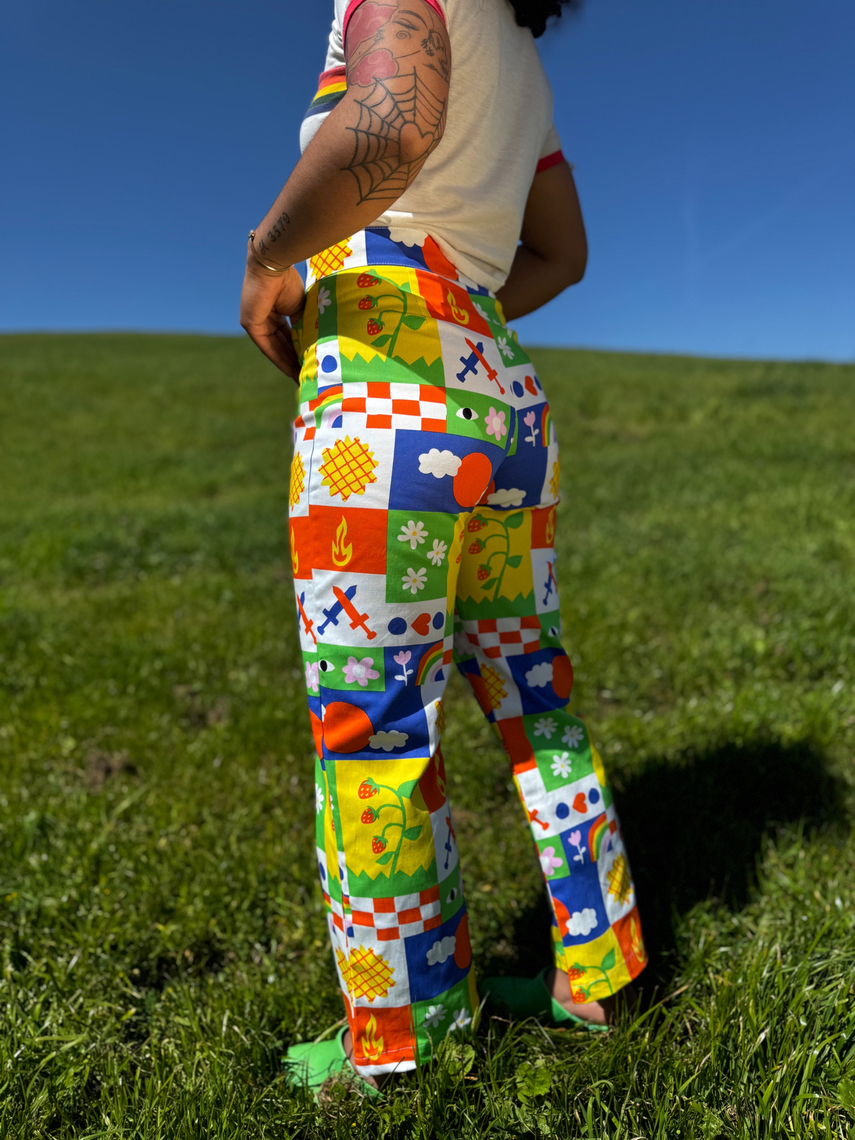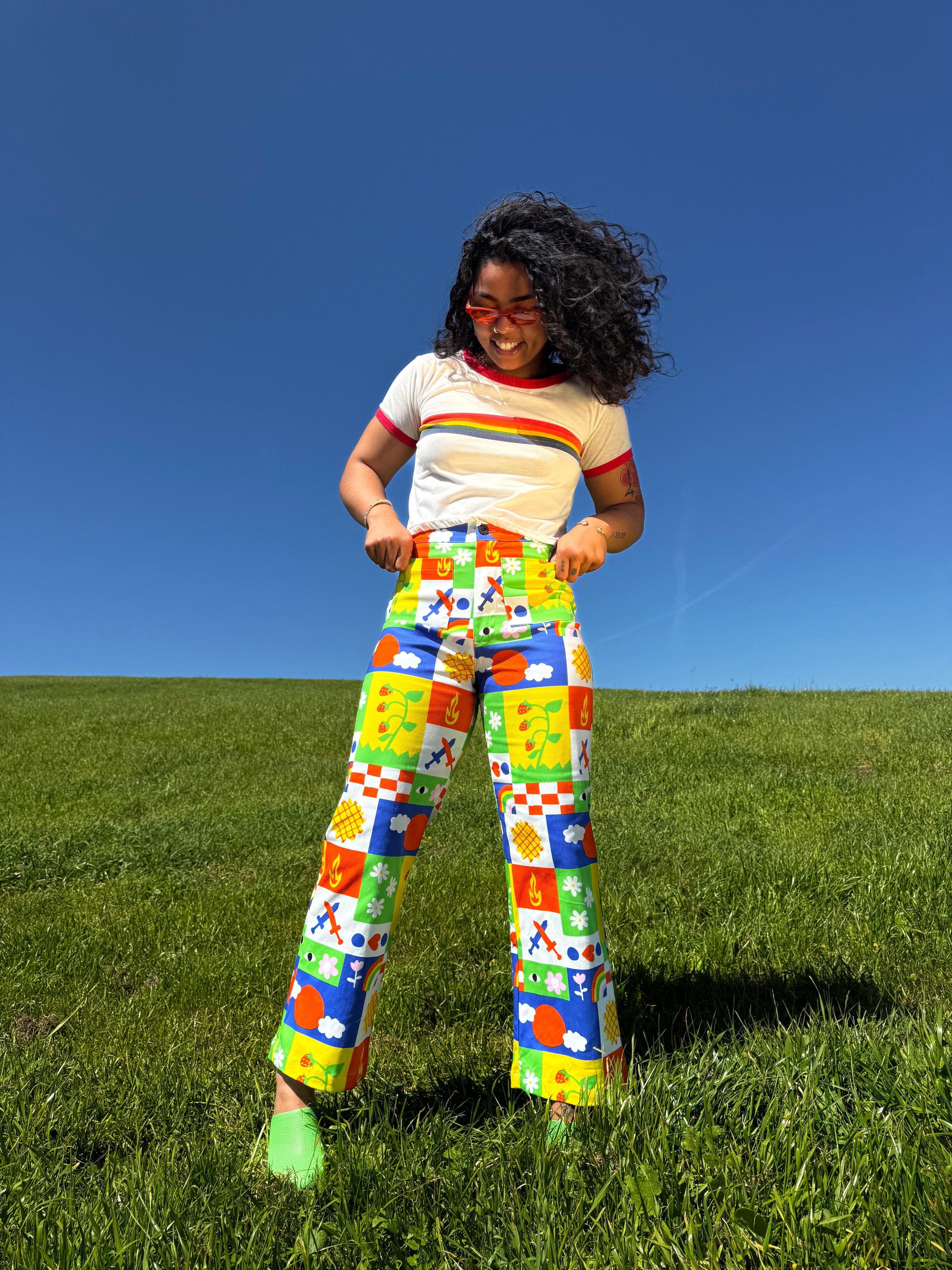 We are a woman owned, women run business. We make limited edition textiles with artists we love in cuts to make you look and feel good. All our garments are produced in California. We try to source all our materials in the USA and work with incredibly nice people.