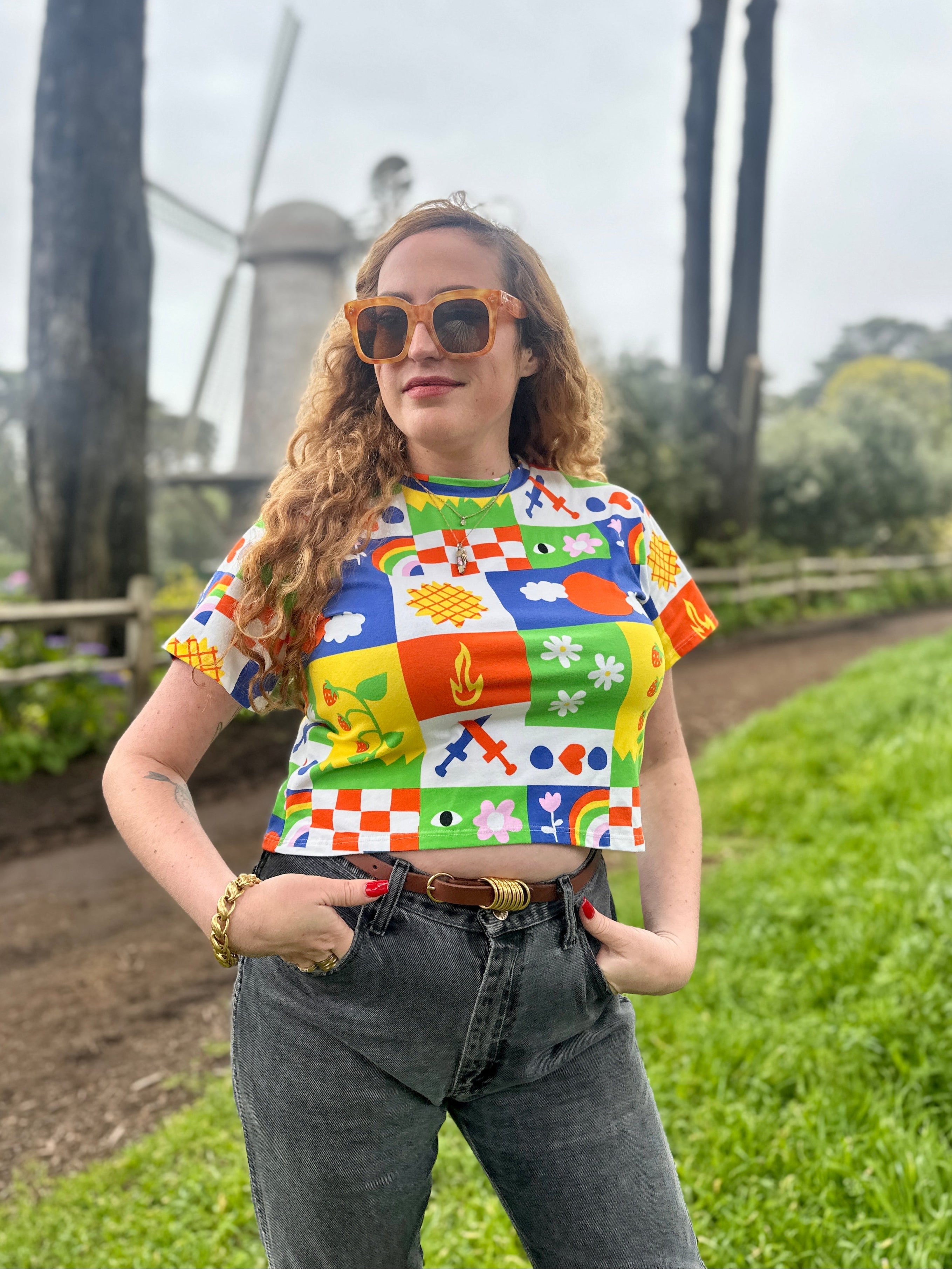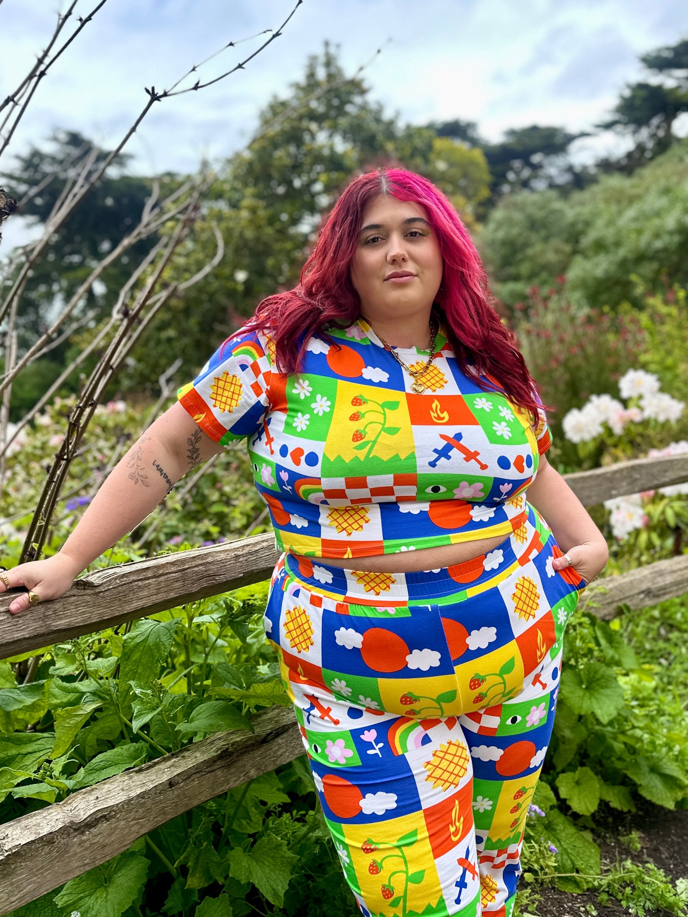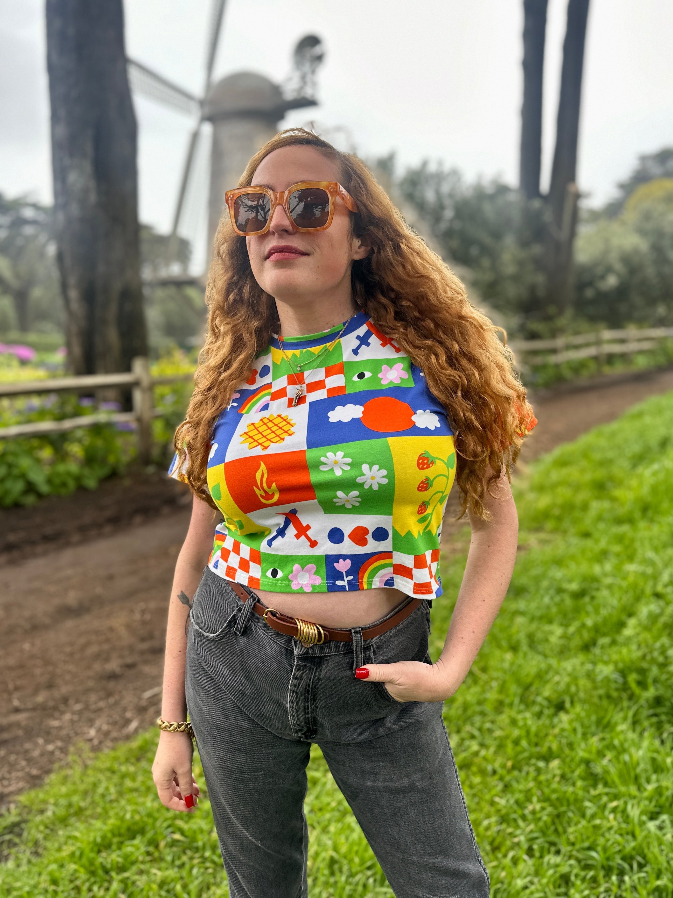 We measure each of our garments by hand, unstretched and laying flat. The crop top fits true to size. Additionally, our cotton jersey has a lot of give so each size can stretch up to eight additional inches on the body. Please consult the size guide below to find the best fit for you!