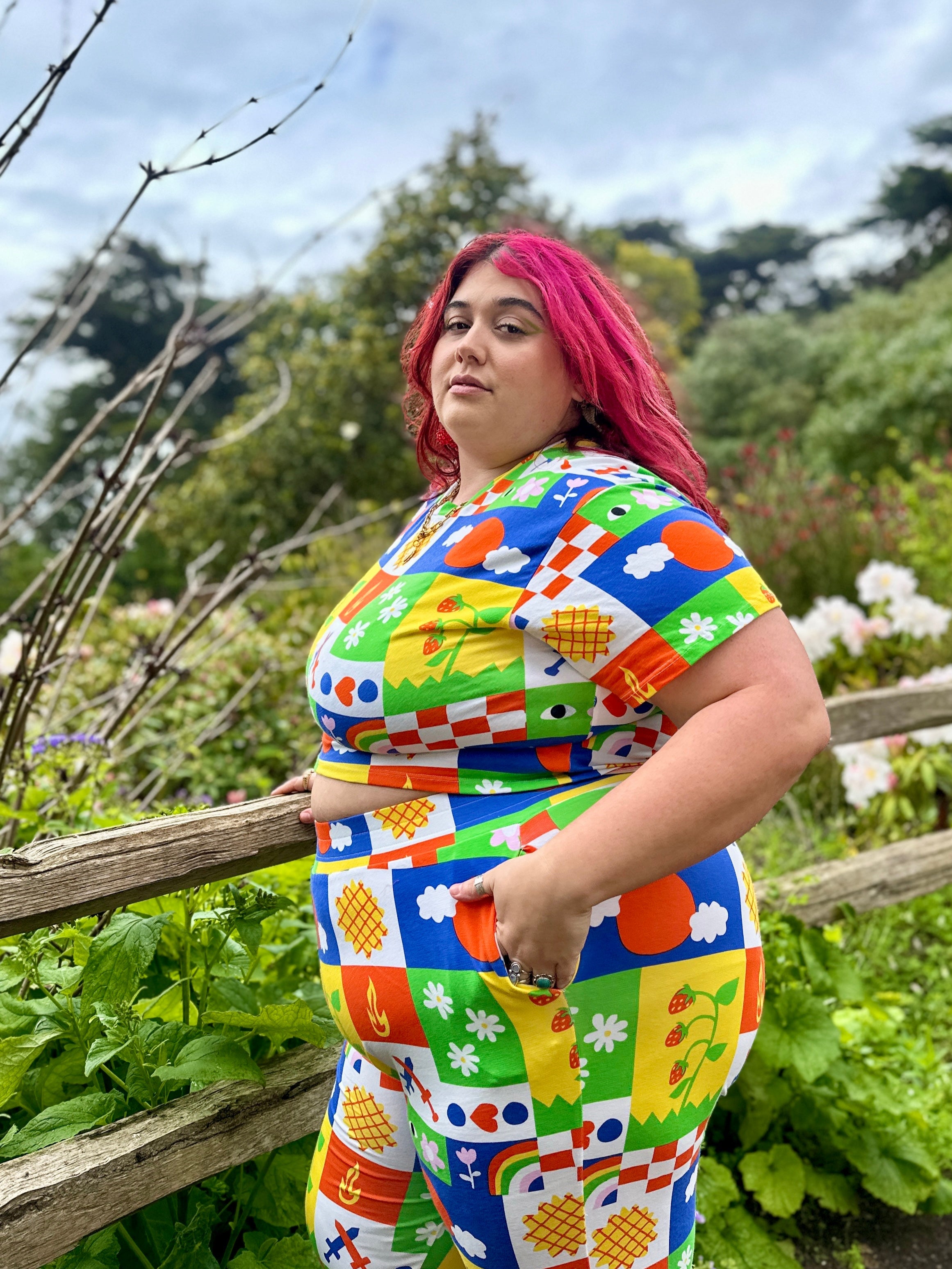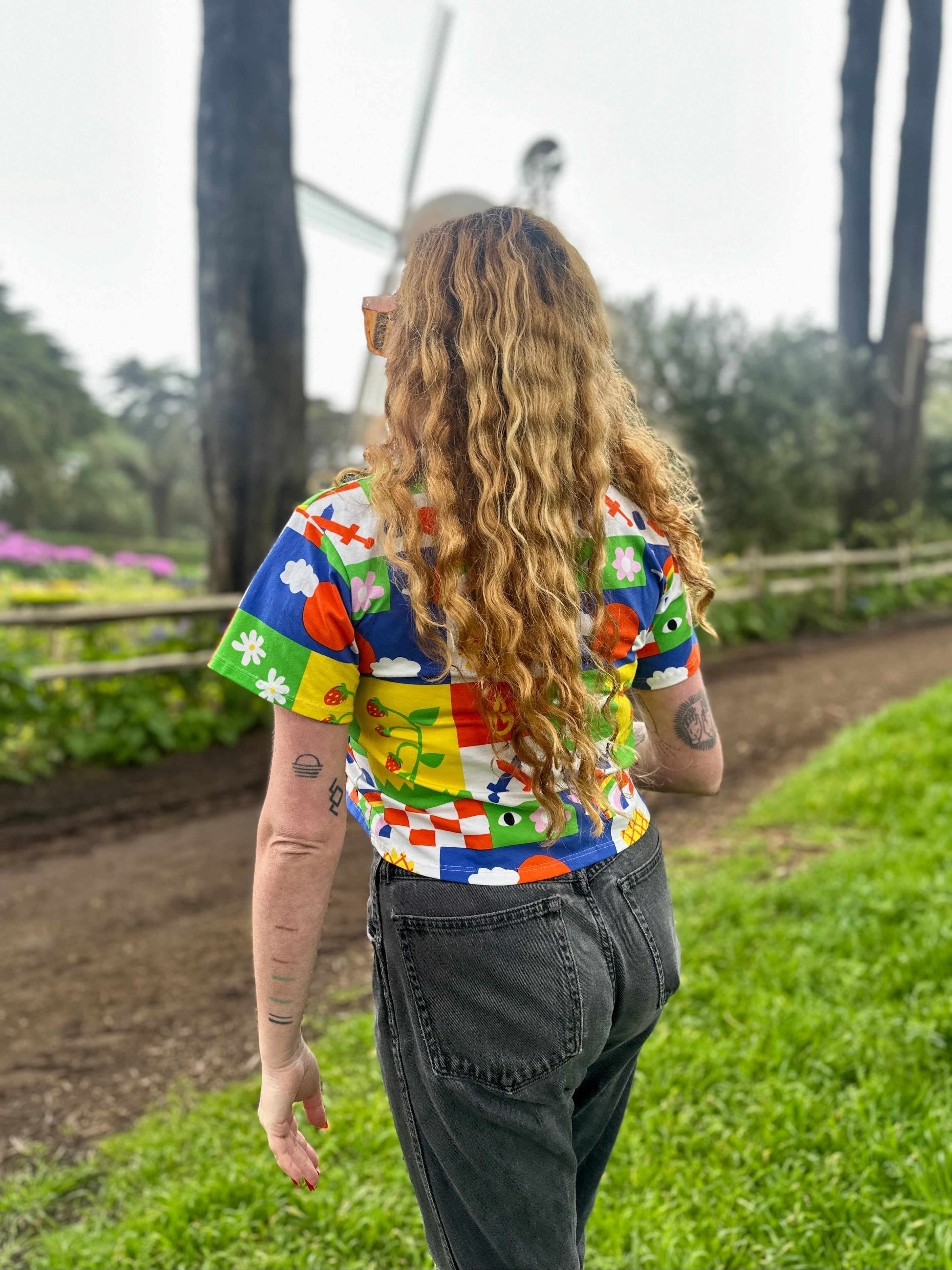 We are a woman owned, women run business. We make limited edition textiles with artists we love in cuts to make you look and feel good. All our garments are produced in California. We try to source all our materials in the USA and work with incredibly nice people.