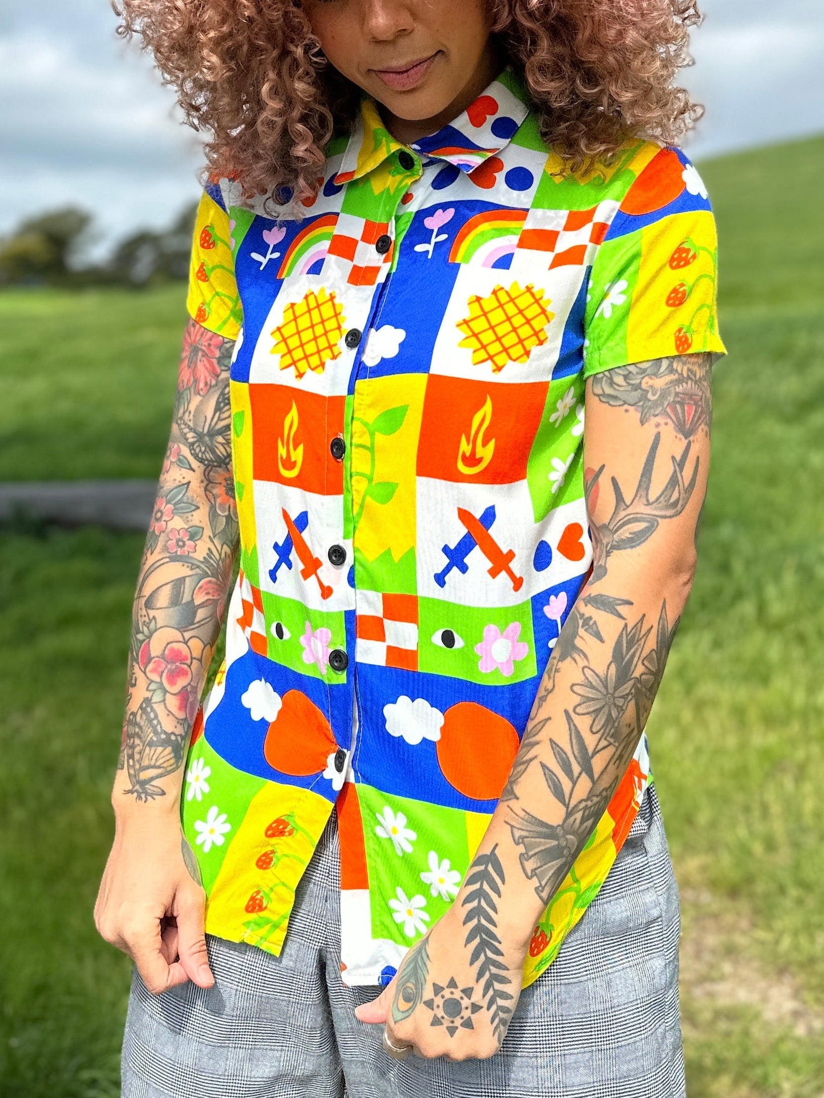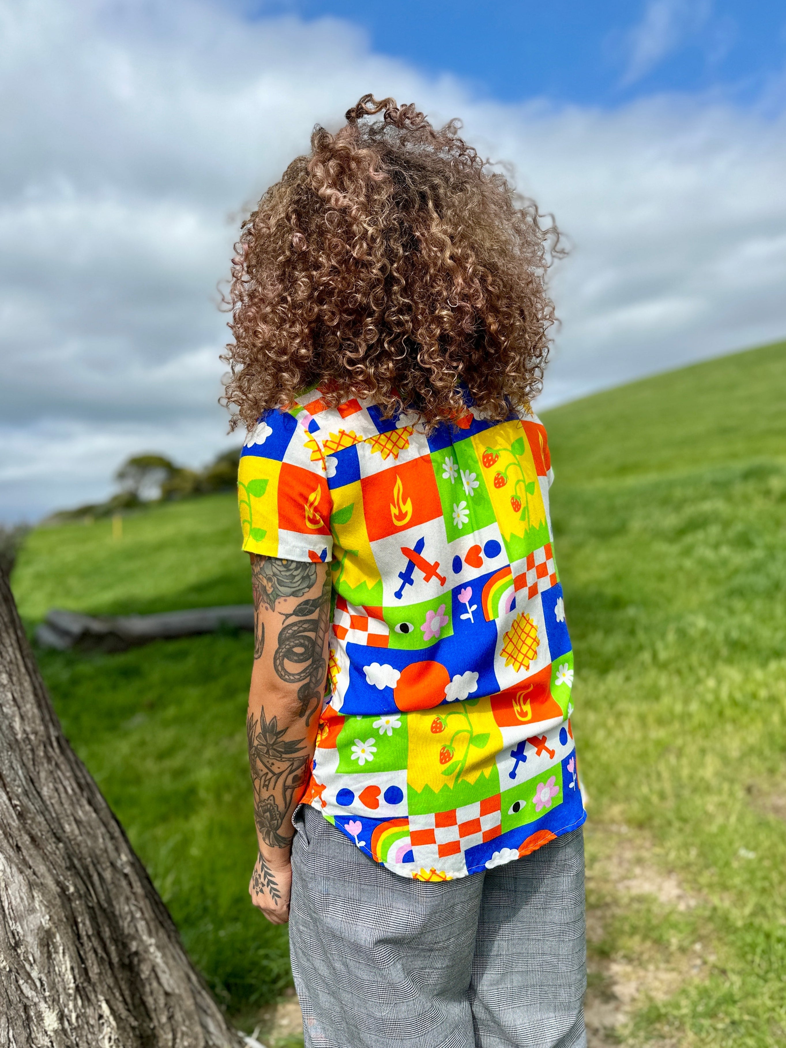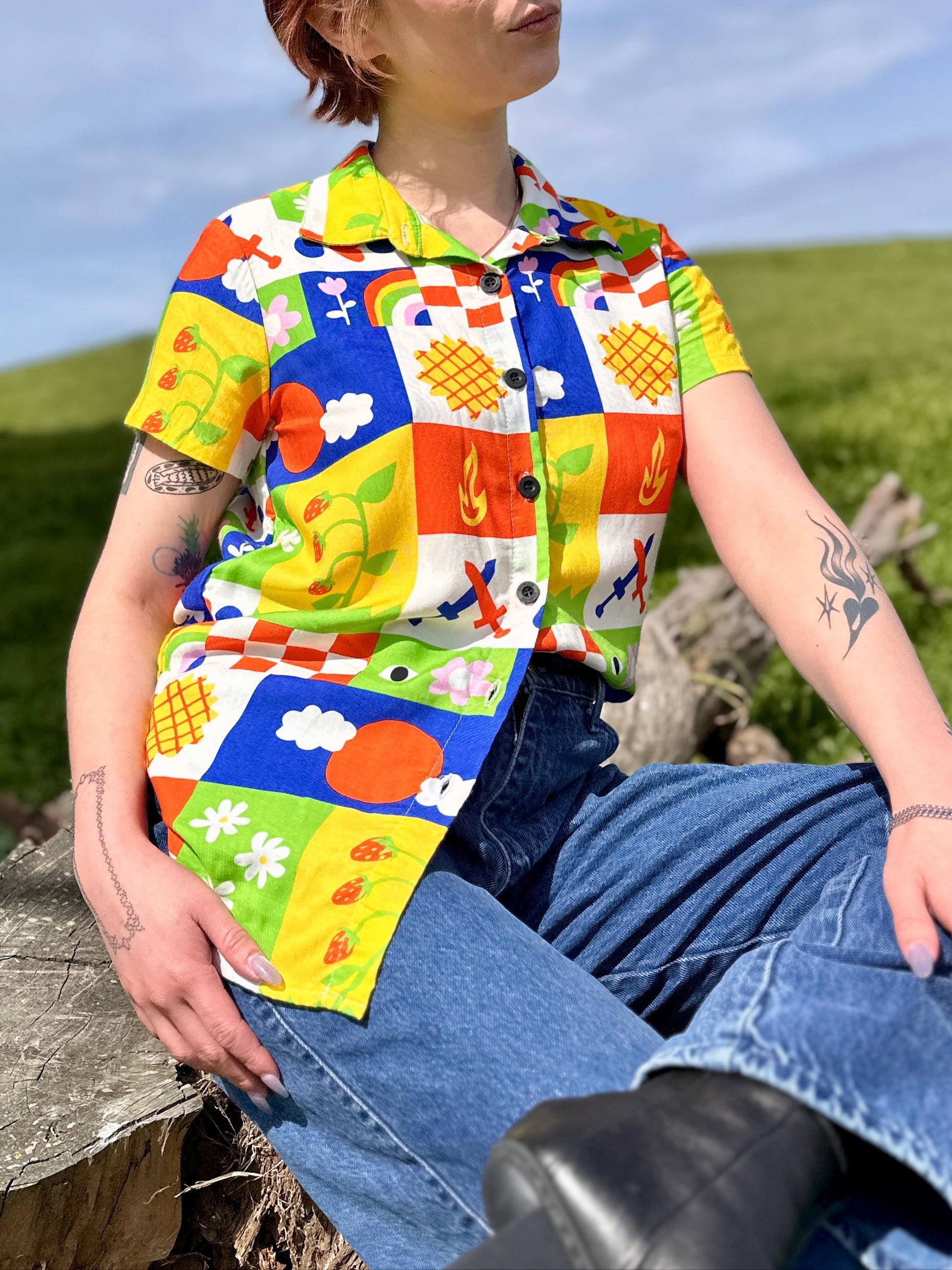 We are a woman owned, women run business. We make limited edition textiles with artists we love in cuts to make you look and feel good. All our garments are produced in California. We try to source all our materials in the USA and work with incredibly nice people.