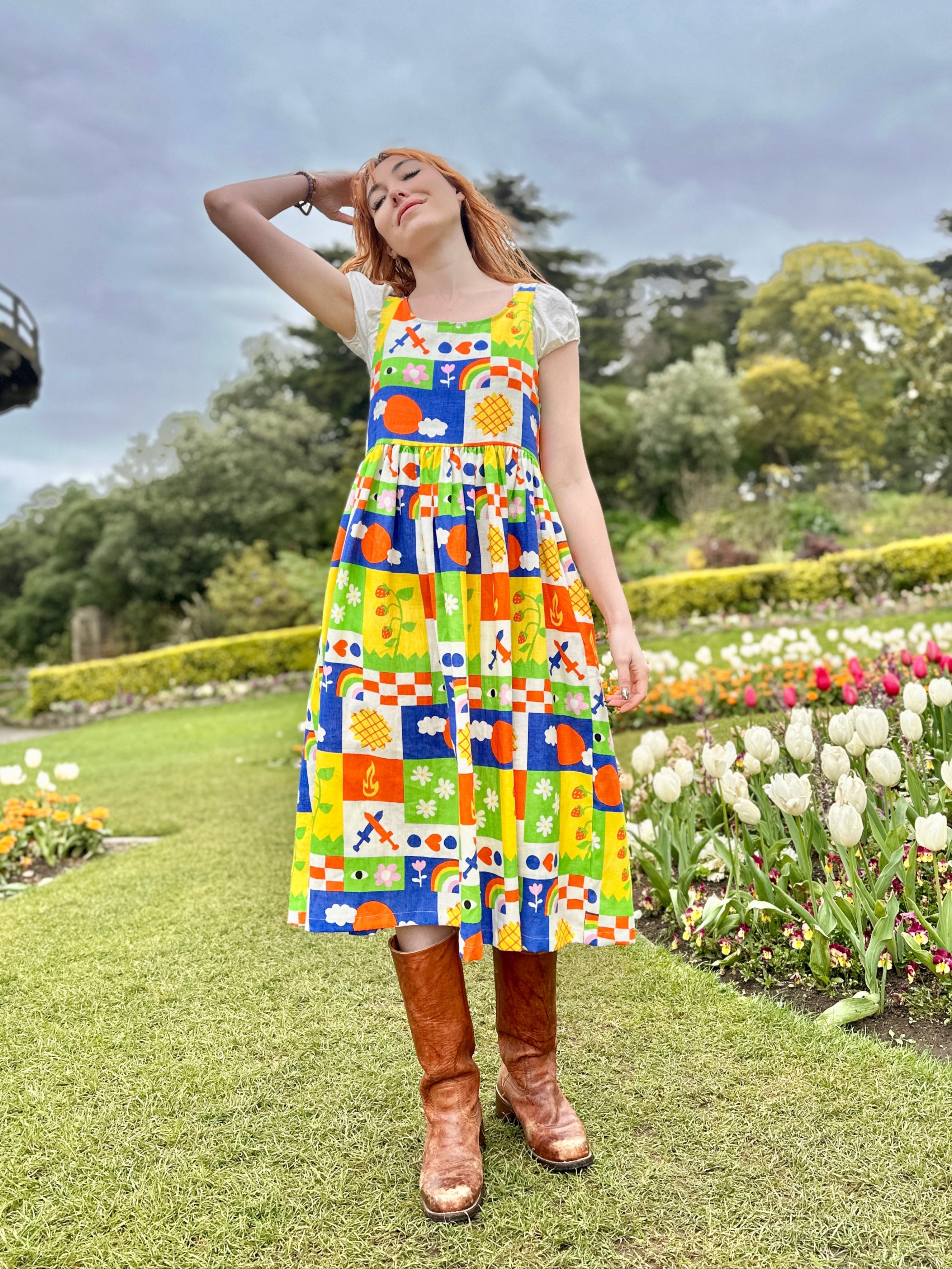 We are a woman owned, women run business. We make limited edition textiles with artists we love in cuts to make you look and feel good. All our garments are produced in California. We try to source all our materials in the USA and work with incredibly nice people.