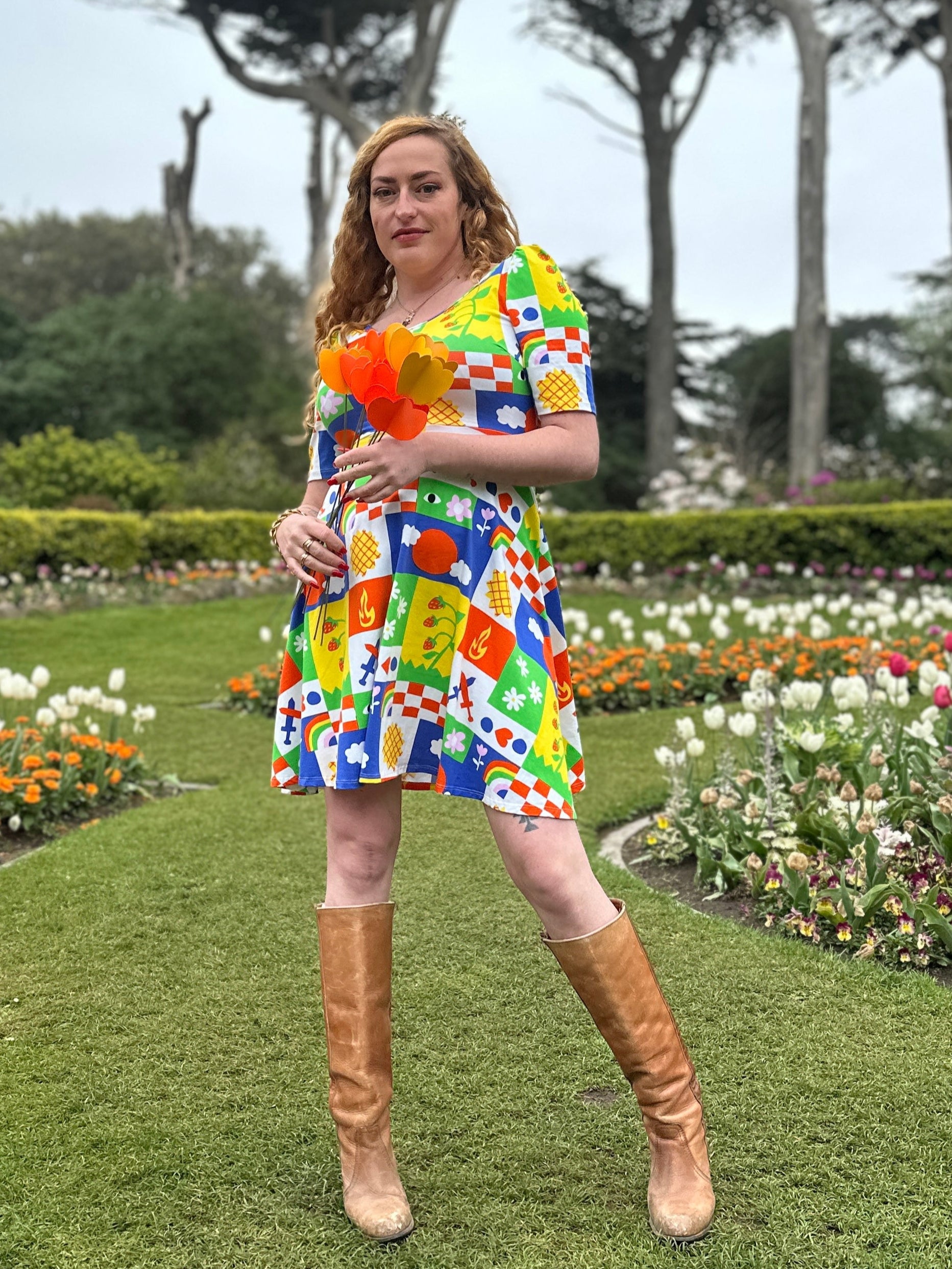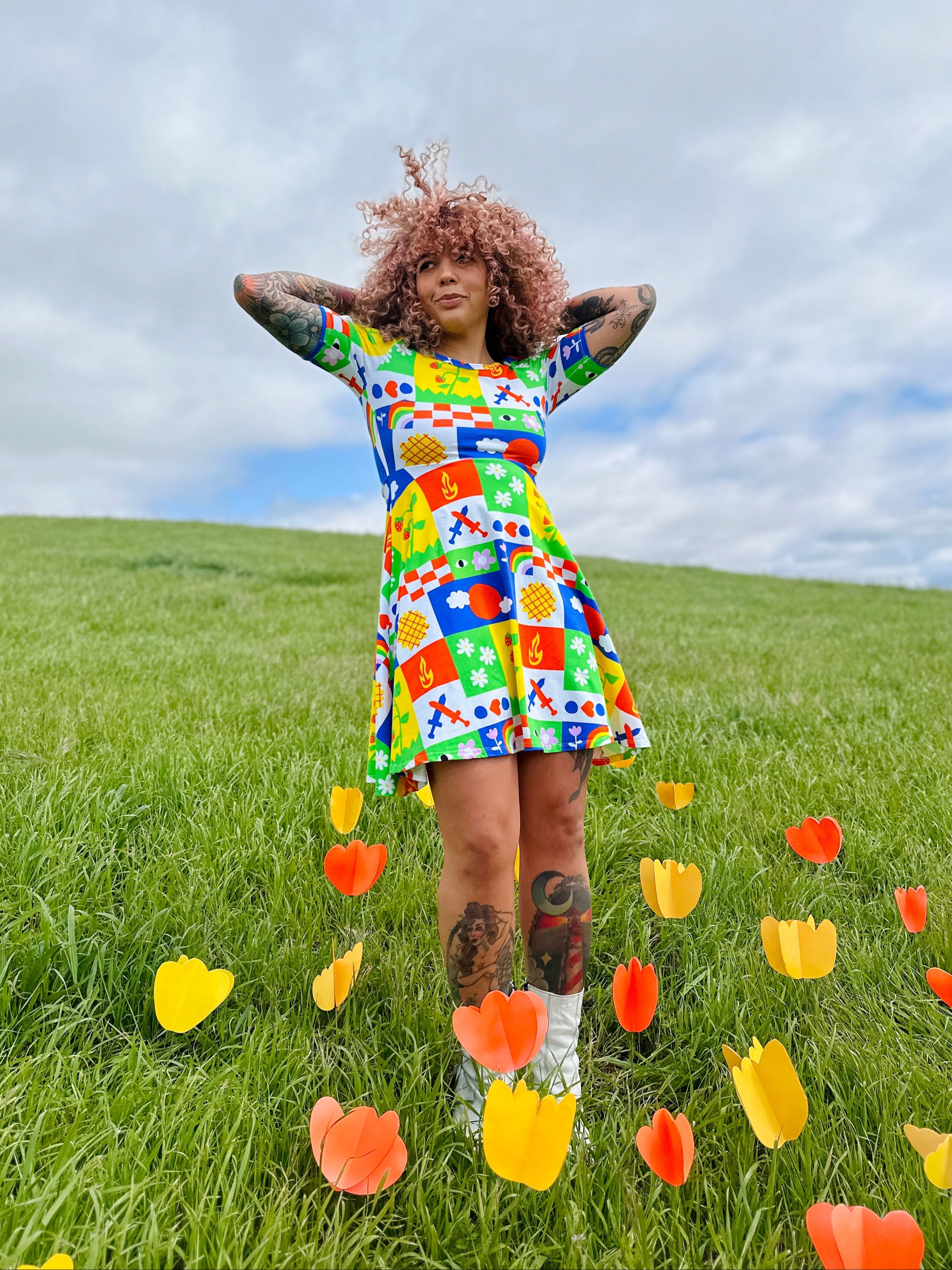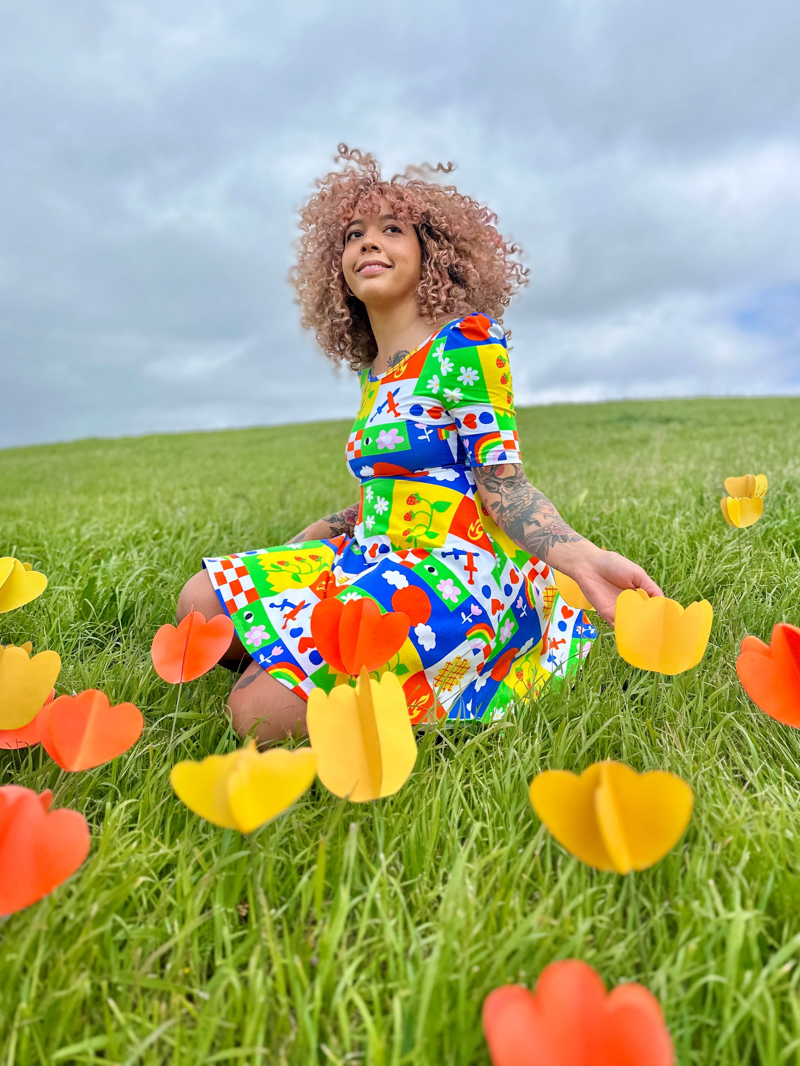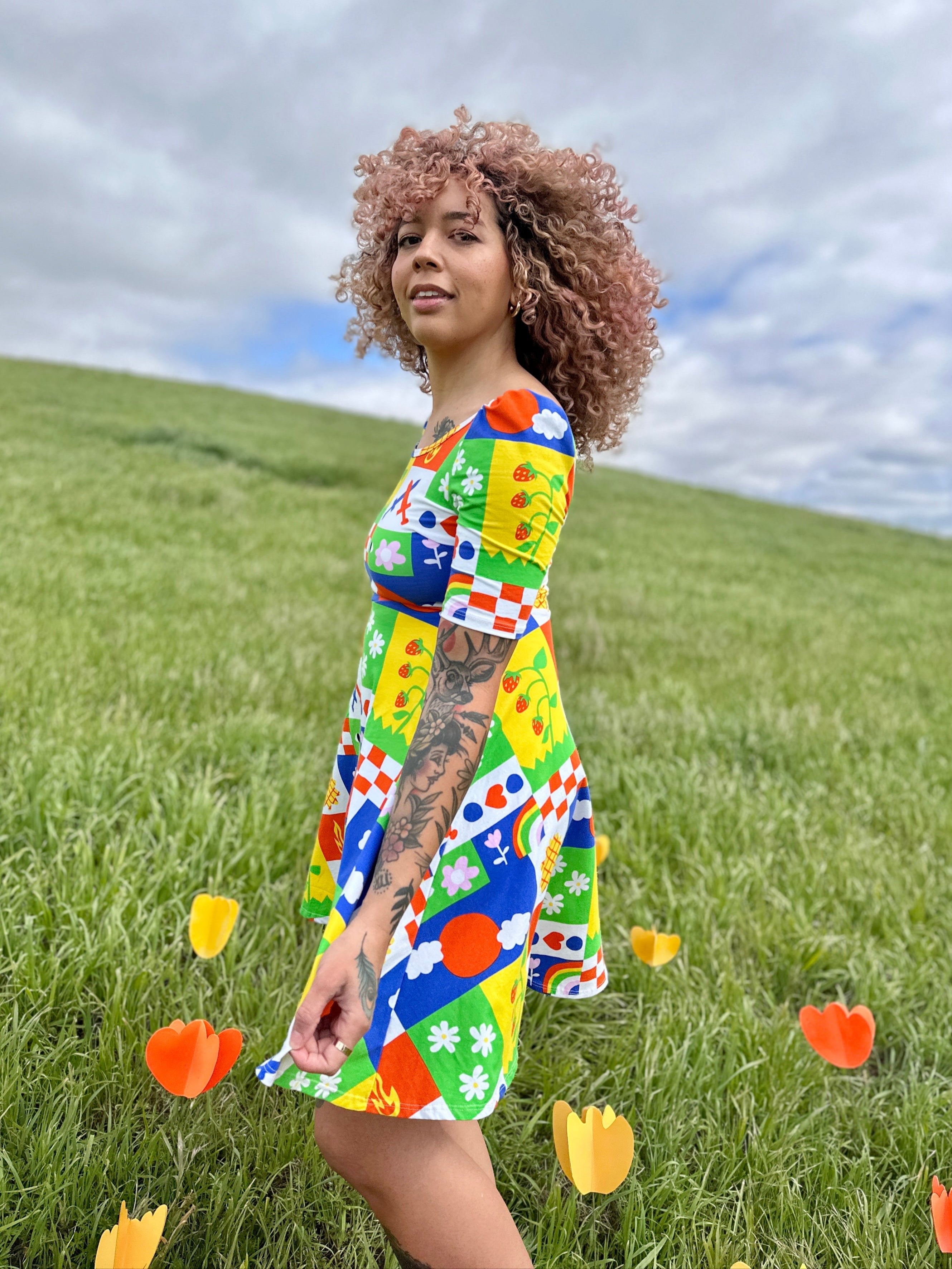 We are a woman owned, women run business. We make limited edition textiles with artists we love in cuts to make you look and feel good. All our garments are produced in California. We try to source all our materials in the USA and work with incredibly nice people.