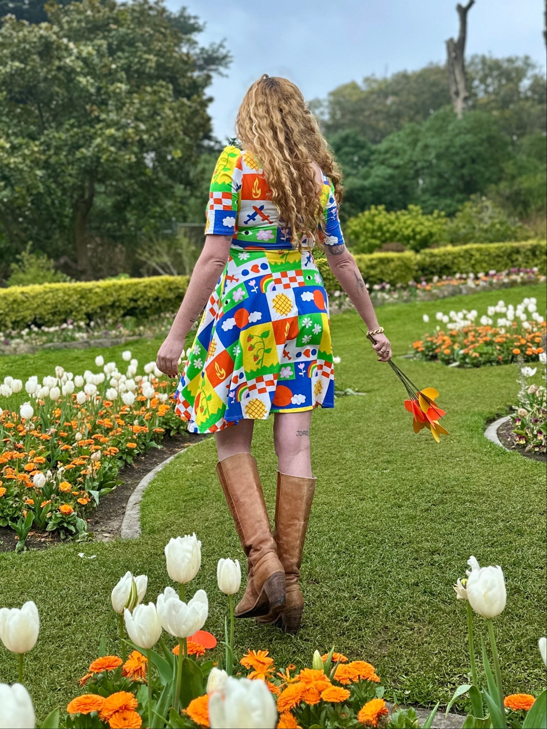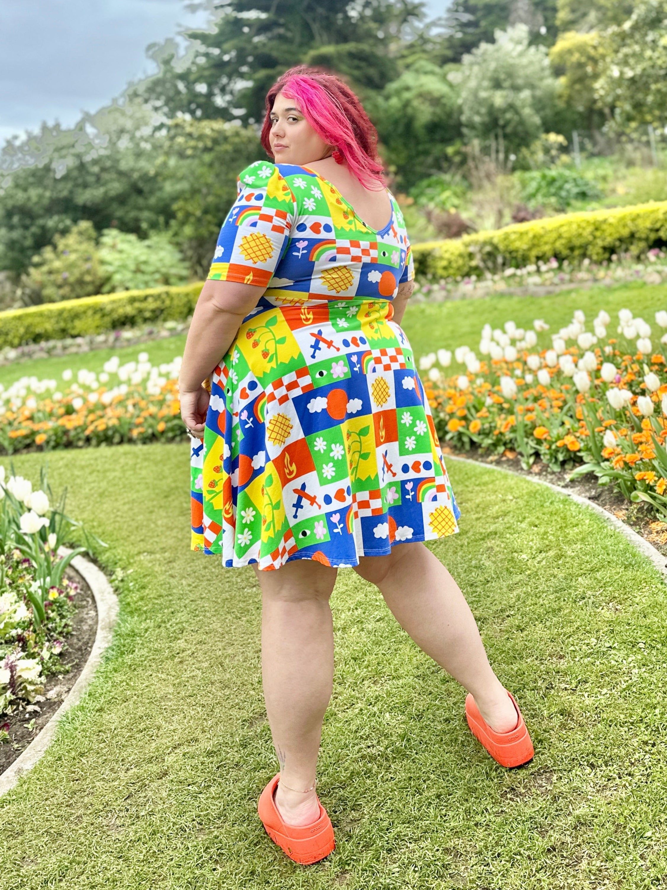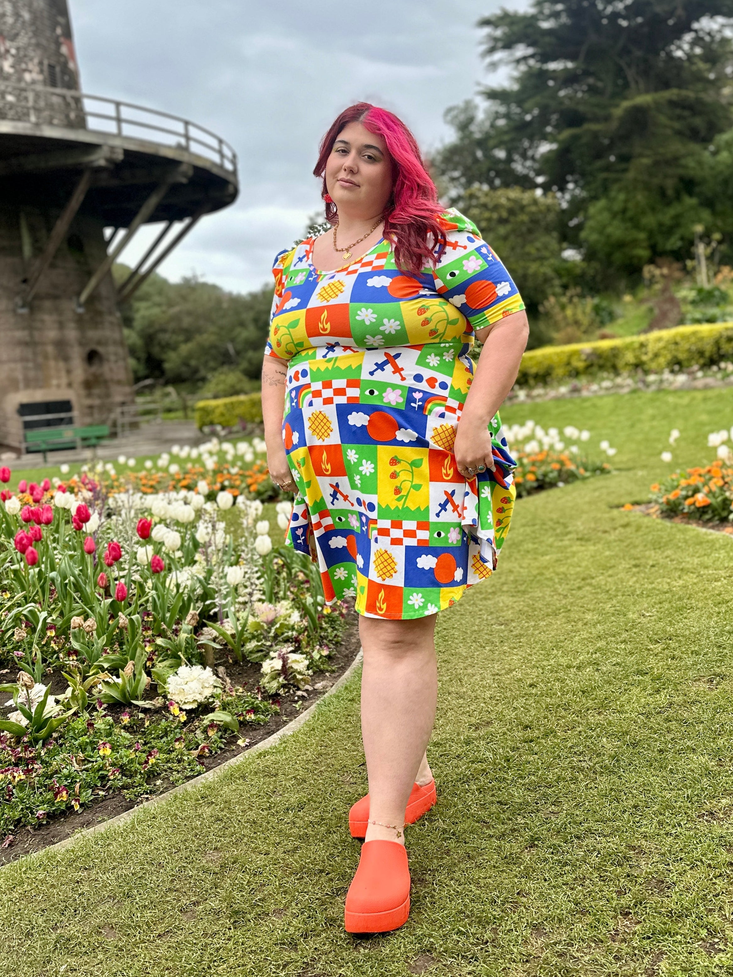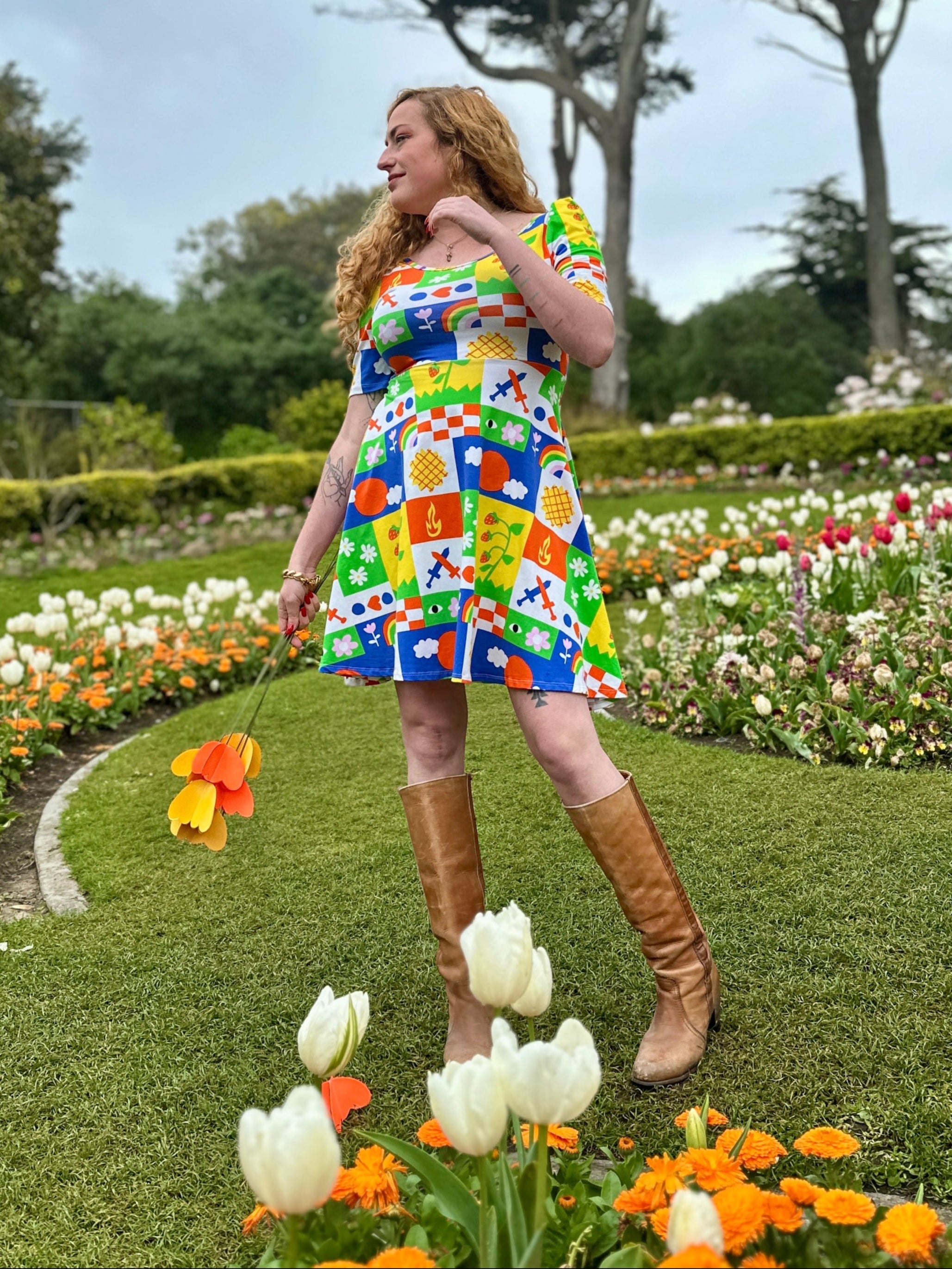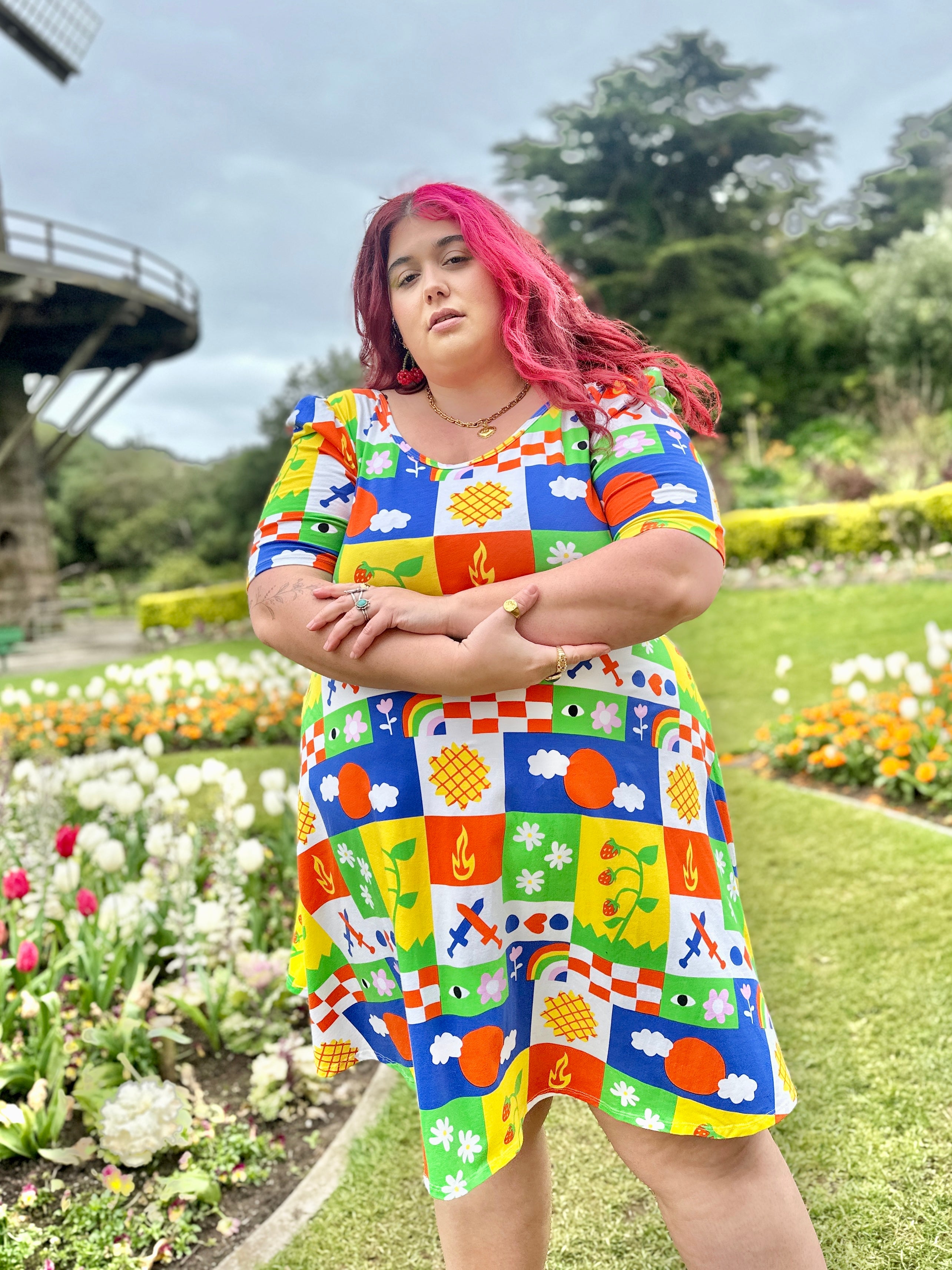 We are a woman owned, women run business. We make limited edition textiles with artists we love in cuts to make you look and feel good. All our garments are produced in California. We try to source all our materials in the USA and work with incredibly nice people.