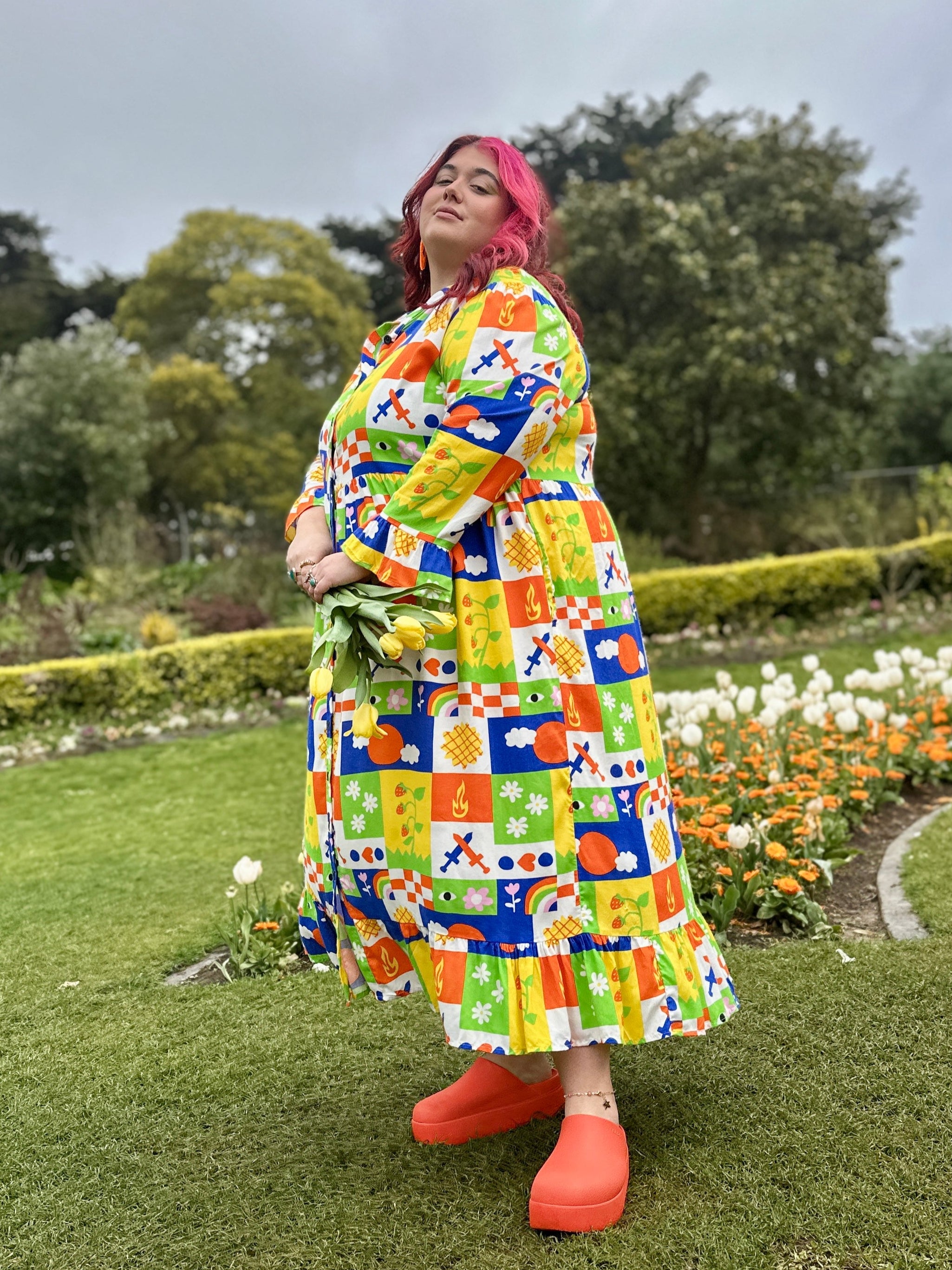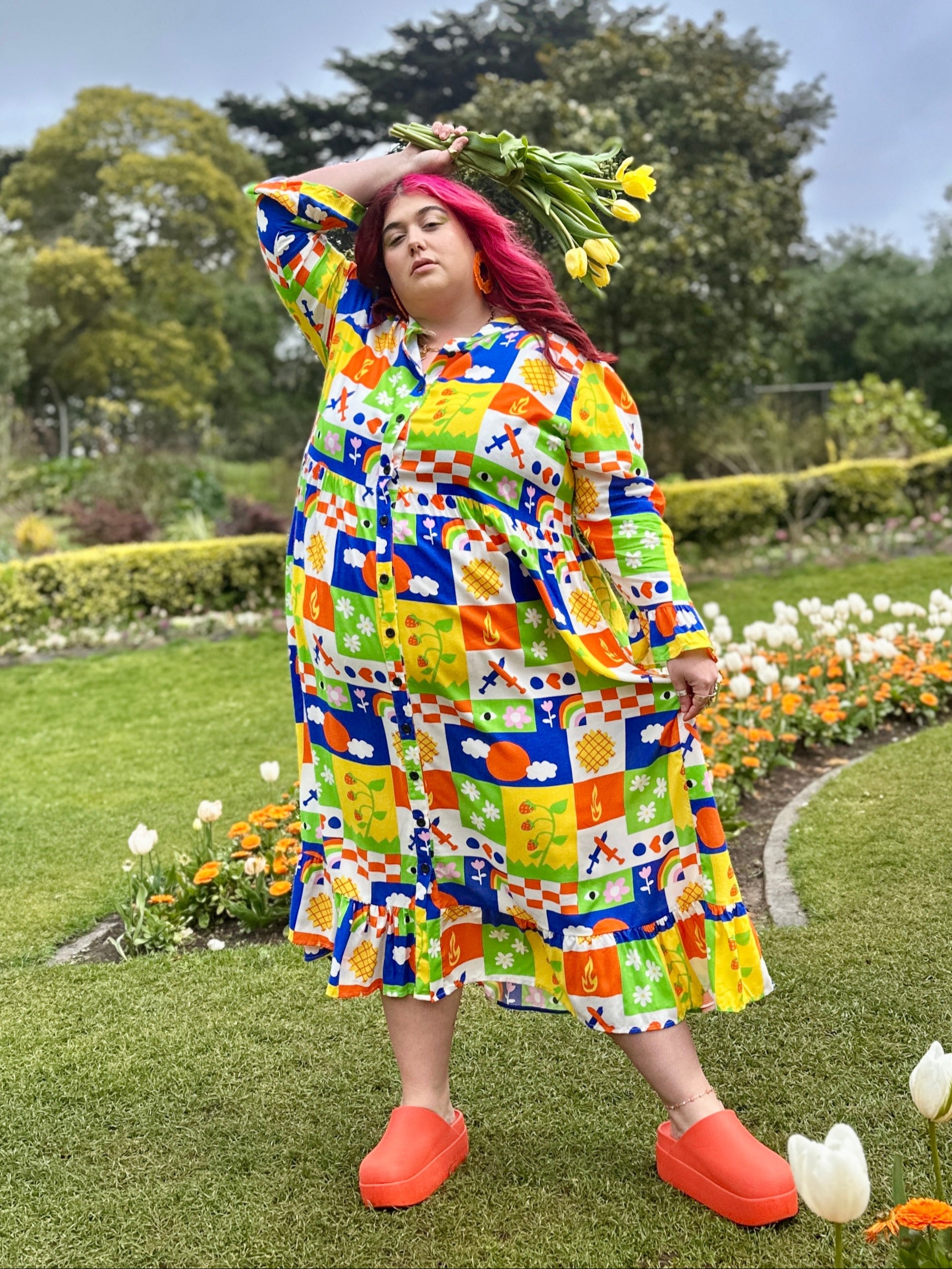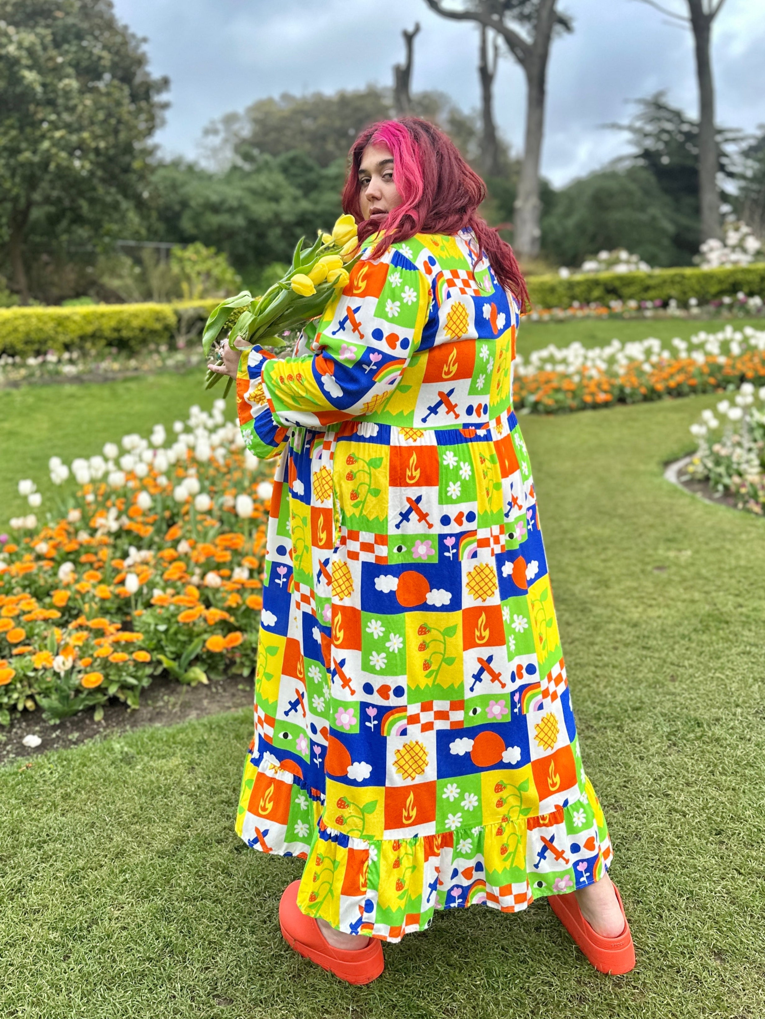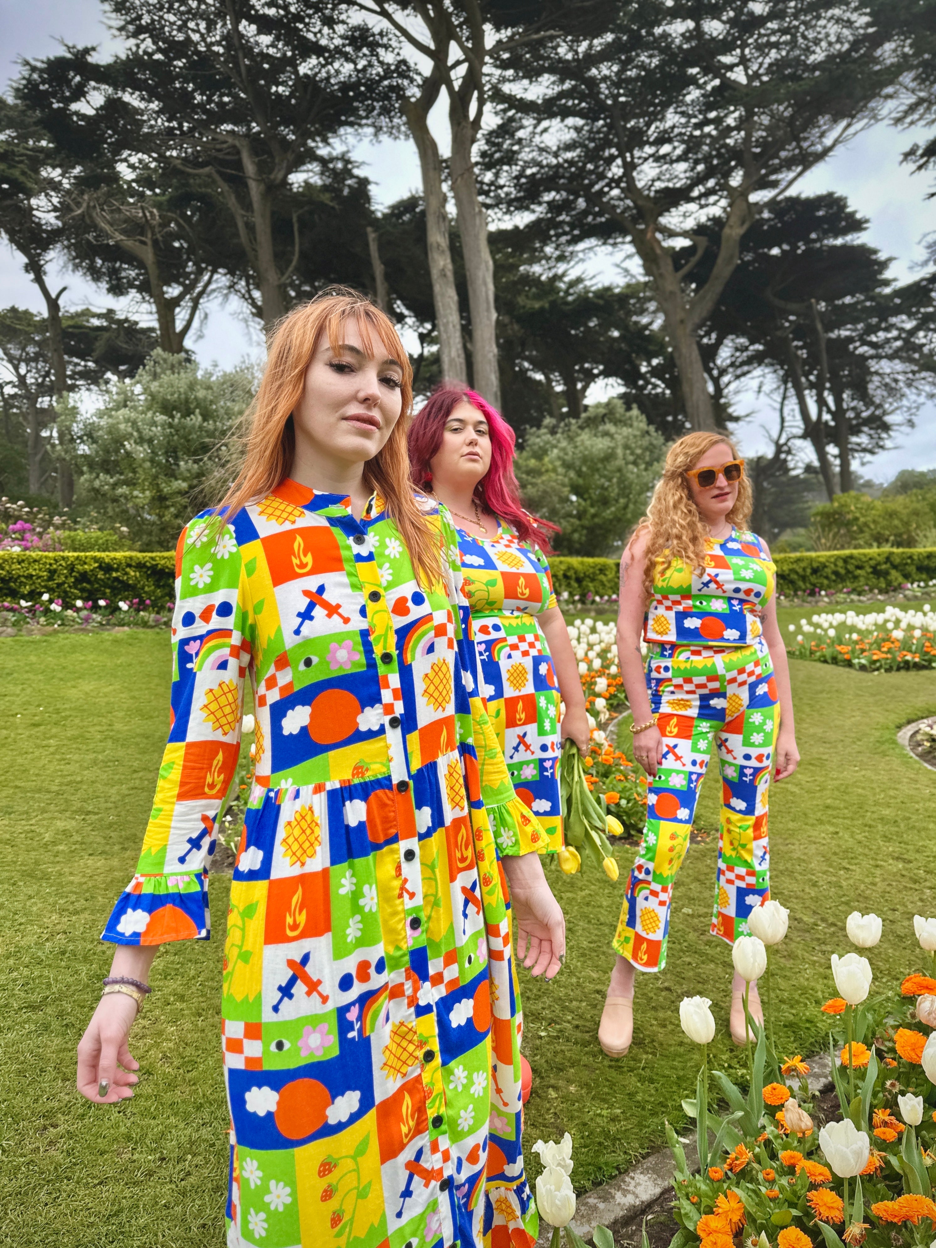 We are a woman owned, women run business. We make limited edition textiles with artists we love in cuts to make you look and feel good. All our garments are produced in California. We try to source all our materials in the USA and work with incredibly nice people.