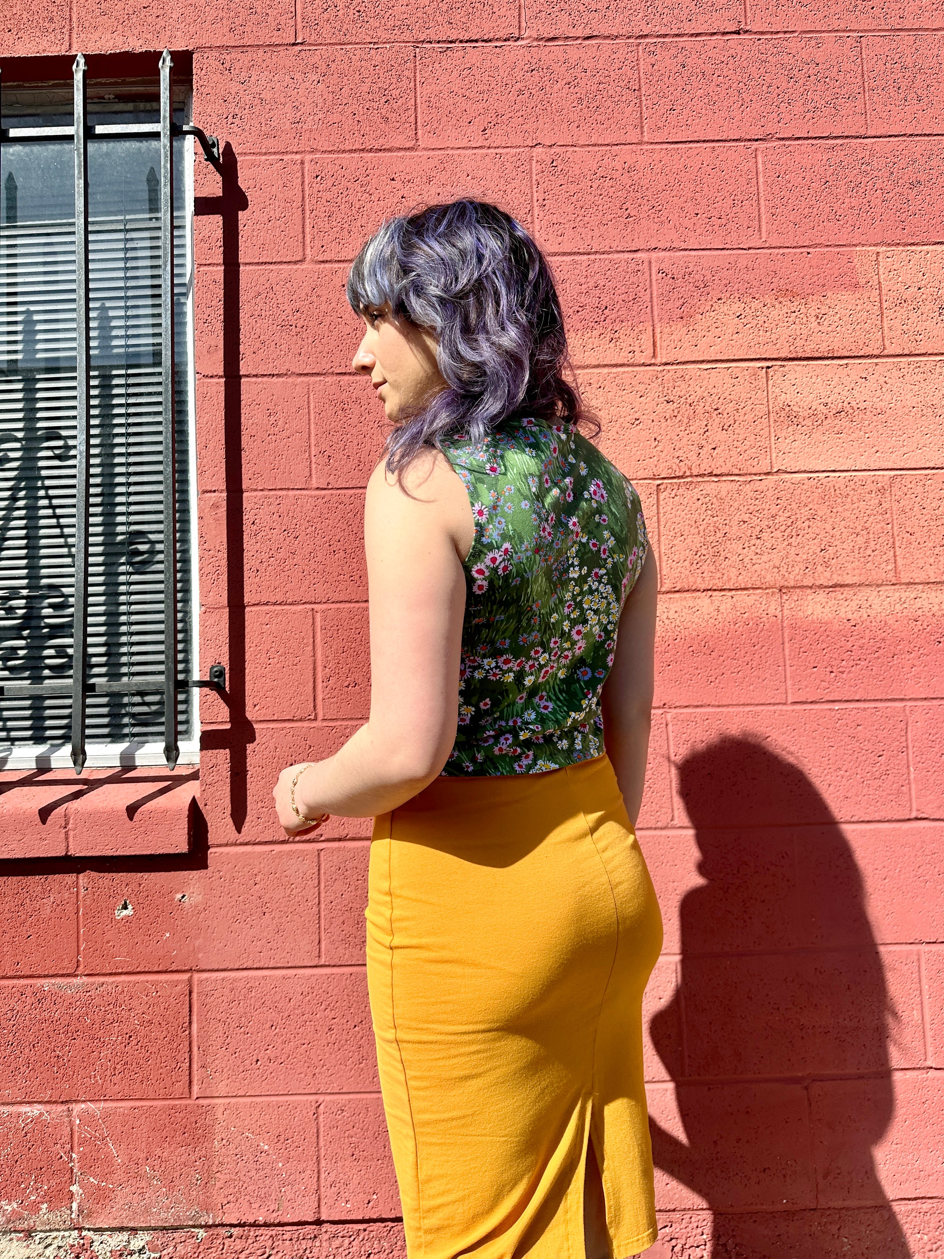 We are a woman owned, women run business. We make limited edition textiles with artists we love in cuts to make you look and feel good. All our garments are produced in California. We try to source all our materials in the USA and work with incredibly nice people.