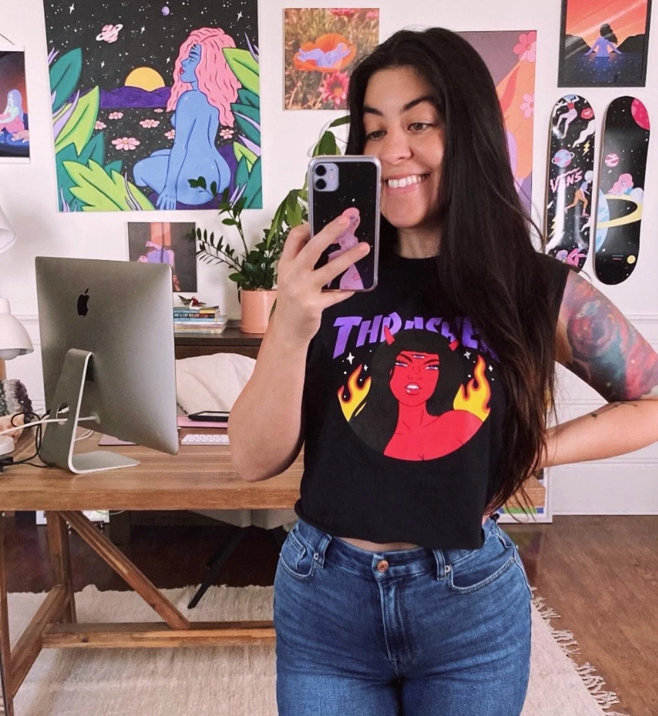 We are a woman owned, women run business. We make limited edition textiles with artists we love in cuts to make you look and feel good. All our garments are produced in California. We try to source all our materials in the USA and work with incredibly nice people.