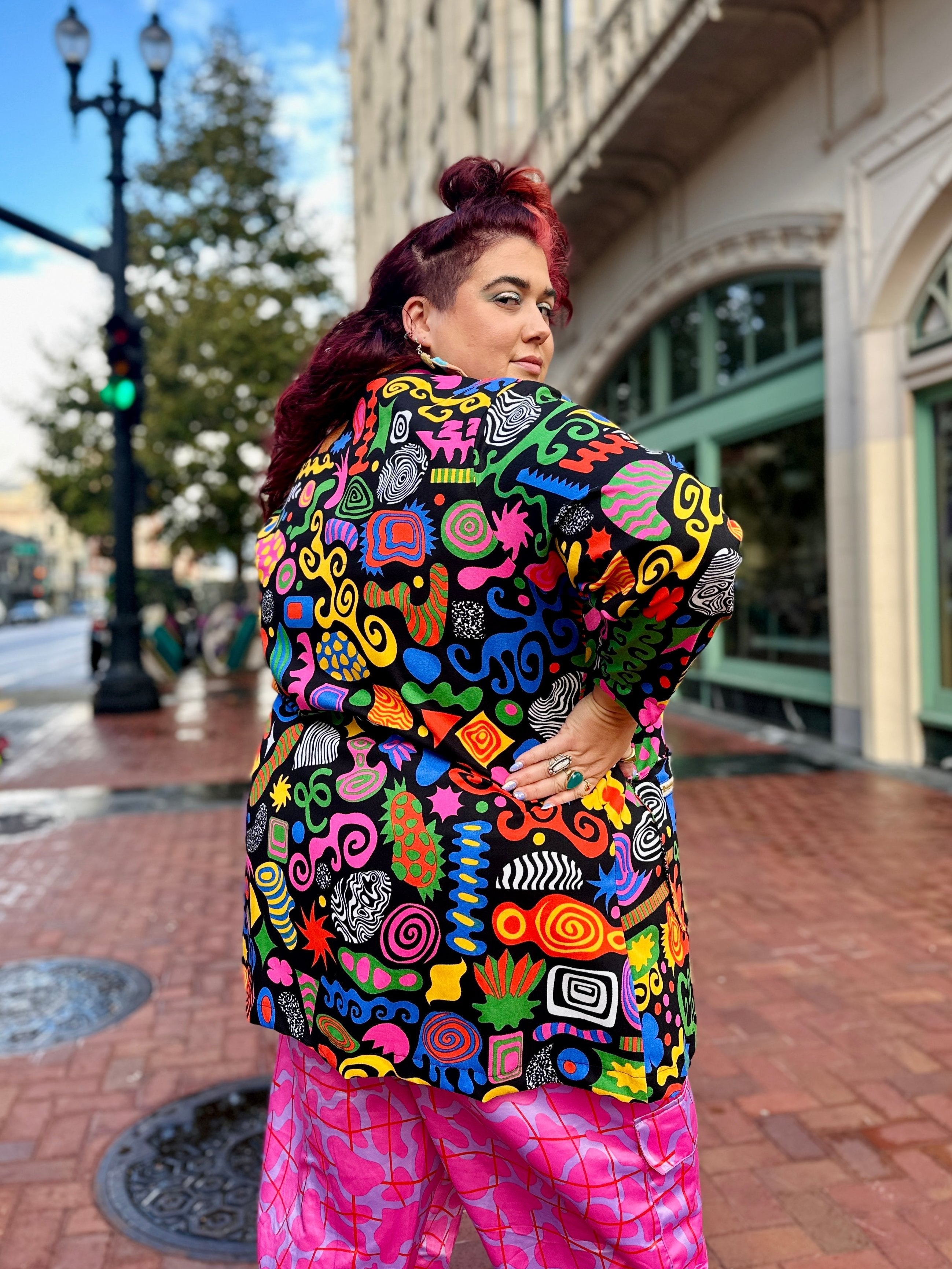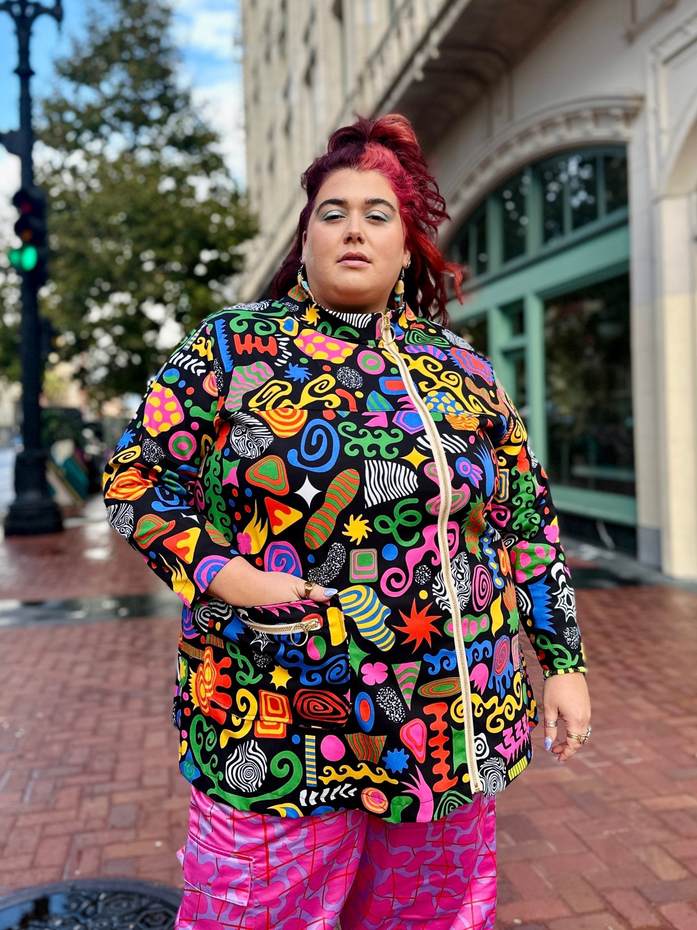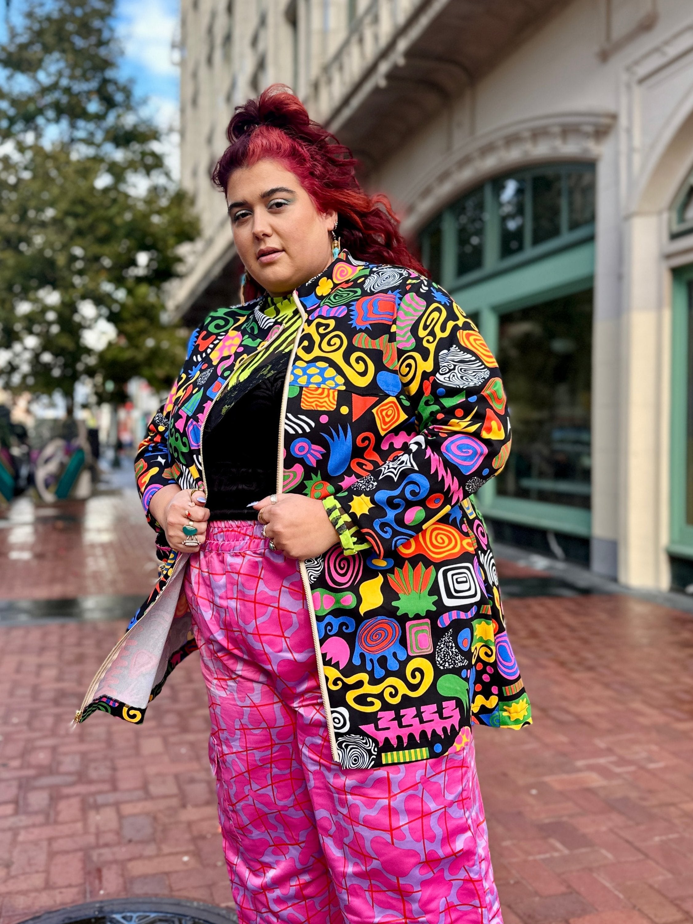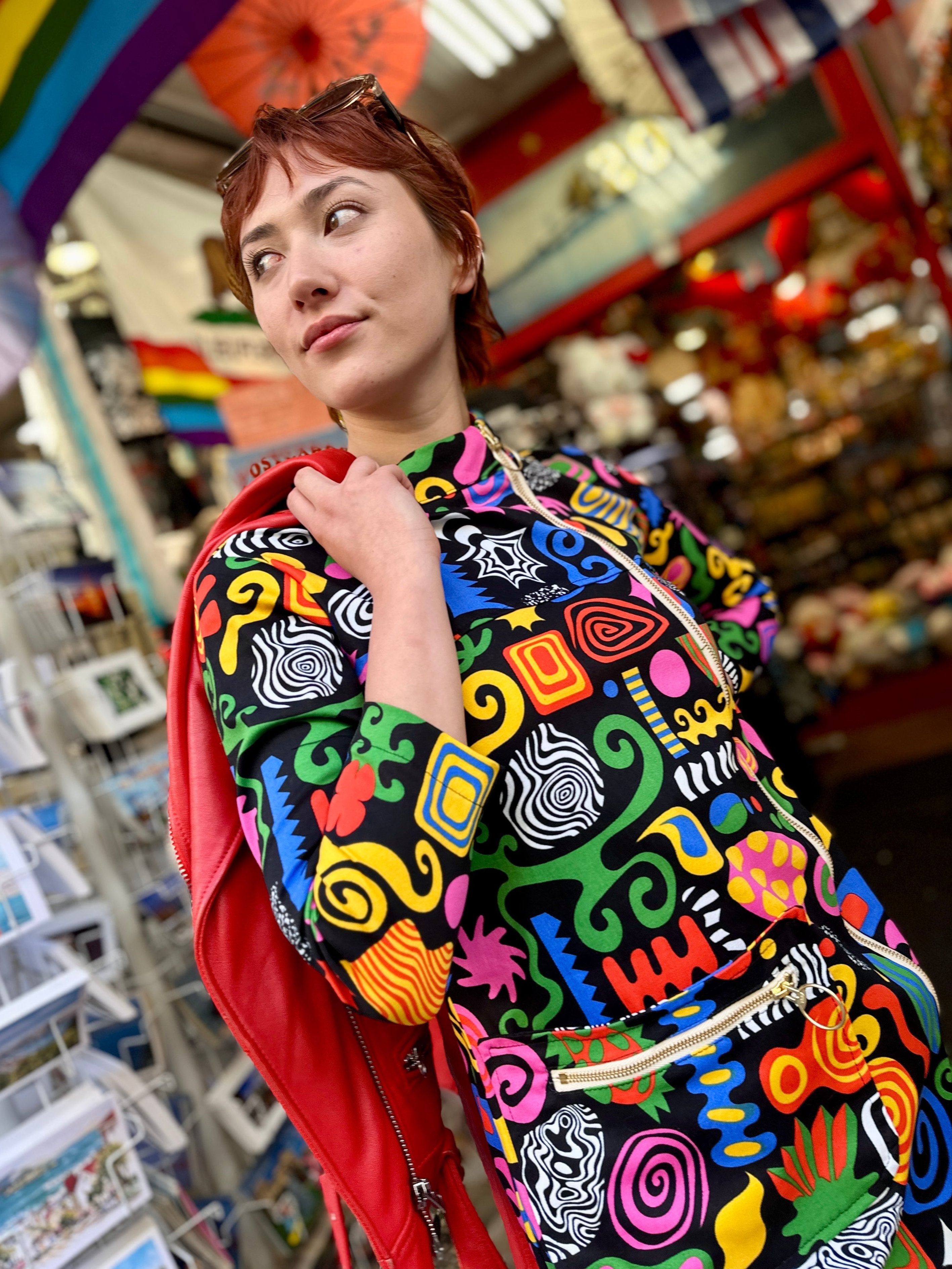We are a woman owned, women run business. We make limited edition textiles with artists we love in cuts to make you look and feel good. All our garments are produced in California. We try to source all our materials in the USA and work with incredibly nice people.