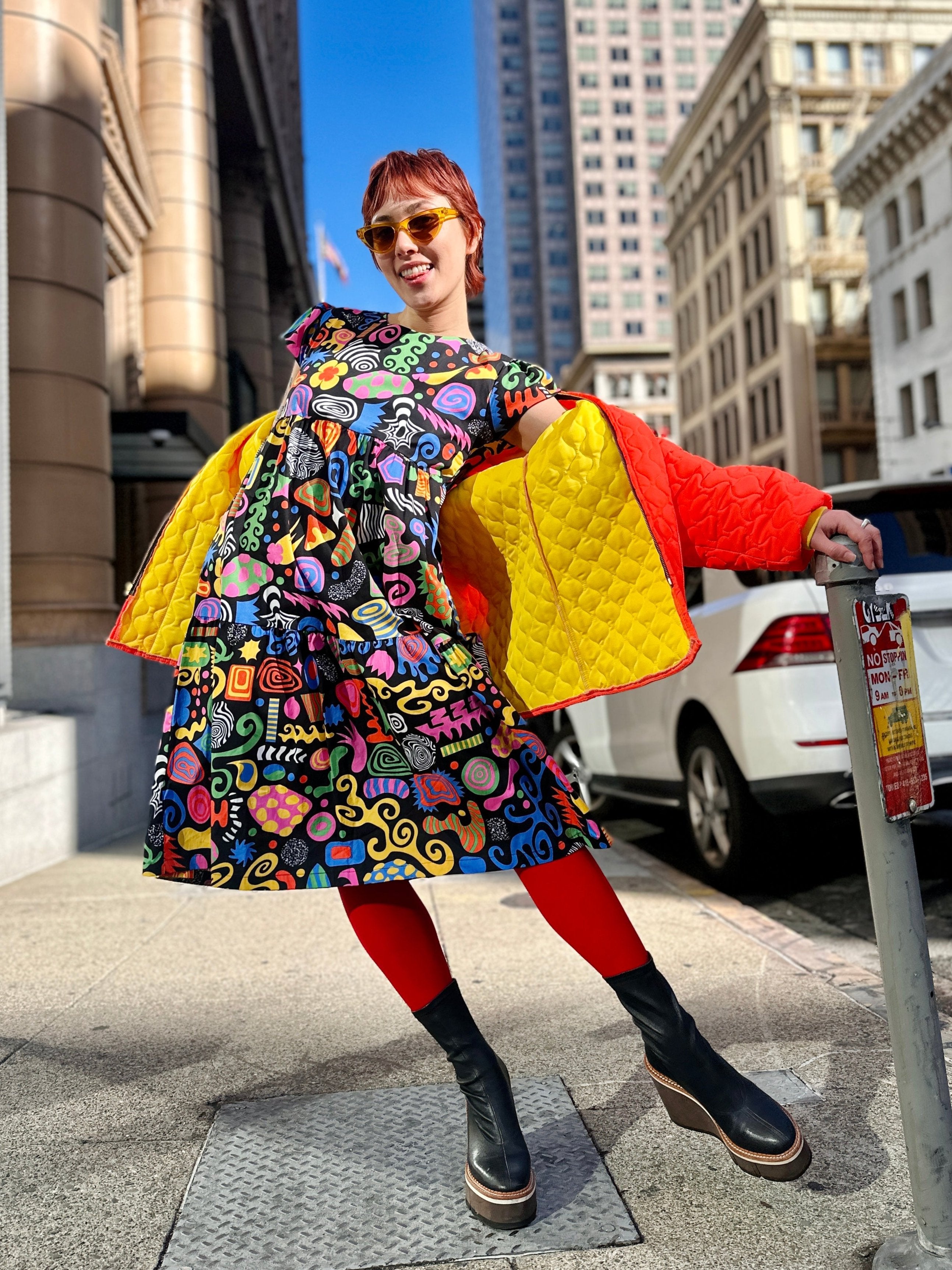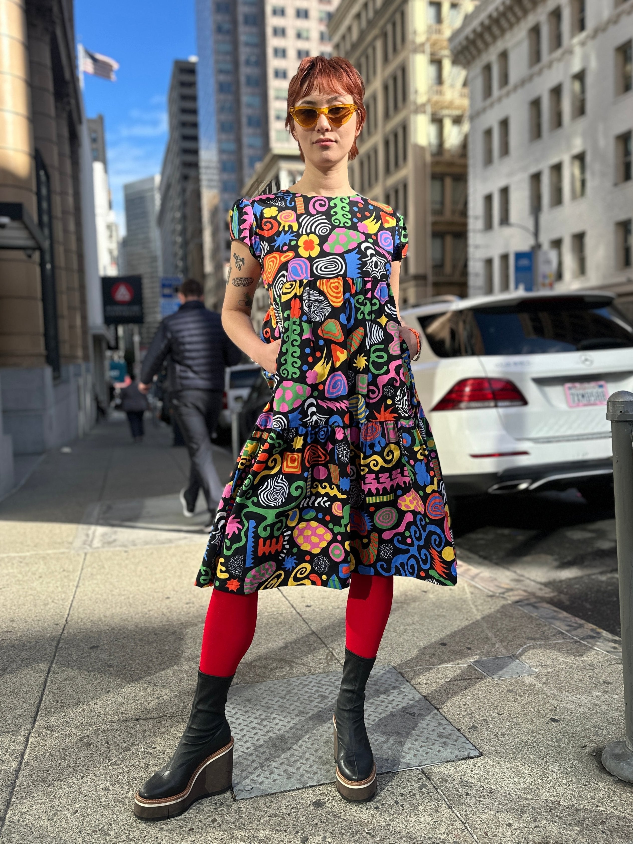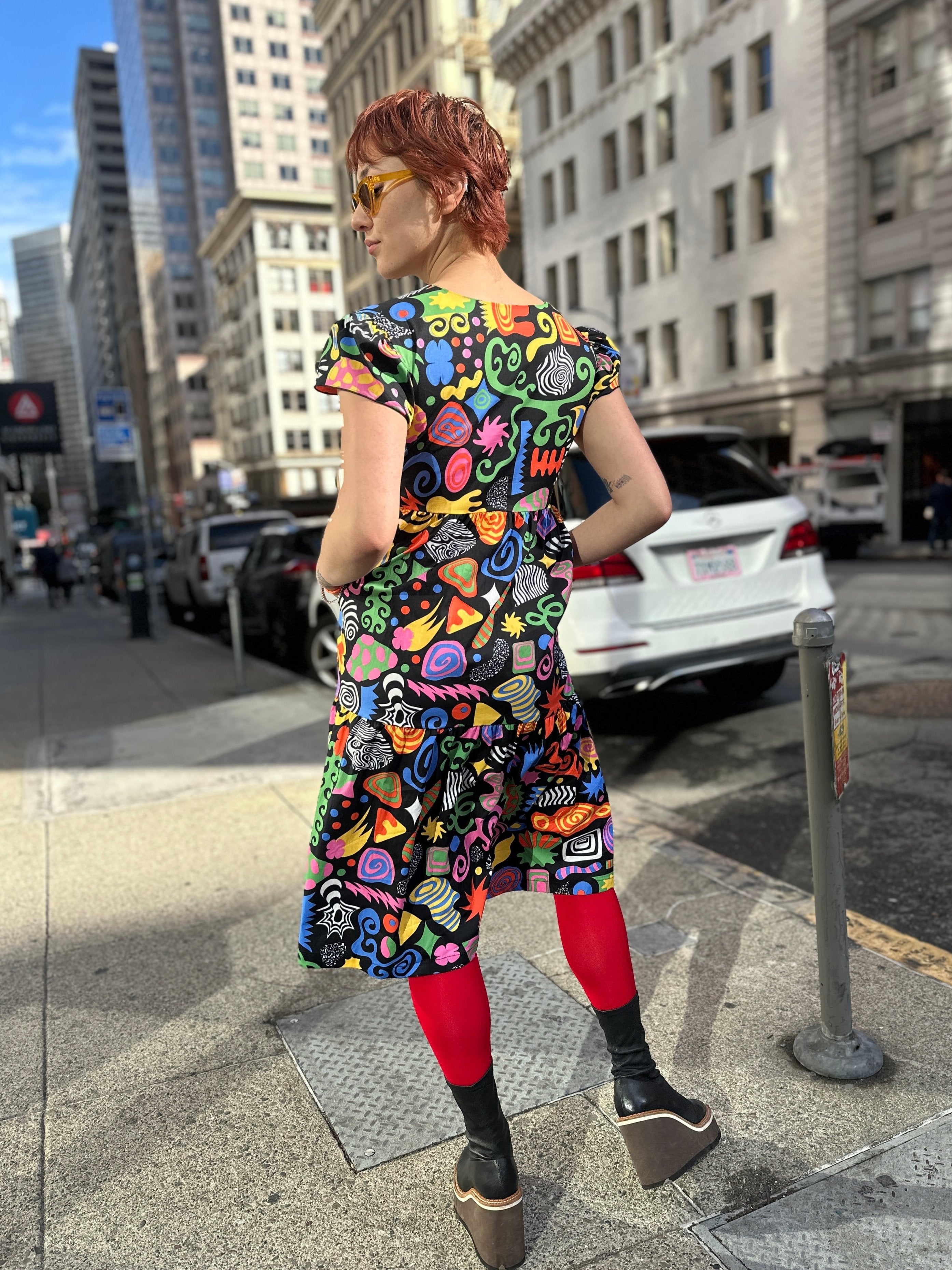 We are a woman owned, women run business. We make limited edition textiles with artists we love in cuts to make you look and feel good. All our garments are produced in California. We try to source all our materials in the USA and work with incredibly nice people.