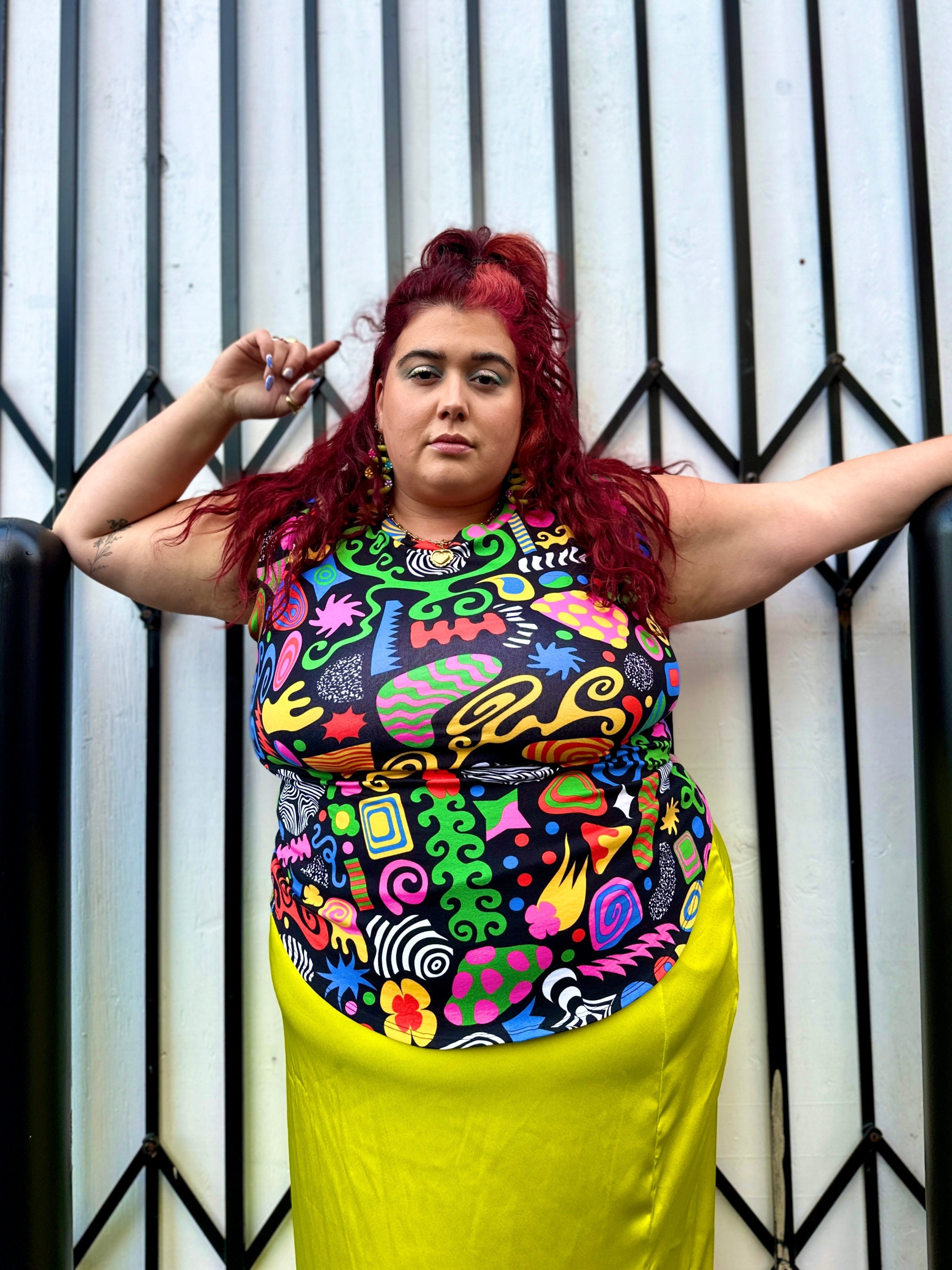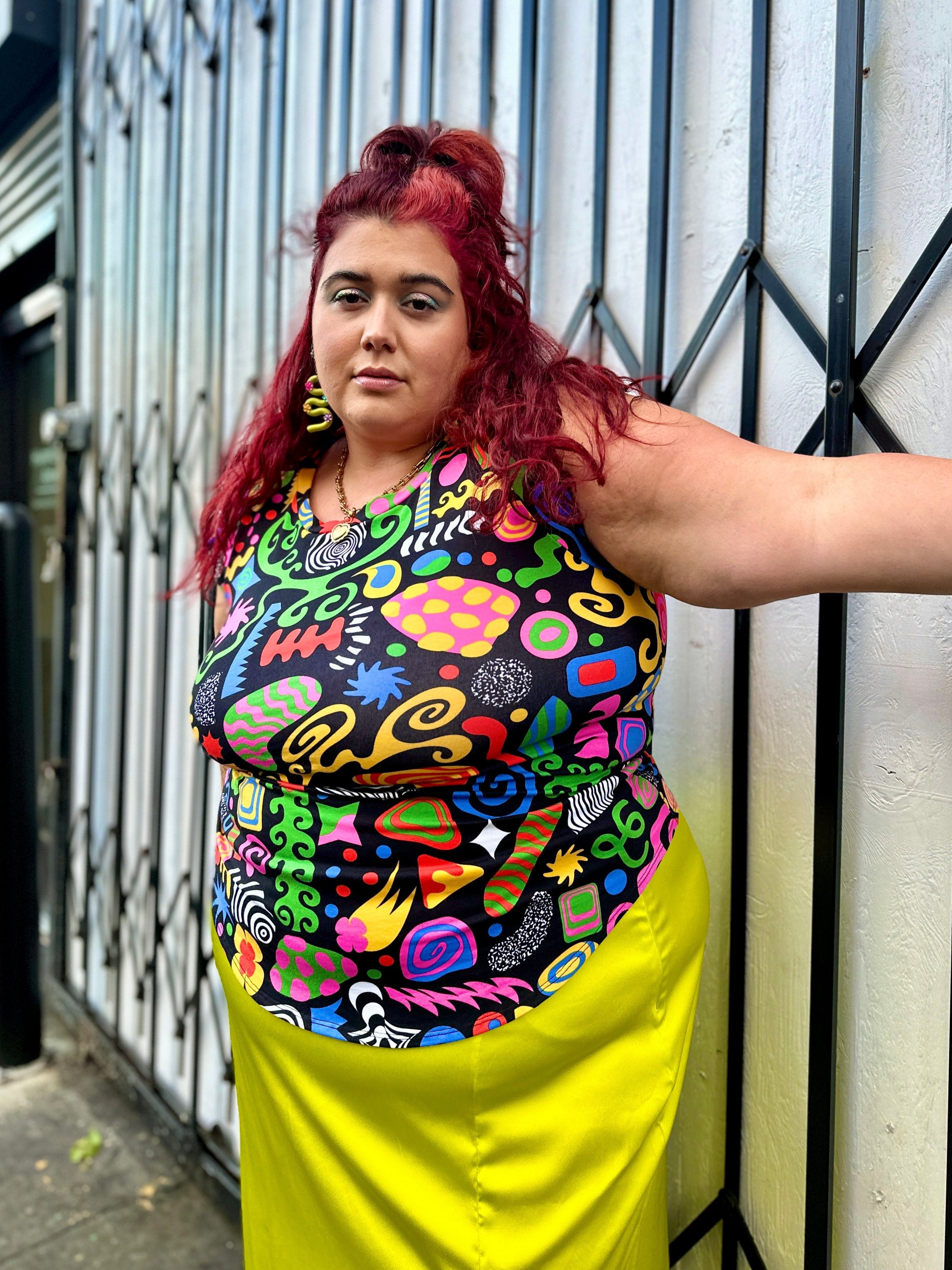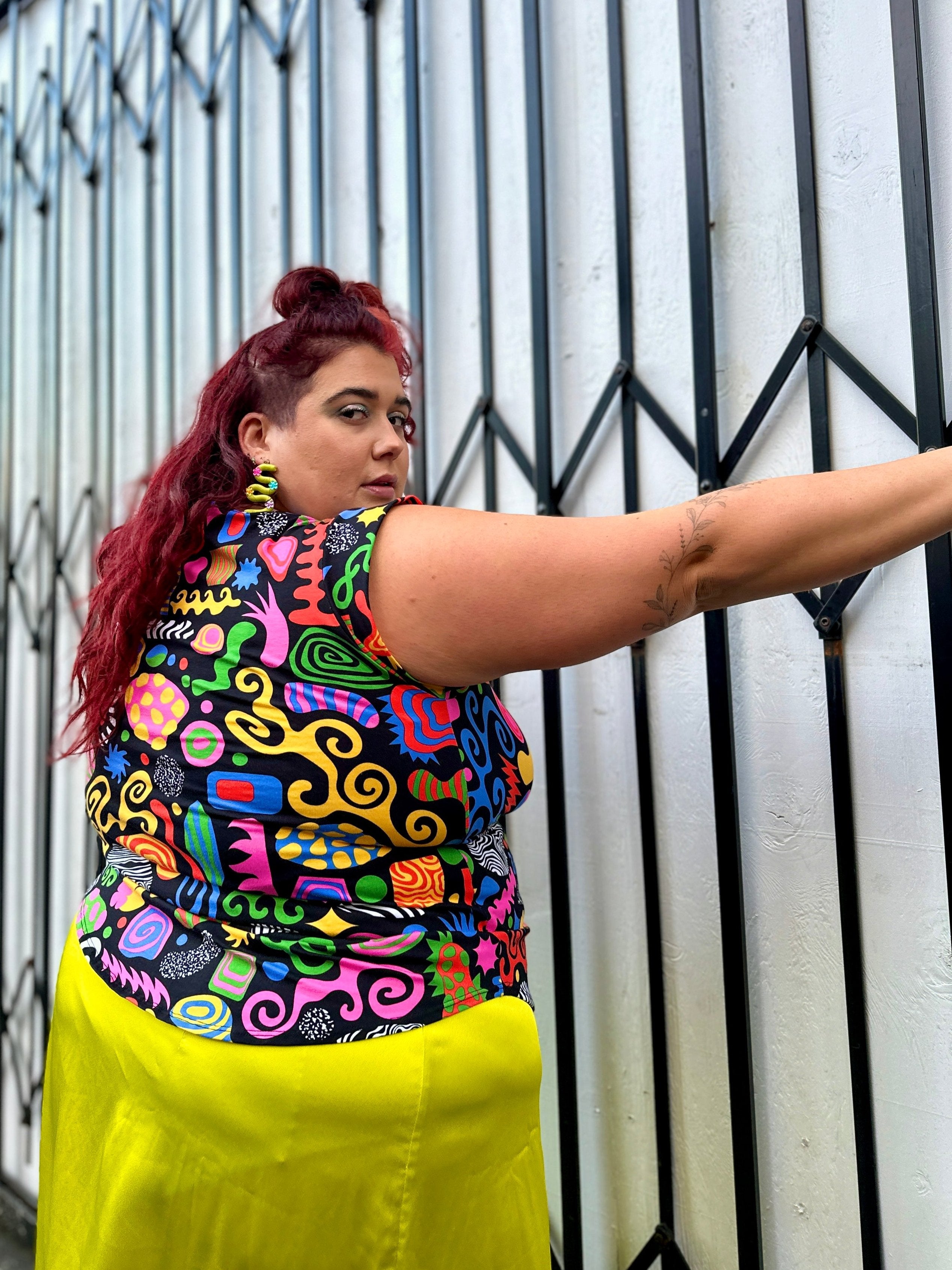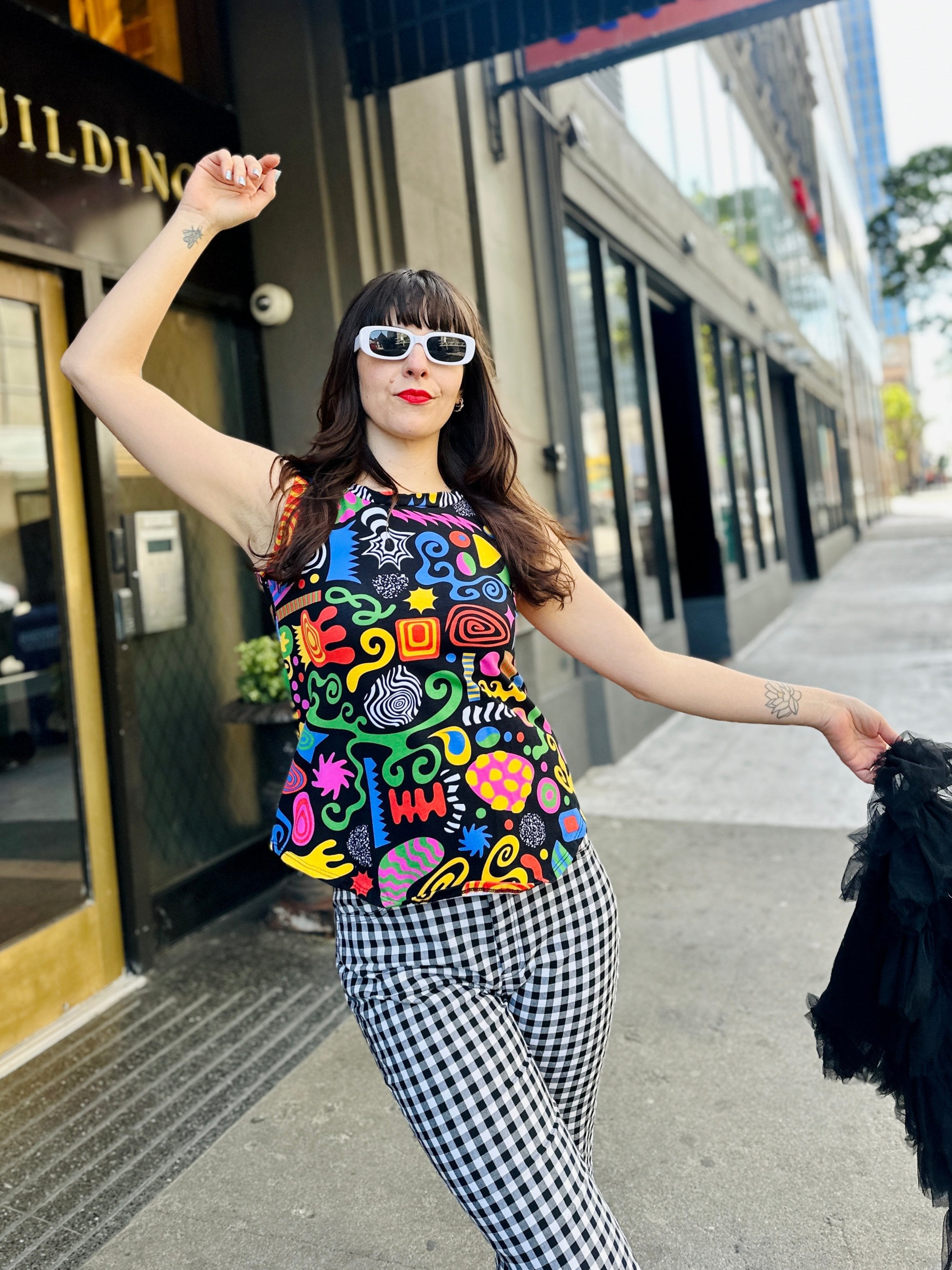 We are a woman owned, women run business. We make limited edition textiles with artists we love in cuts to make you look and feel good. All our garments are produced in California. We try to source all our materials in the USA and work with incredibly nice people.