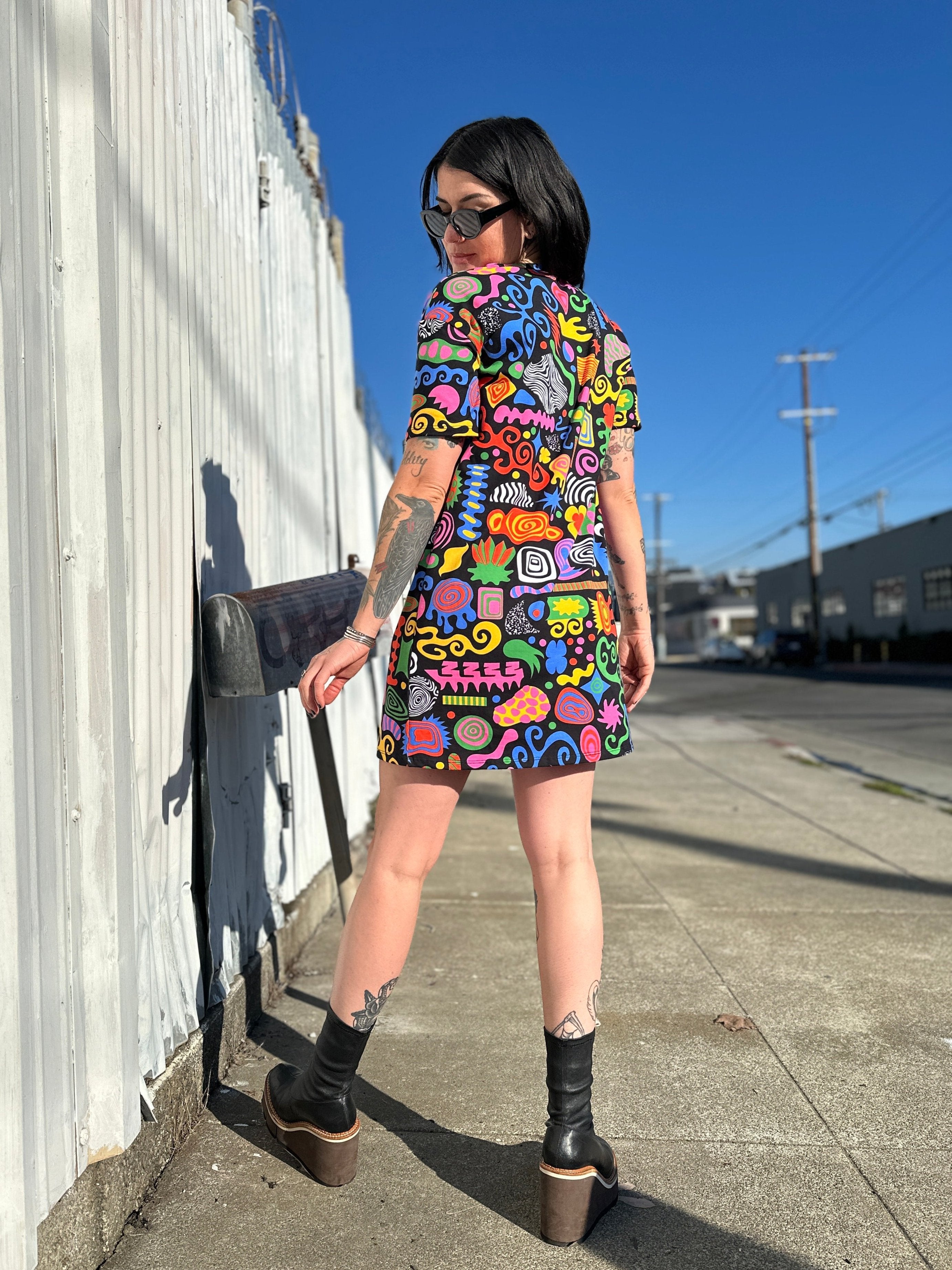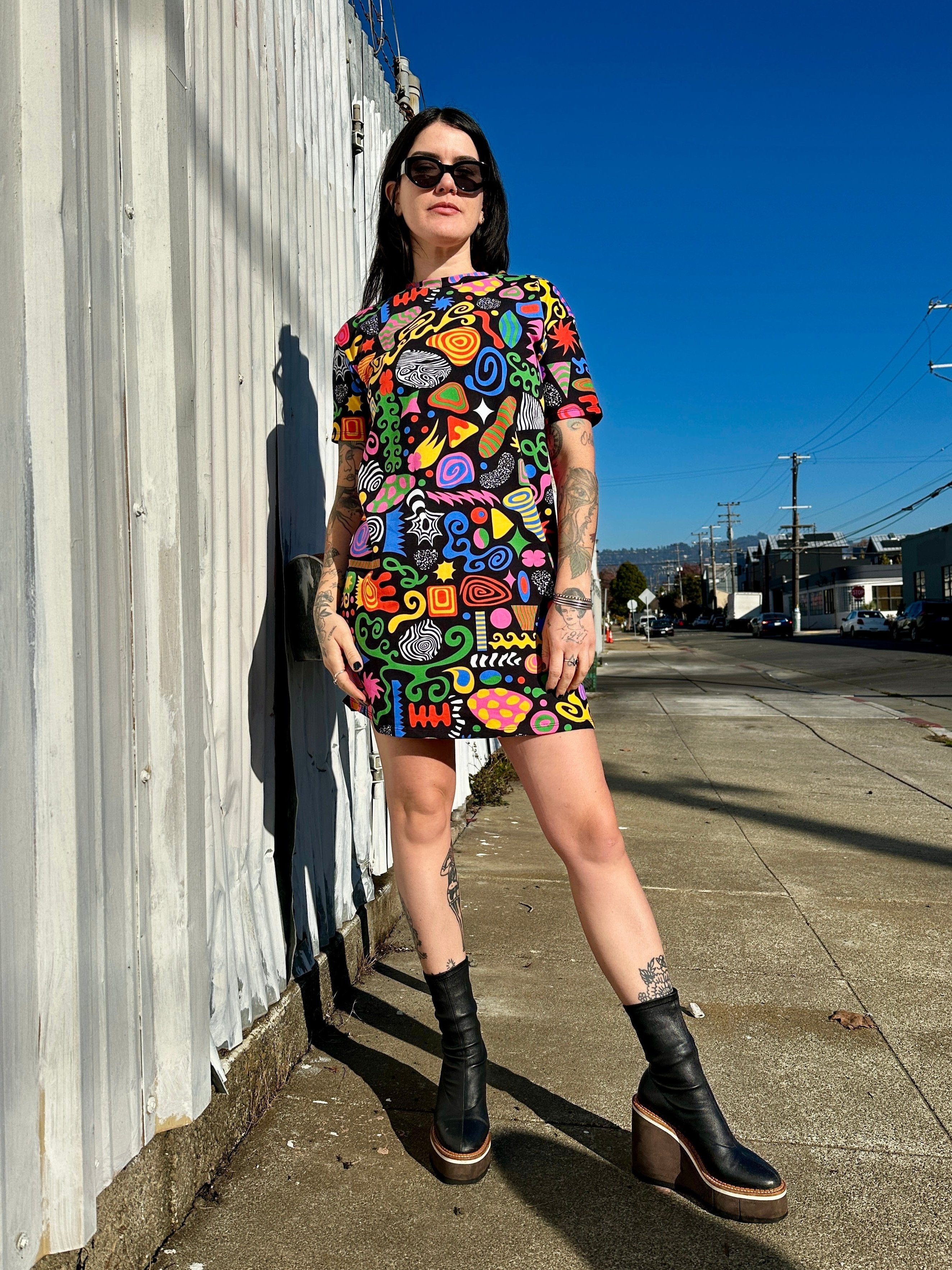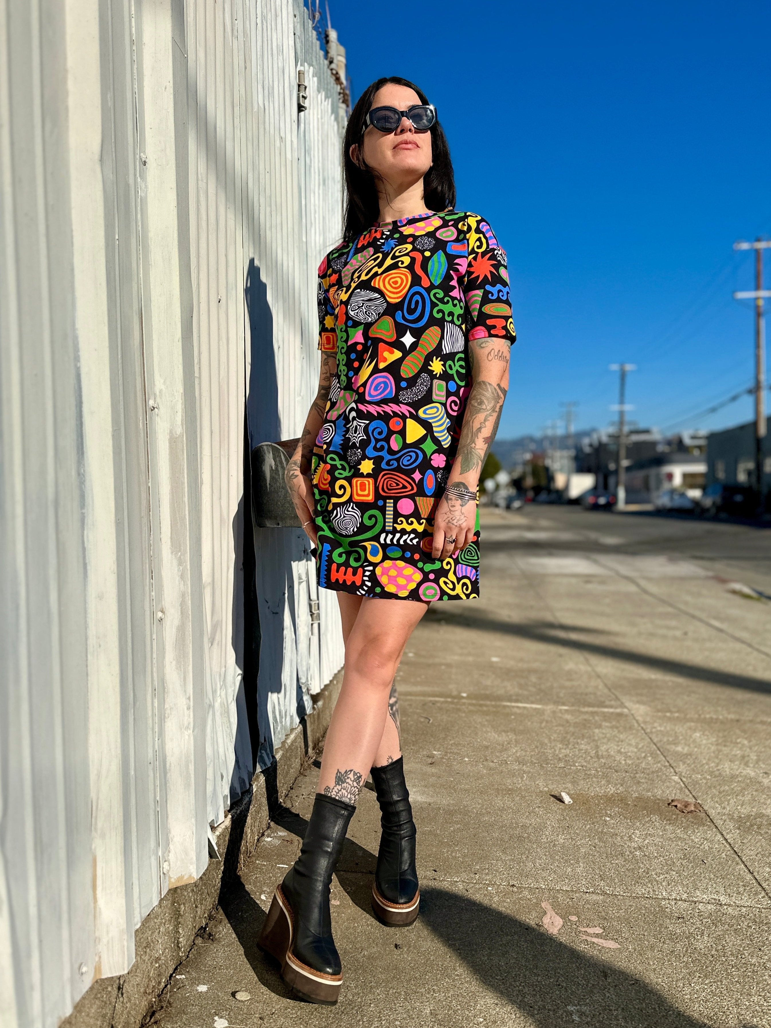 We are a woman owned, women run business. We make limited edition textiles with artists we love in cuts to make you look and feel good. All our garments are produced in California. We try to source all our materials in the USA and work with incredibly nice people.