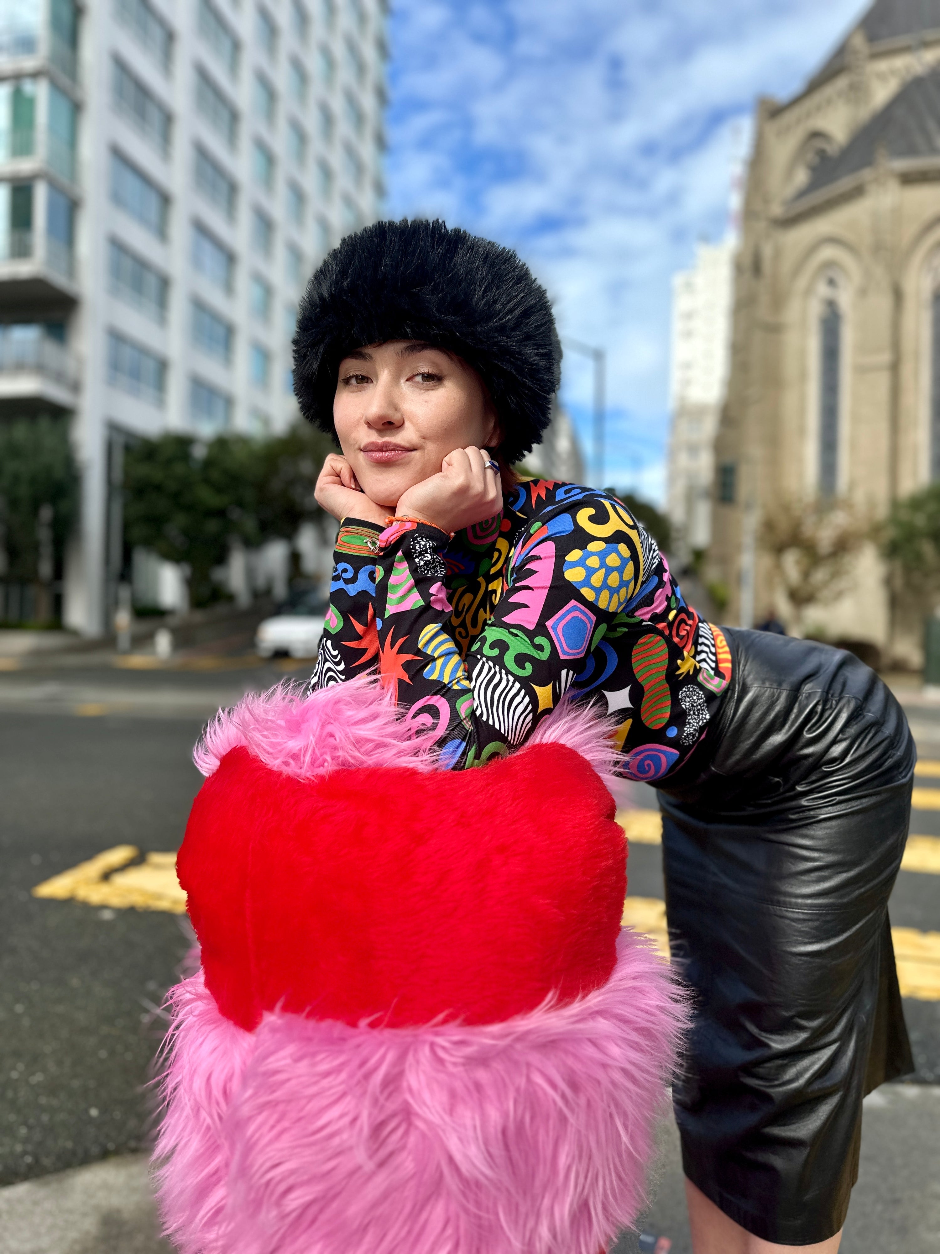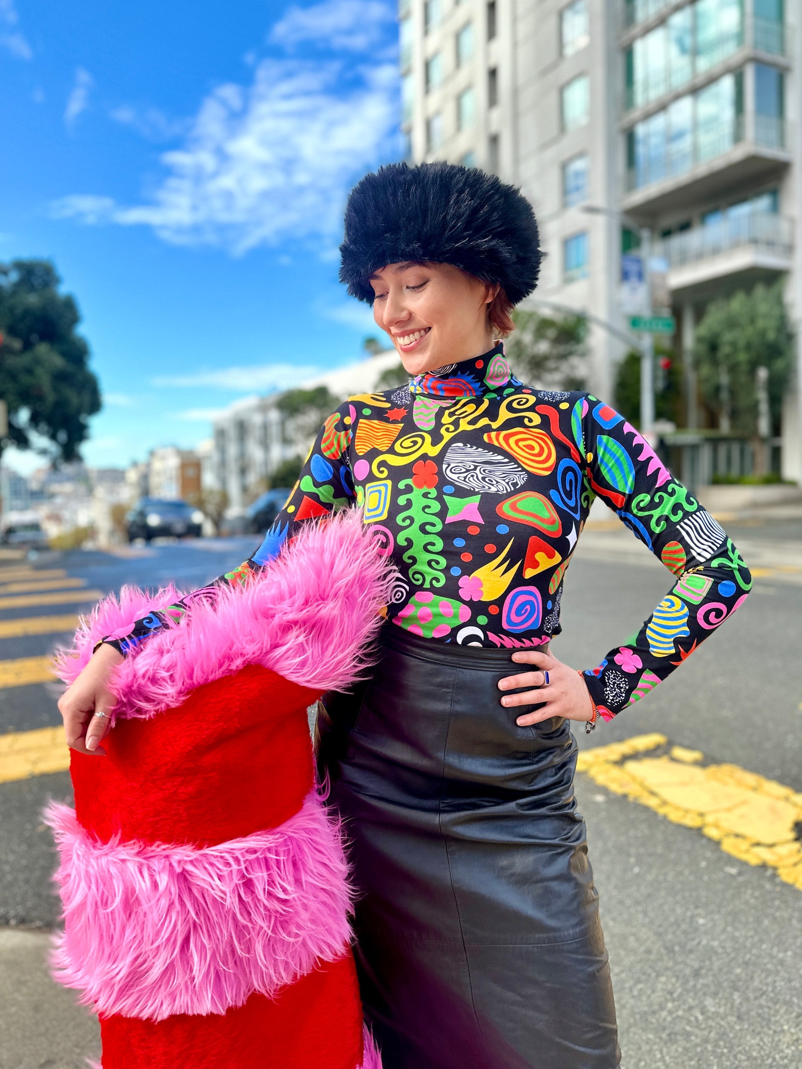 We are a woman owned, women run business. We make limited edition textiles with artists we love in cuts to make you look and feel good. All our garments are produced in California. We try to source all our materials in the USA and work with incredibly nice people.