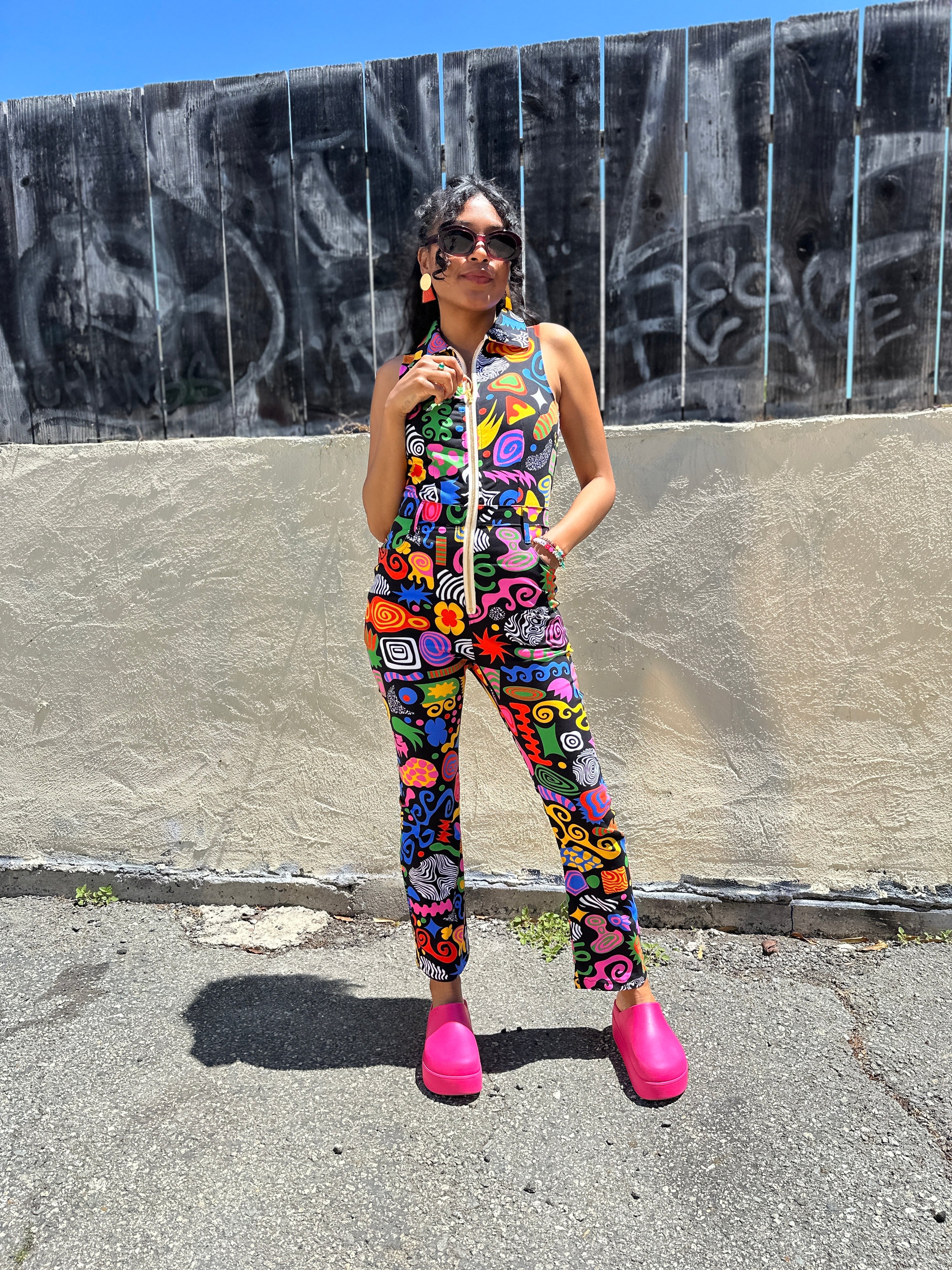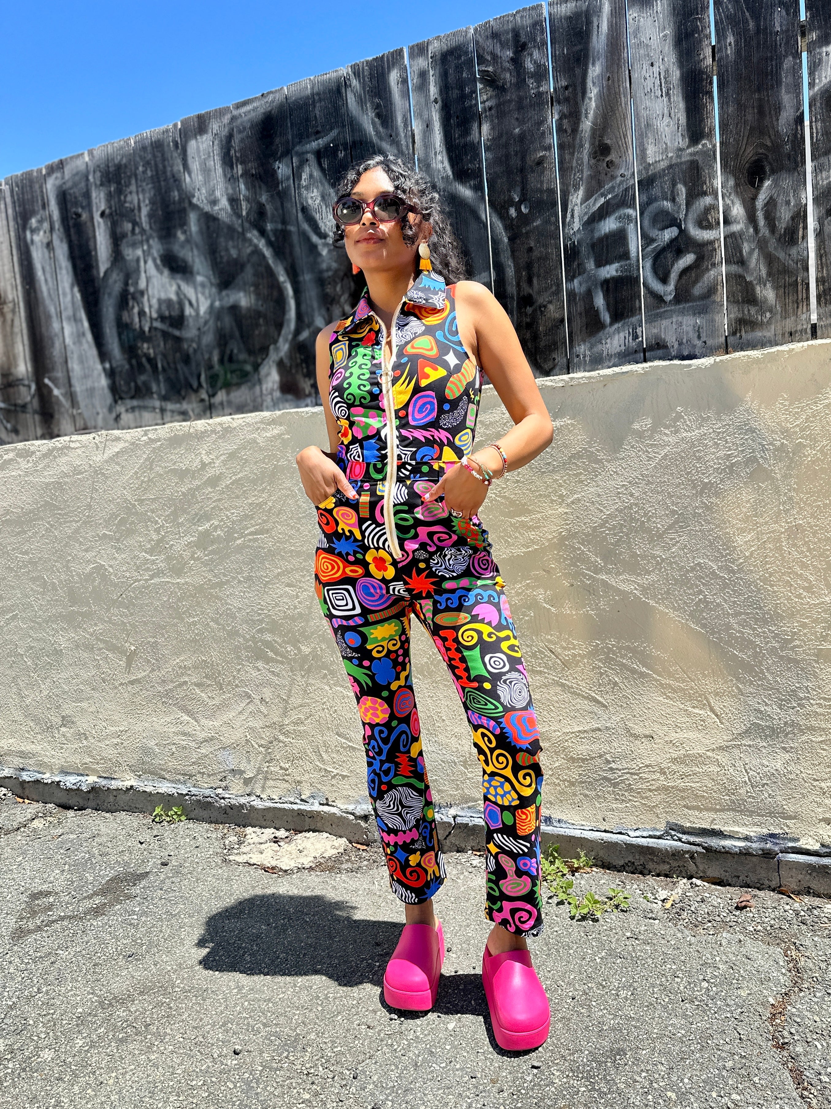 We are a woman owned, women run business. We make limited edition textiles with artists we love in cuts to make you look and feel good. All our garments are produced in California. We try to source all our materials in the USA and work with incredibly nice people.