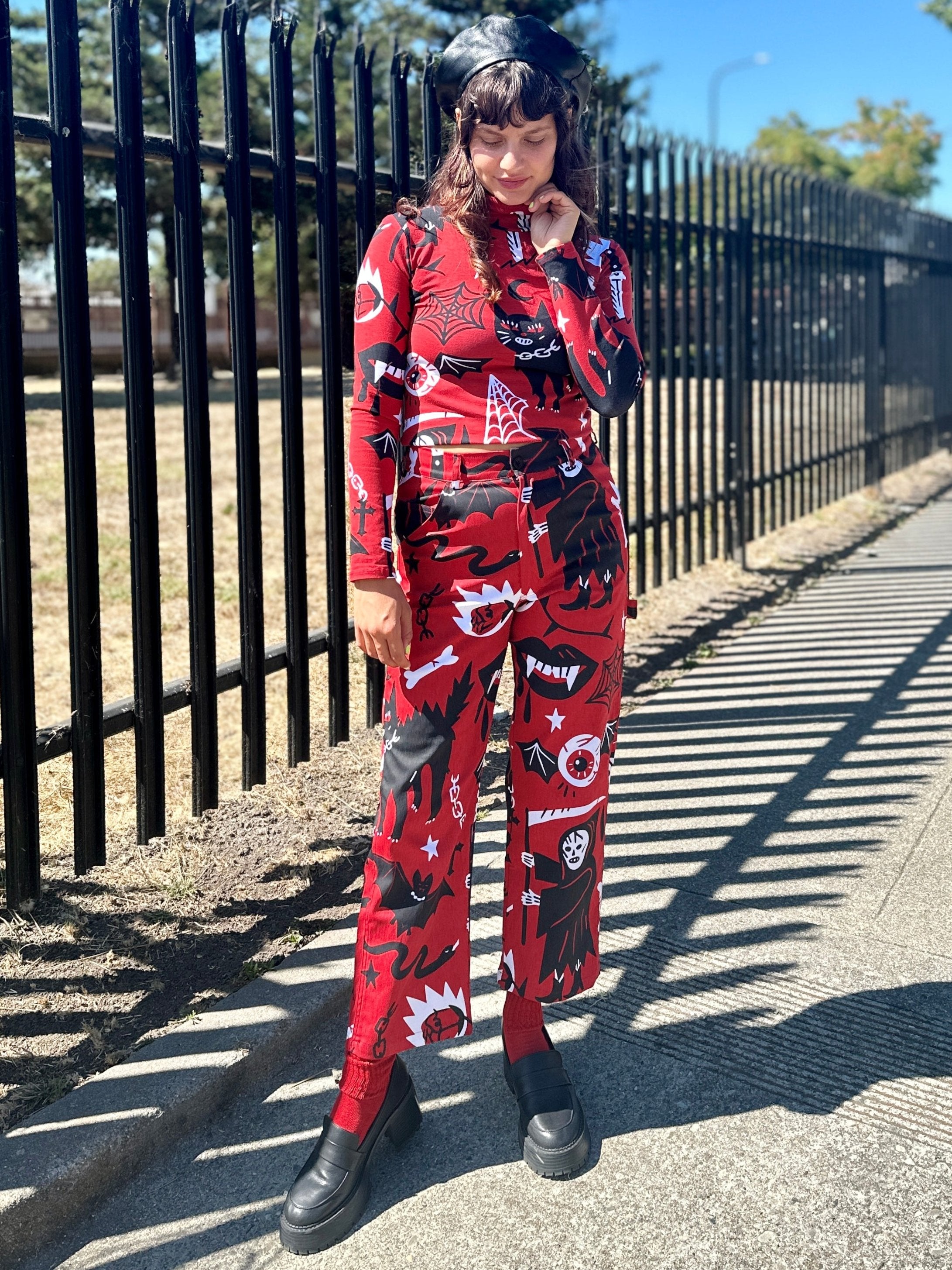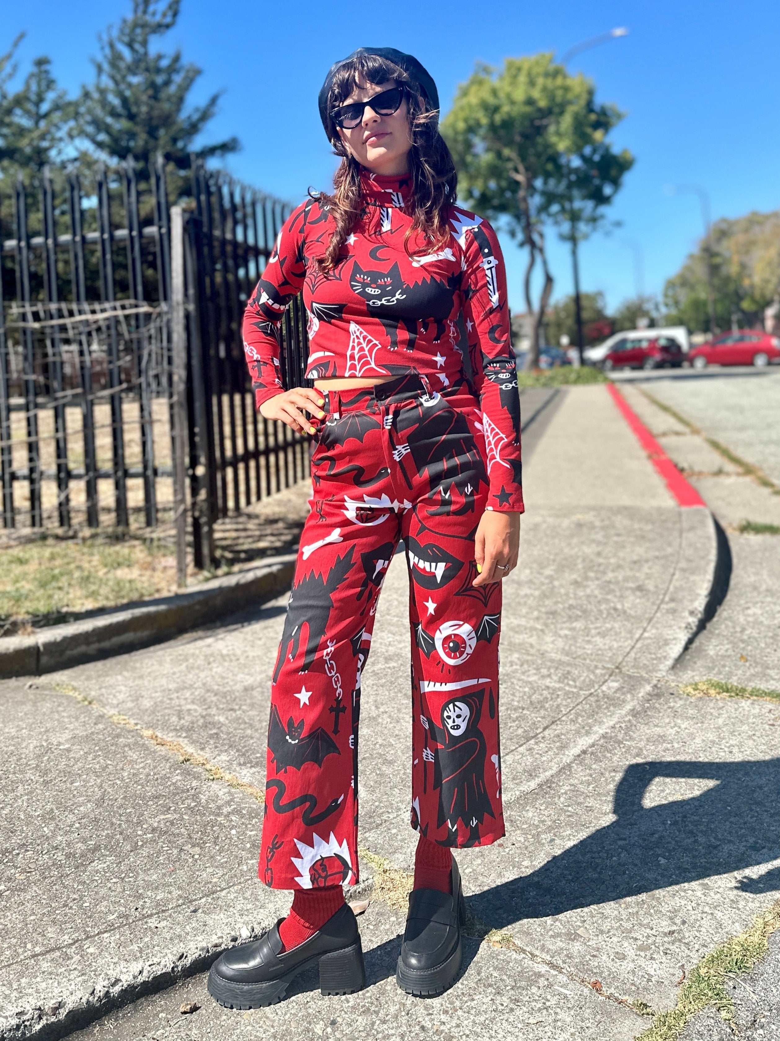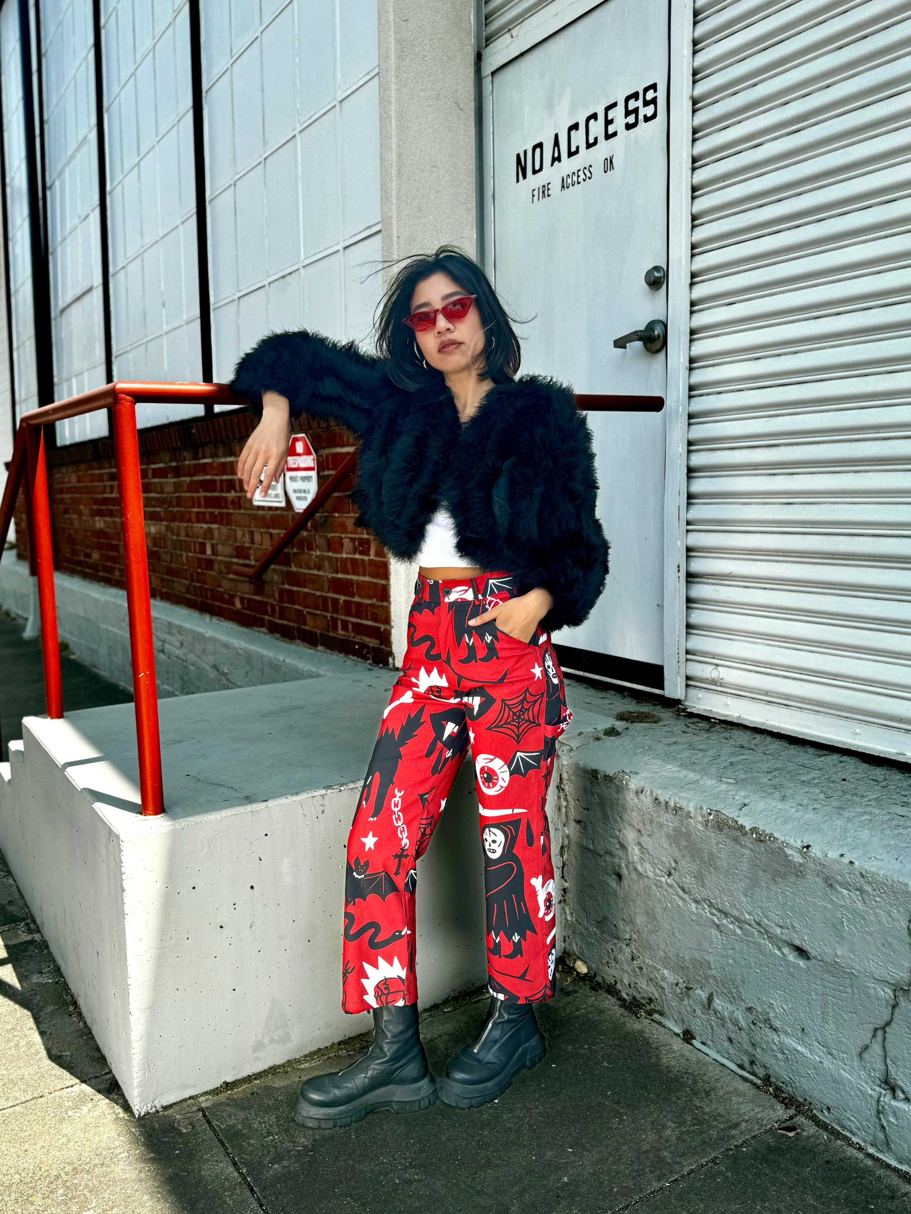 We are a woman owned, women run business. We make limited edition textiles with artists we love in cuts to make you look and feel good. All our garments are produced in California. We try to source all our materials in the USA and work with incredibly nice people.