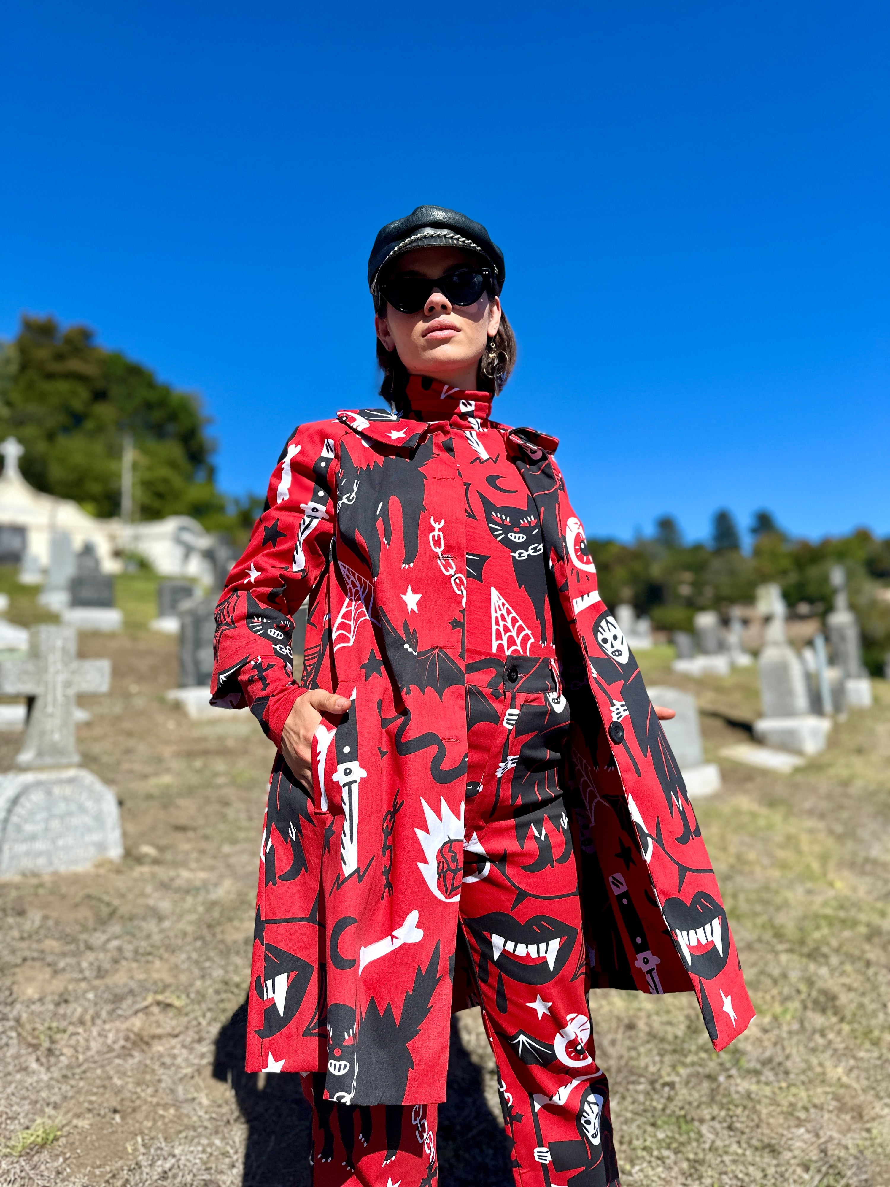 We are a woman owned, women run business. We make limited edition textiles with artists we love in cuts to make you look and feel good. All our garments are produced in California. We try to source all our materials in the USA and work with incredibly nice people.