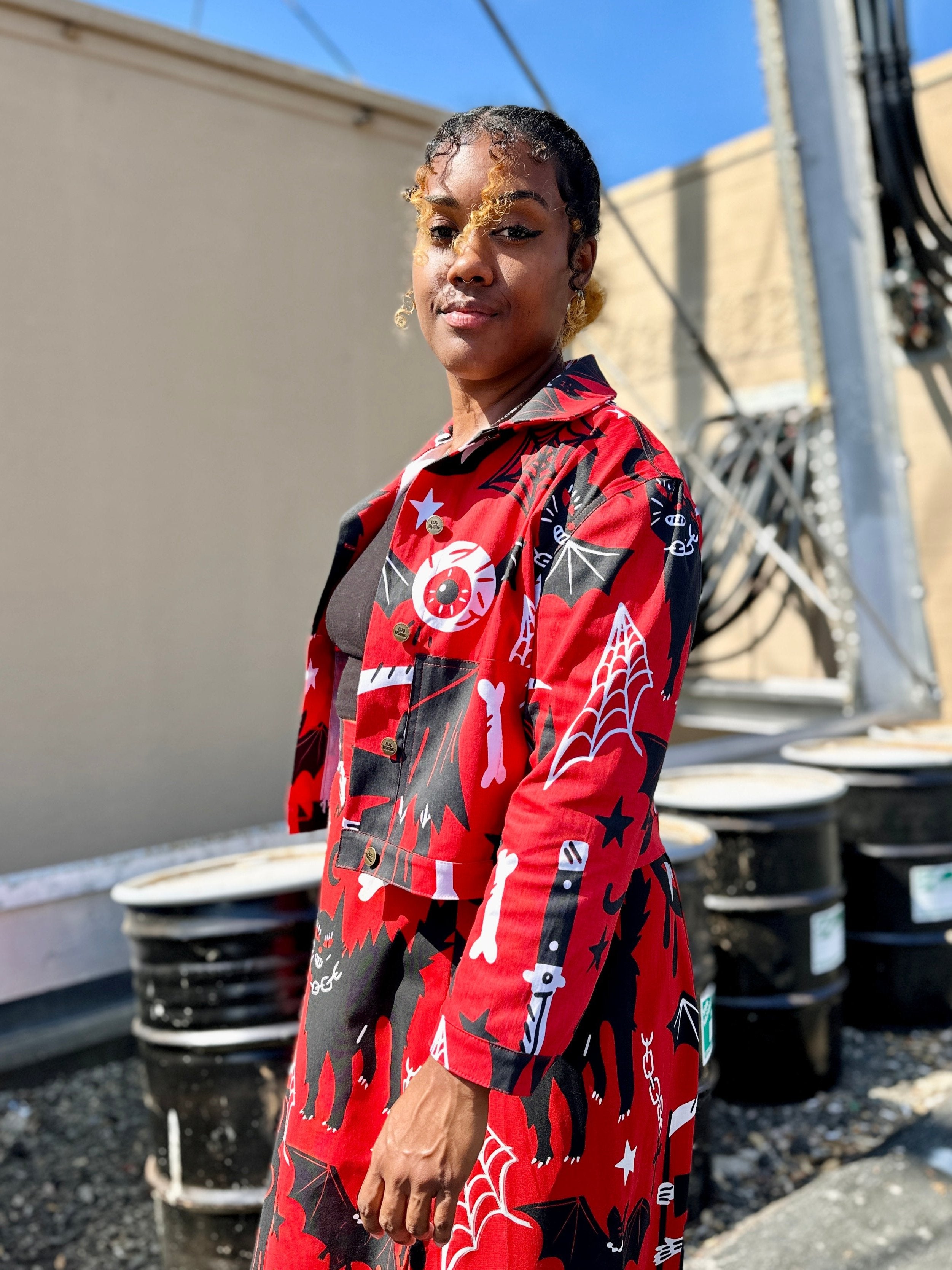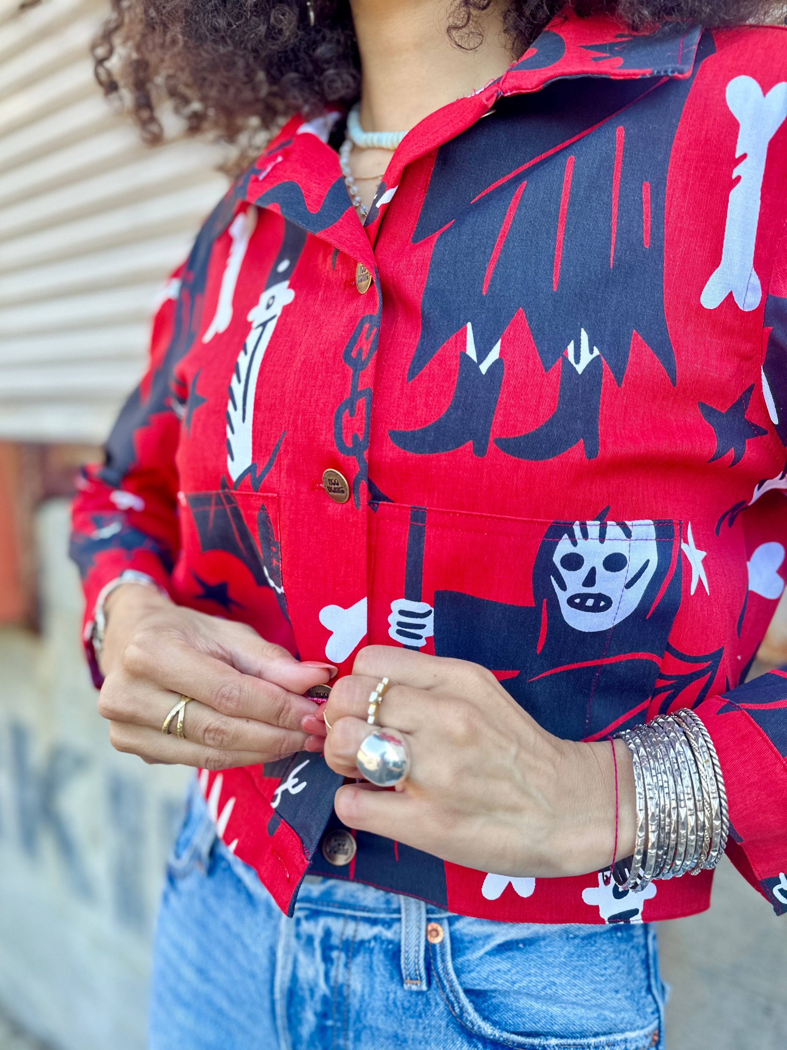 We are a woman owned, women run business. We make limited edition textiles with artists we love in cuts to make you look and feel good. All our garments are produced in California. We try to source all our materials in the USA and work with incredibly nice people.