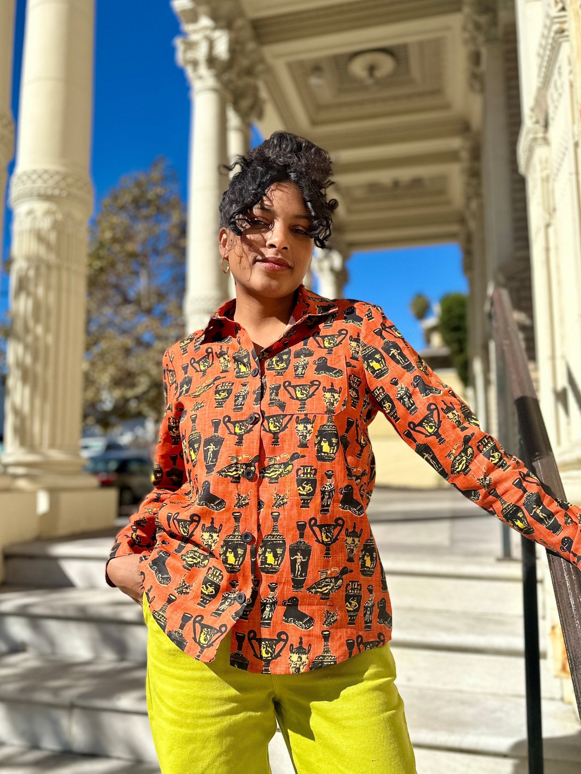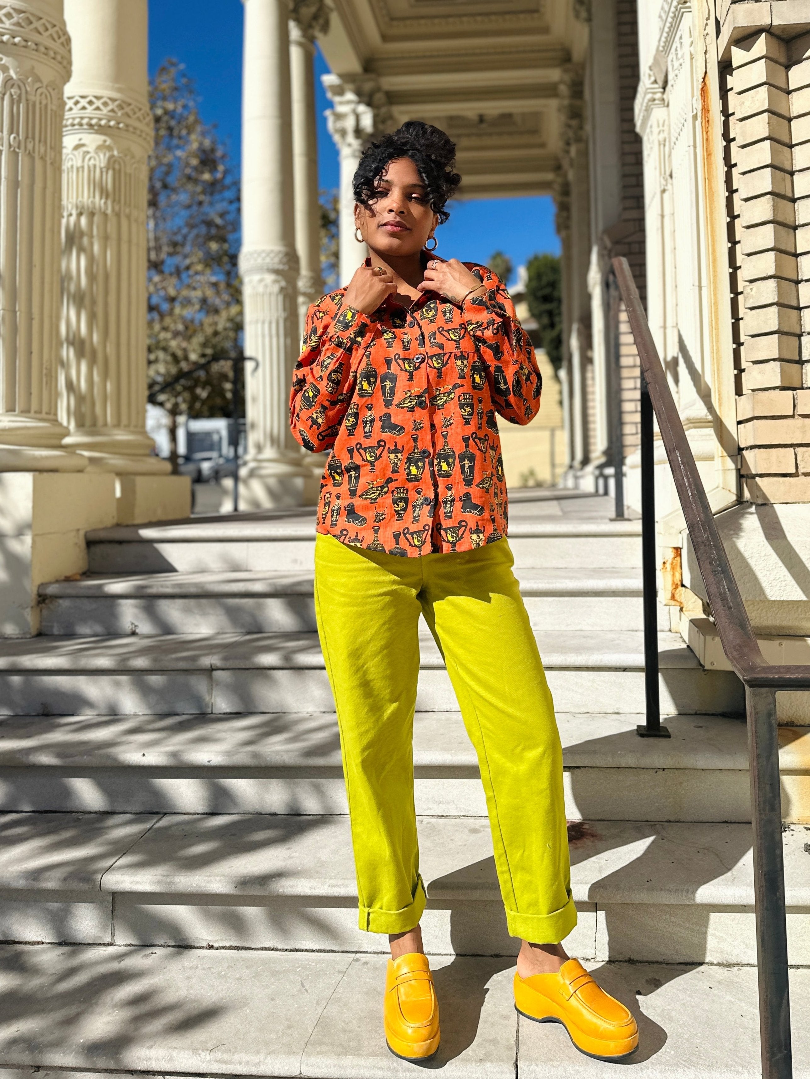 We are a woman owned, women run business. We make limited edition textiles with artists we love in cuts to make you look and feel good. All our garments are produced in California. We try to source all our materials in the USA and work with incredibly nice people.