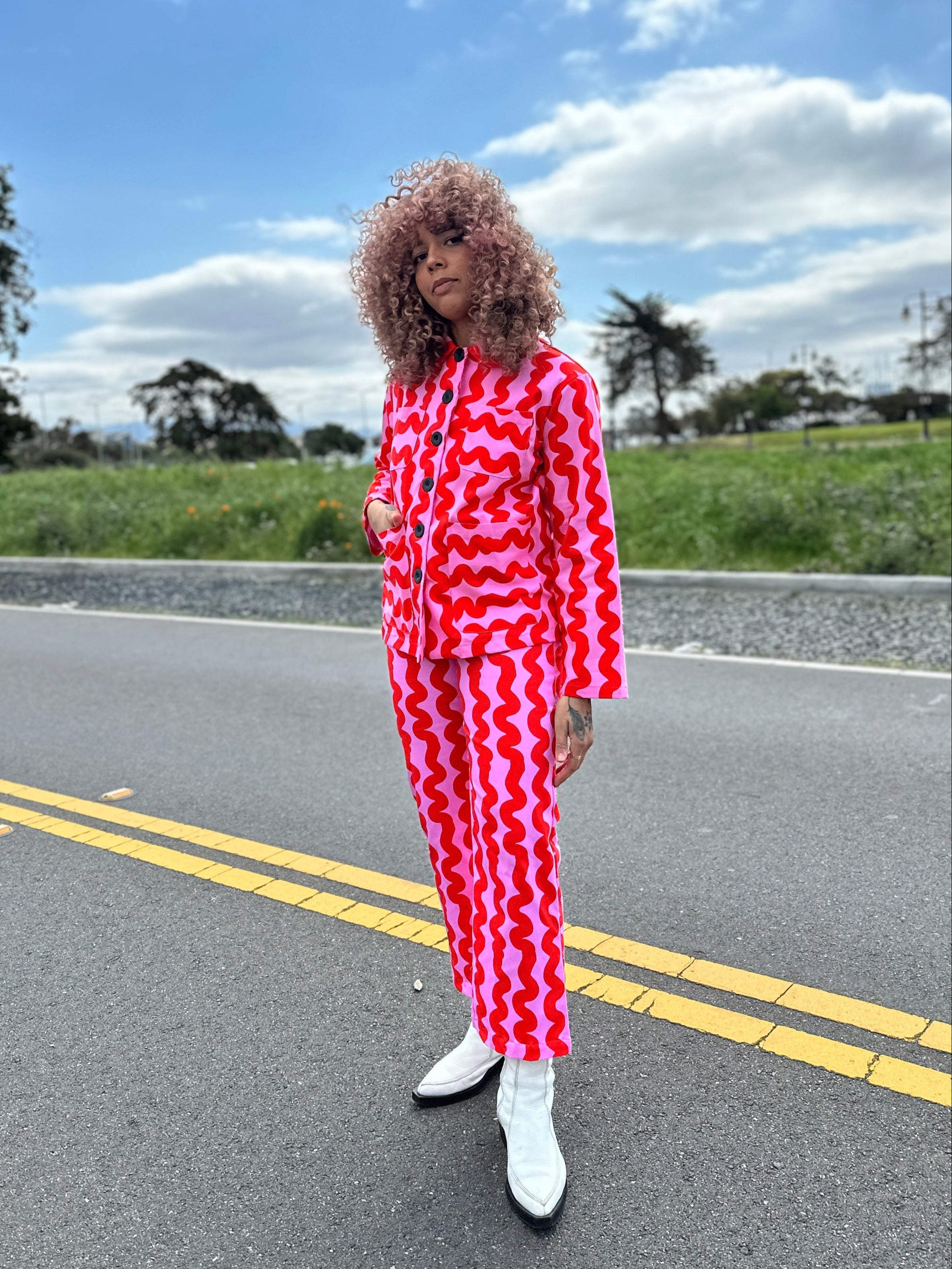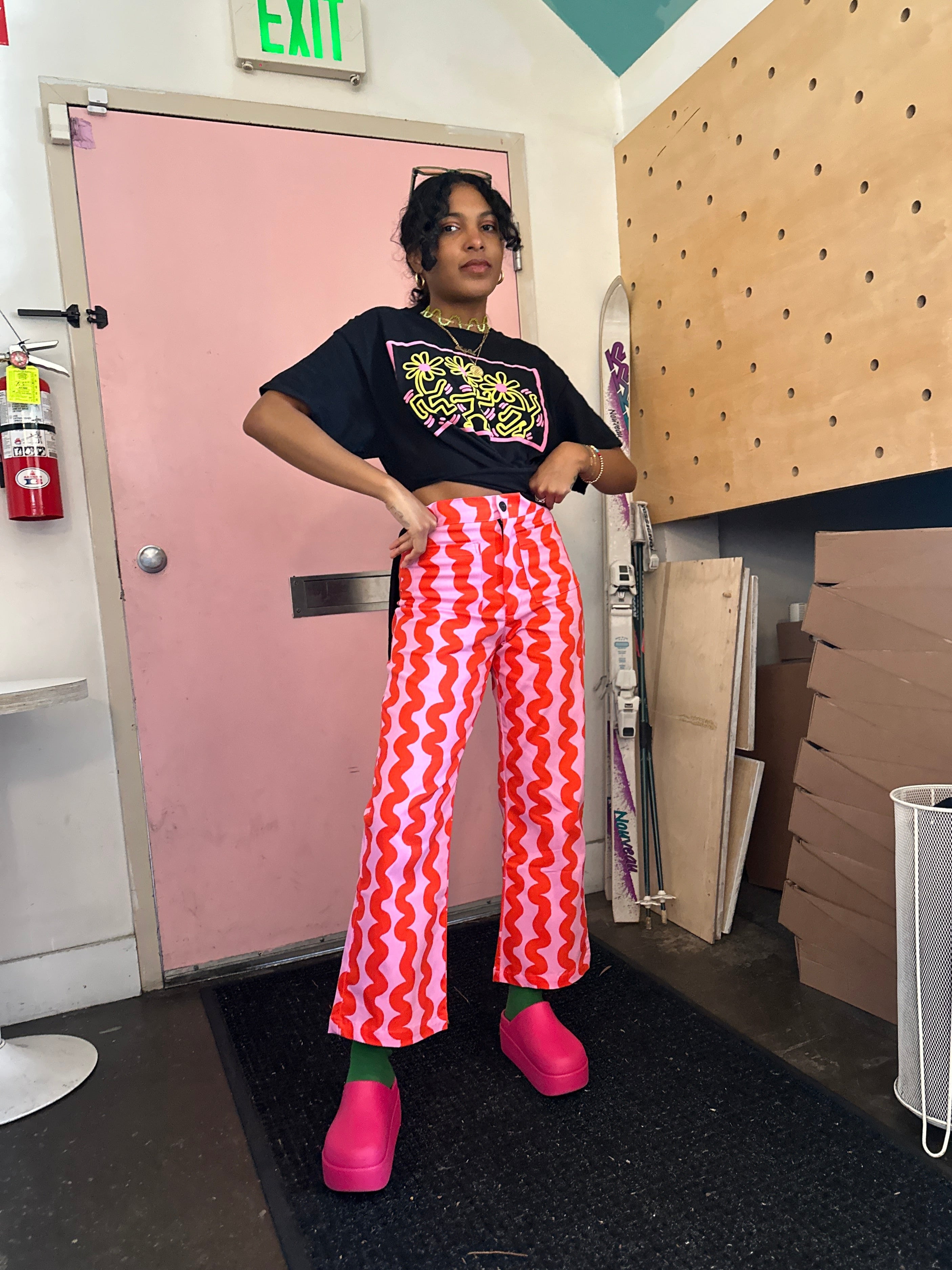 We are a woman owned, women run business. We make limited edition textiles with artists we love in cuts to make you look and feel good. All our garments are produced in California. We try to source all our materials in the USA and work with incredibly nice people.