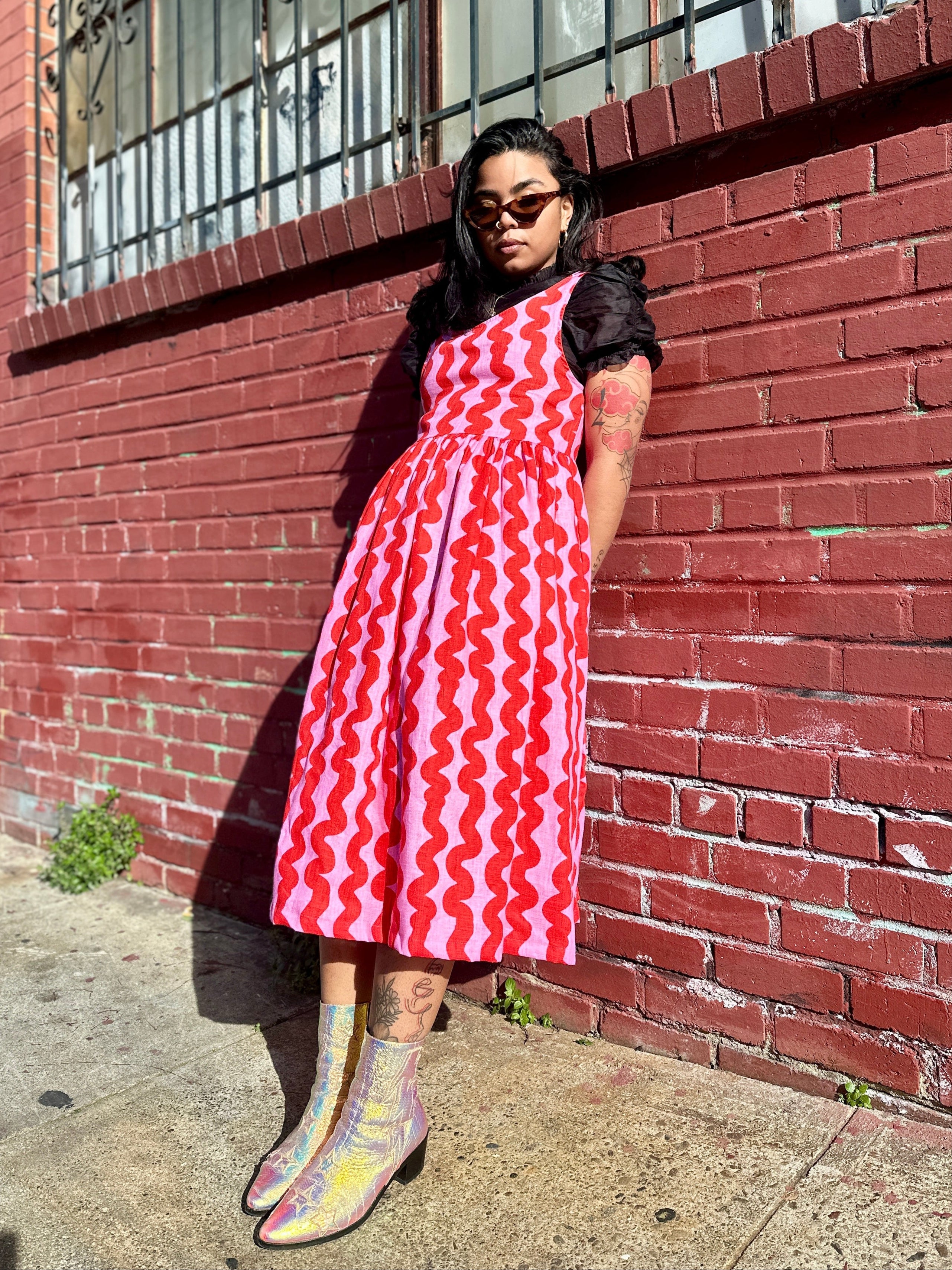 We are a woman owned, women run business. We make limited edition textiles with artists we love in cuts to make you look and feel good. All our garments are produced in California. We try to source all our materials in the USA and work with incredibly nice people.