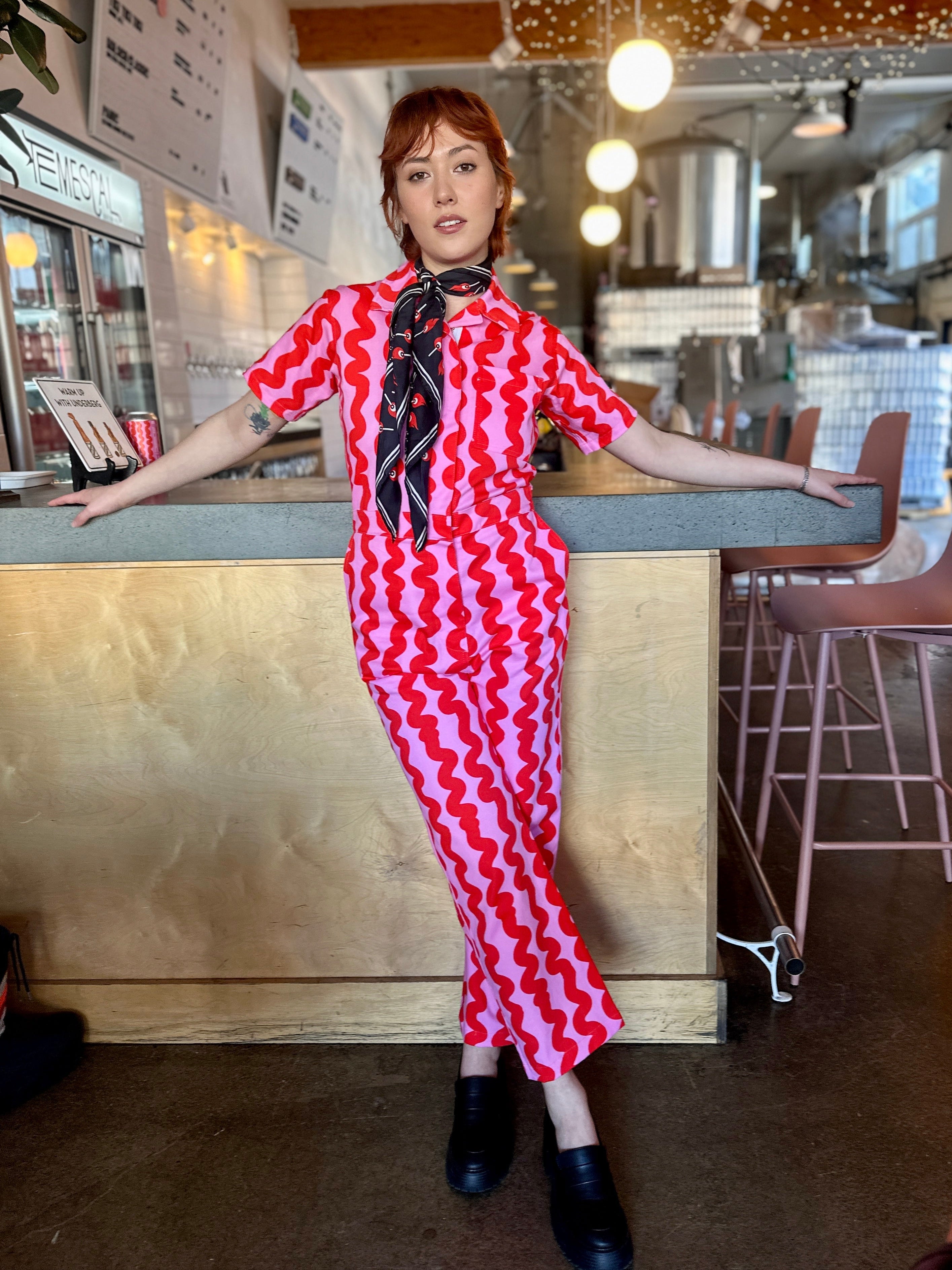 We are a woman owned, women run business. We make limited edition textiles with artists we love in cuts to make you look and feel good. All our garments are produced in California. We try to source all our materials in the USA and work with incredibly nice people.