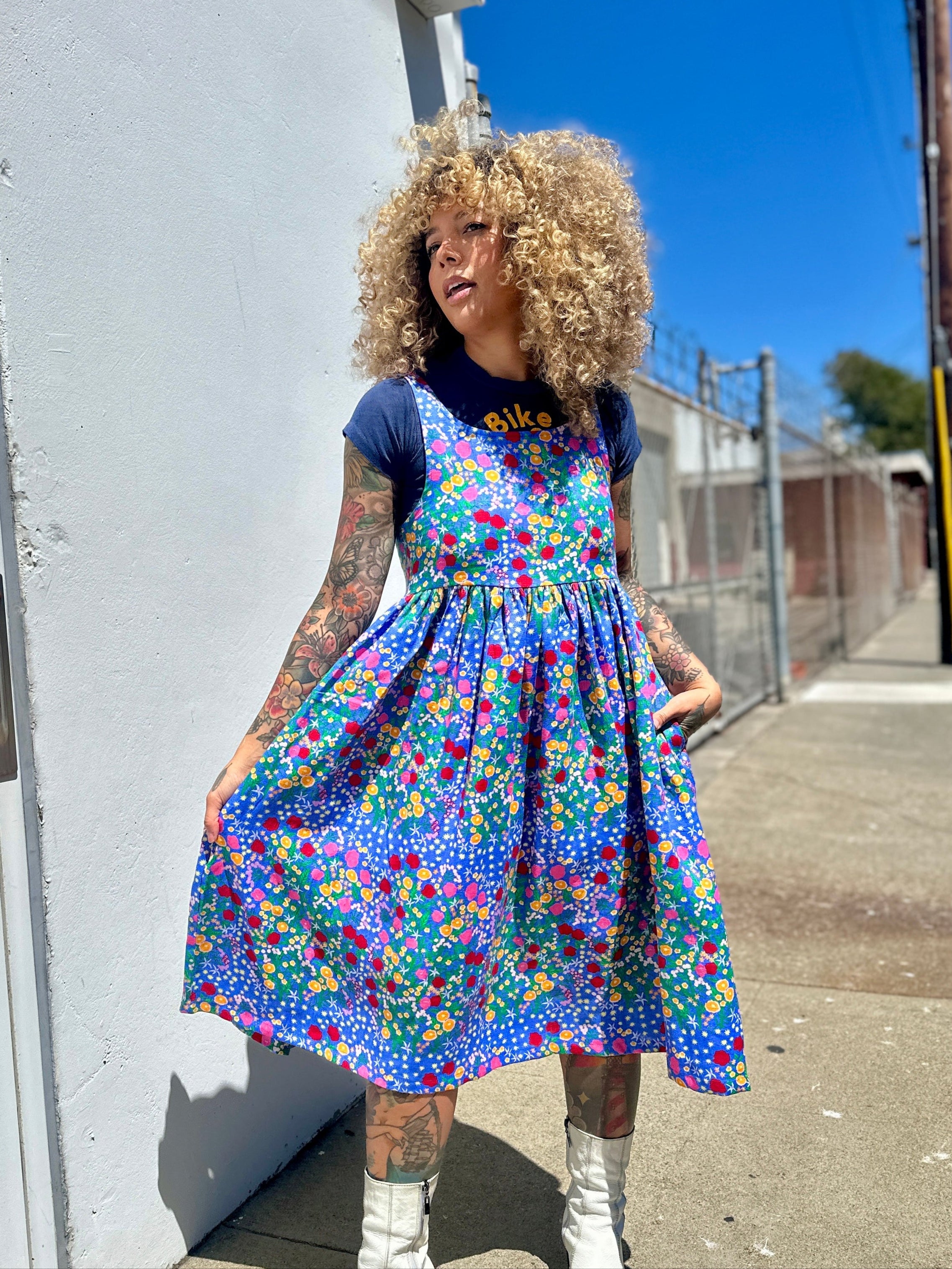 We are a woman owned, women run business. We make limited edition textiles with artists we love in cuts to make you look and feel good. All our garments are produced in California. We try to source all our materials in the USA and work with incredibly nice people.