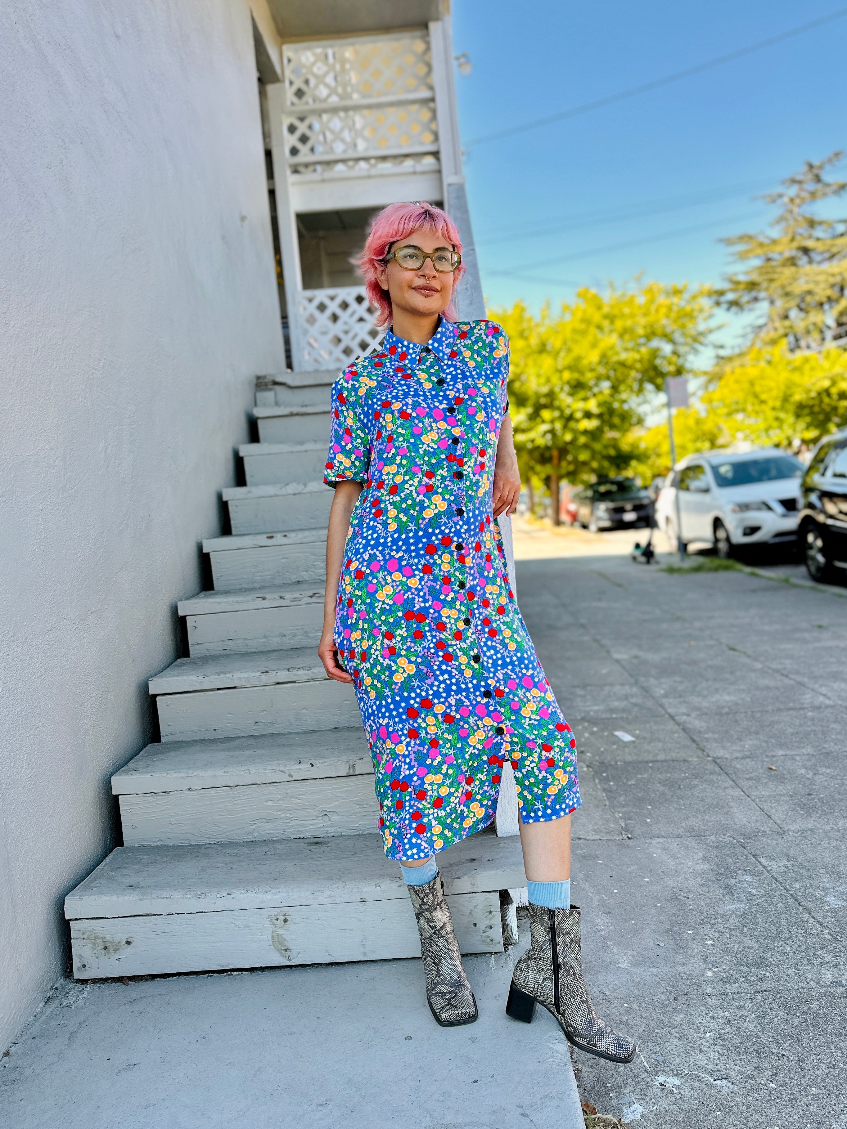 We are a woman owned, women run business. We make limited edition textiles with artists we love in cuts to make you look and feel good. All our garments are produced in California. We try to source all our materials in the USA and work with incredibly nice people.