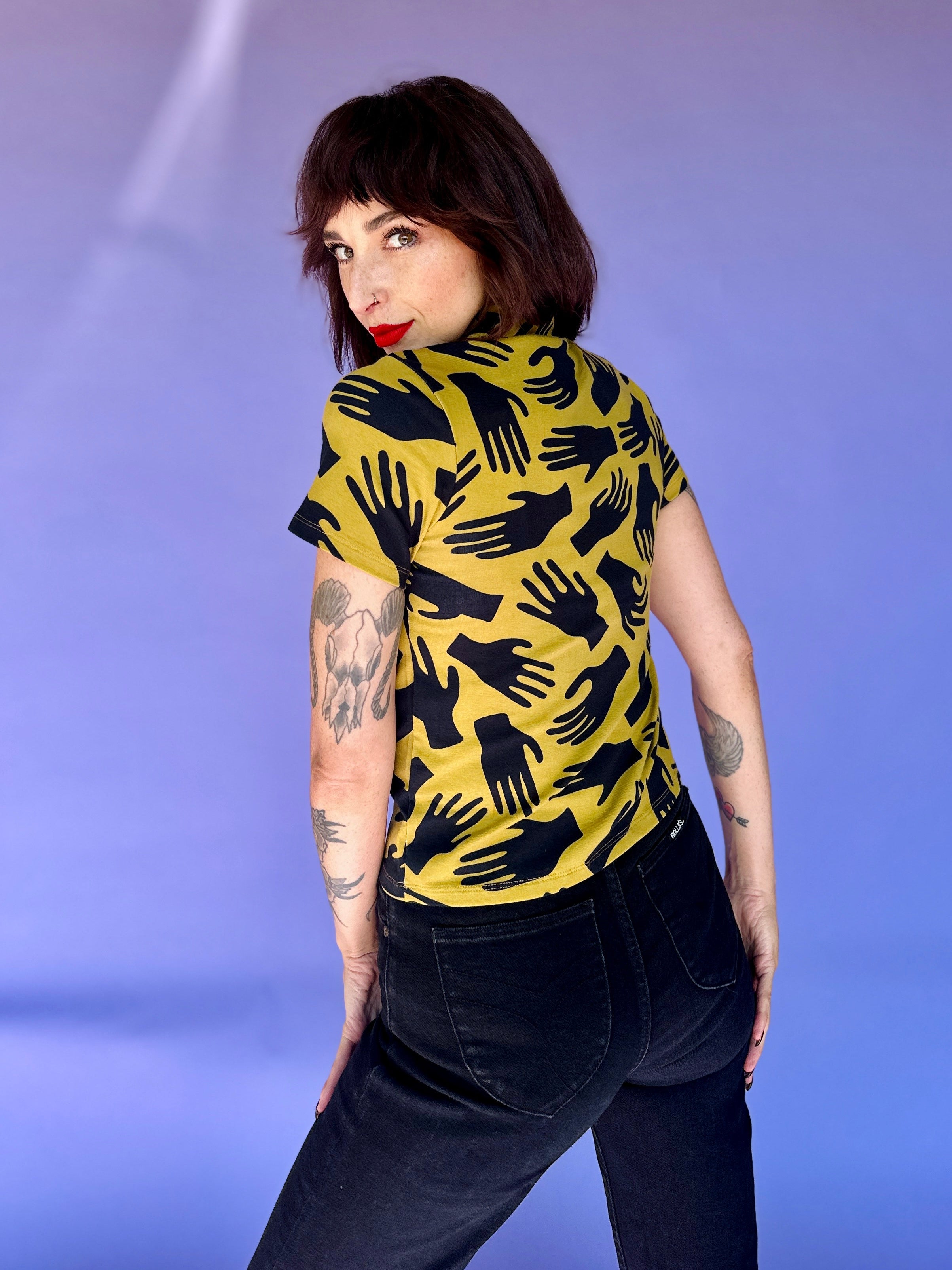 We are a woman owned, women run business. We make limited edition textiles with artists we love in cuts to make you look and feel good. All our garments are produced in California. We try to source all our materials in the USA and work with incredibly nice people.